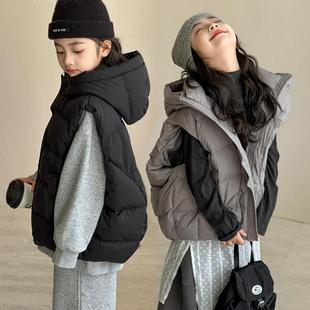 女童羽绒马甲2024新款冬装中大童加厚保暖衣服儿童白鸭绒连帽外套