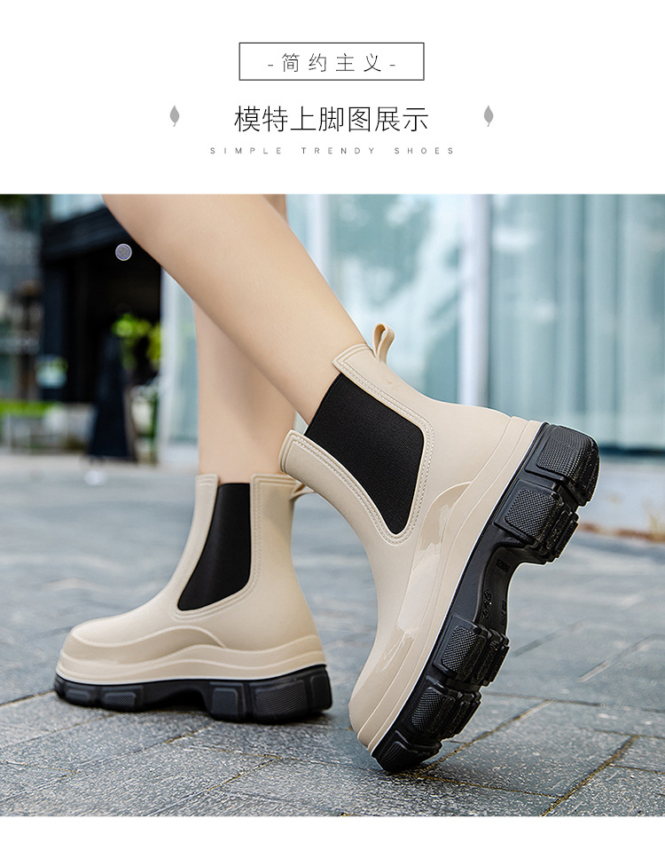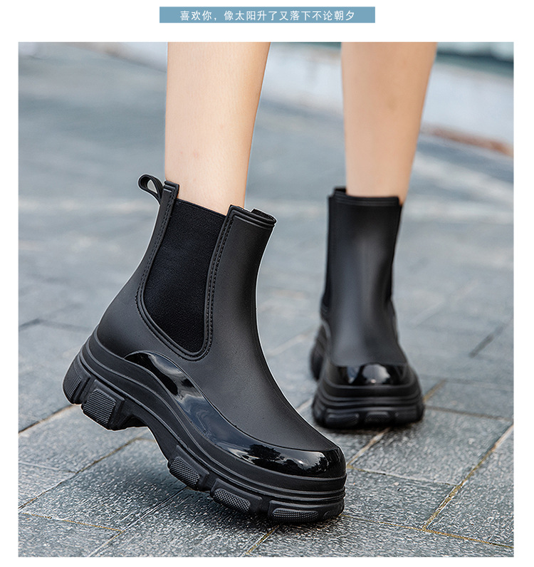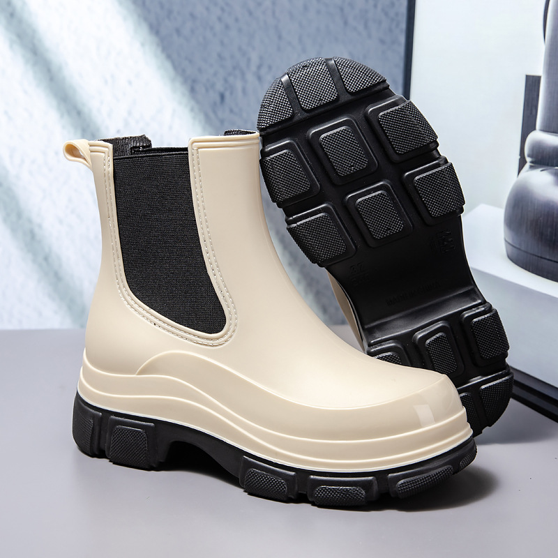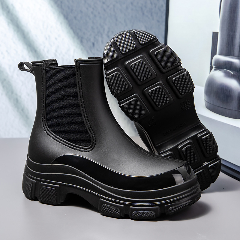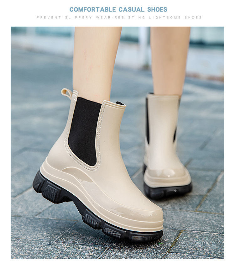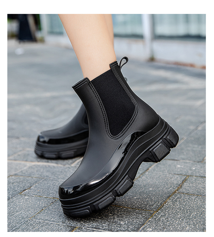 국경 간 여성 탄성 밴드 새로운 마틴 레인 부츠 두꺼운 바닥 플라스틱 방수 야외 작업 신발 주방 오버 슈즈 도매