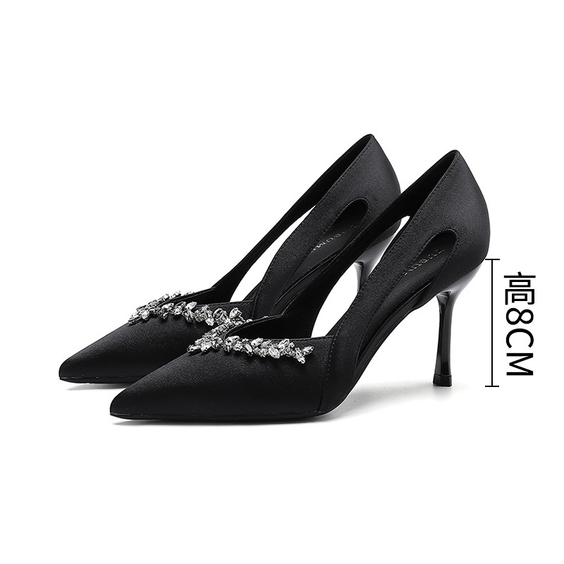 811-B4 속이 빈 하이힐, 라인스톤 스웨이드 여성용 싱글 슈즈, 포인티드 토 스틸레토 힐, 속이 빈 샌들, 여성용 패셔너블하고 다재다능한 신발스토어 가기