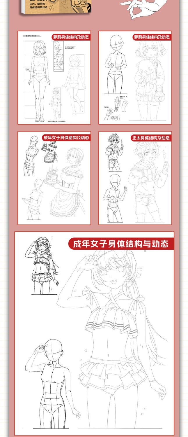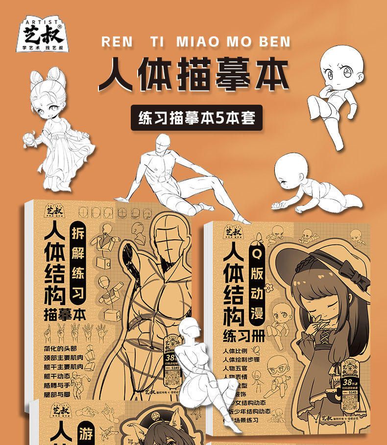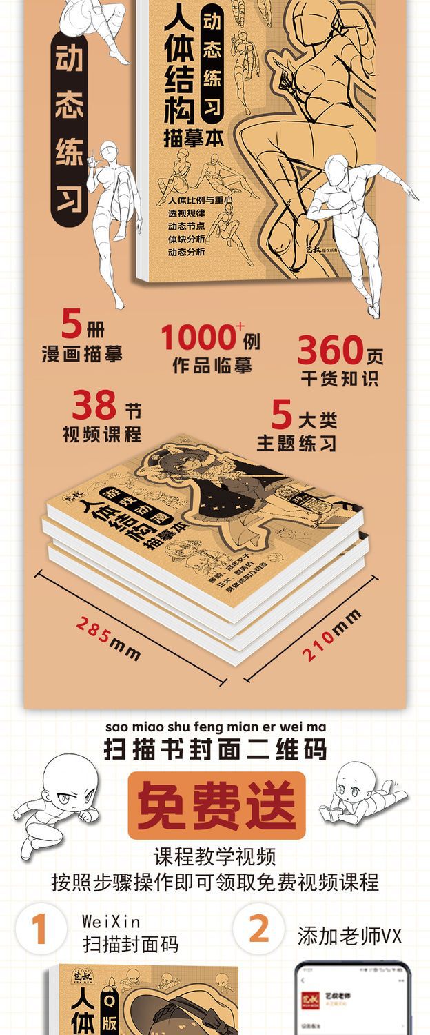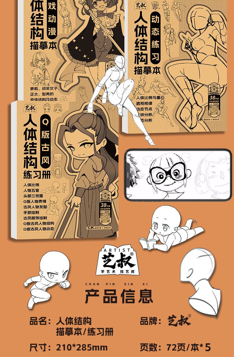 인간의 신체 구조 추적 책 5 세트 스케치 동적 구조 교육 만화 손으로 그린 연습 Q 판 만화스토어 가기