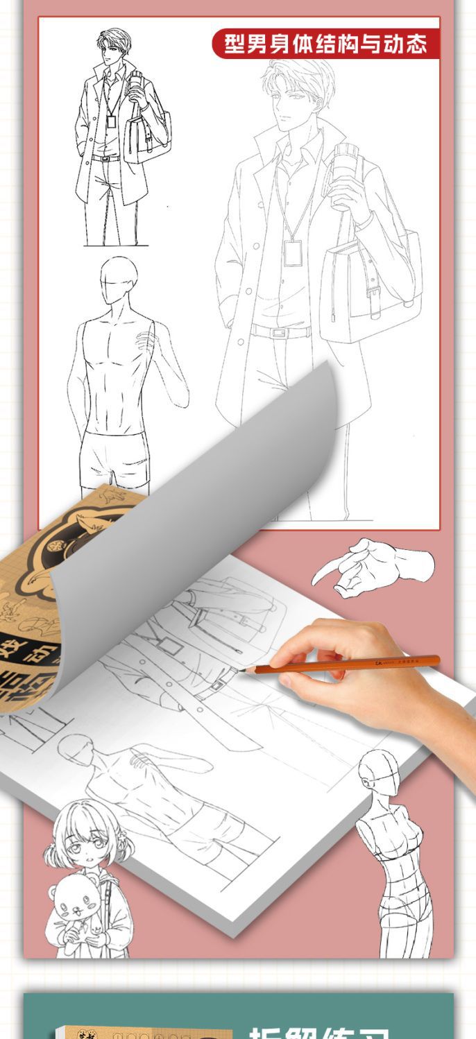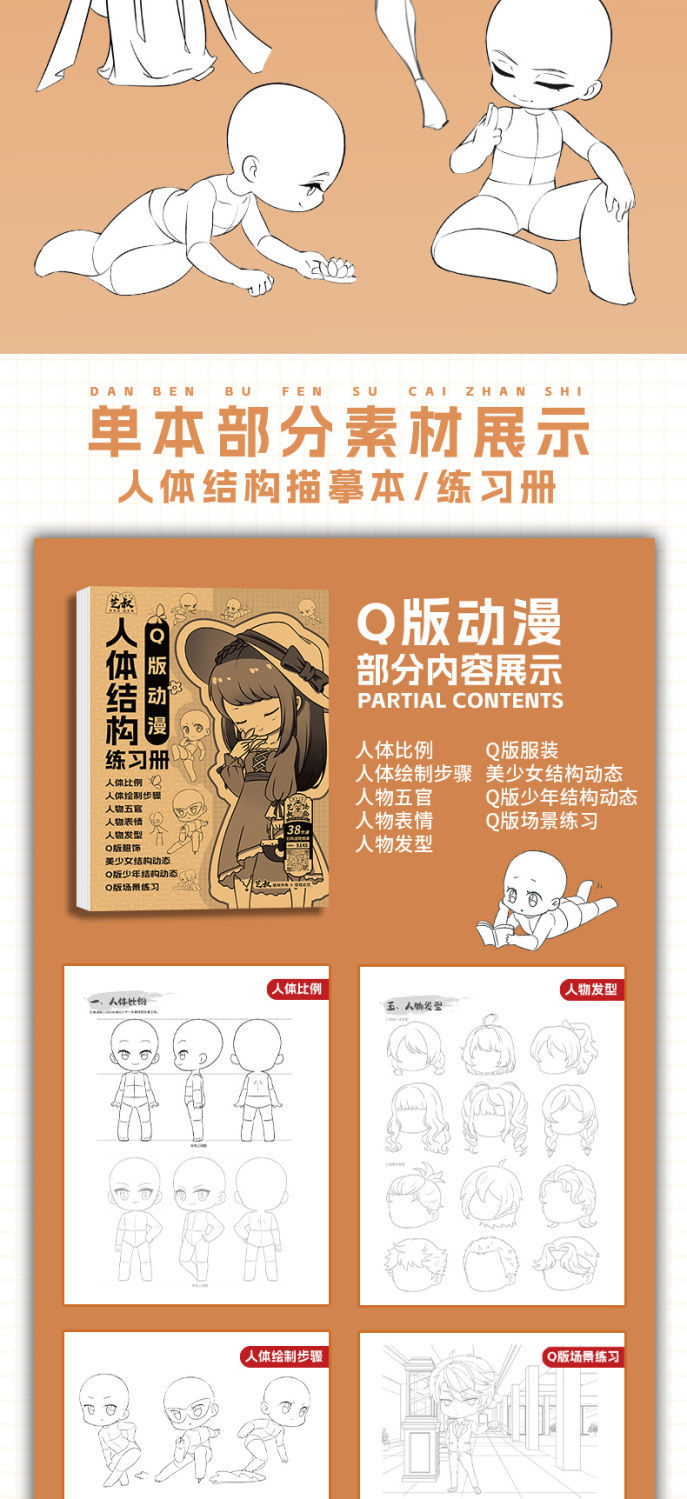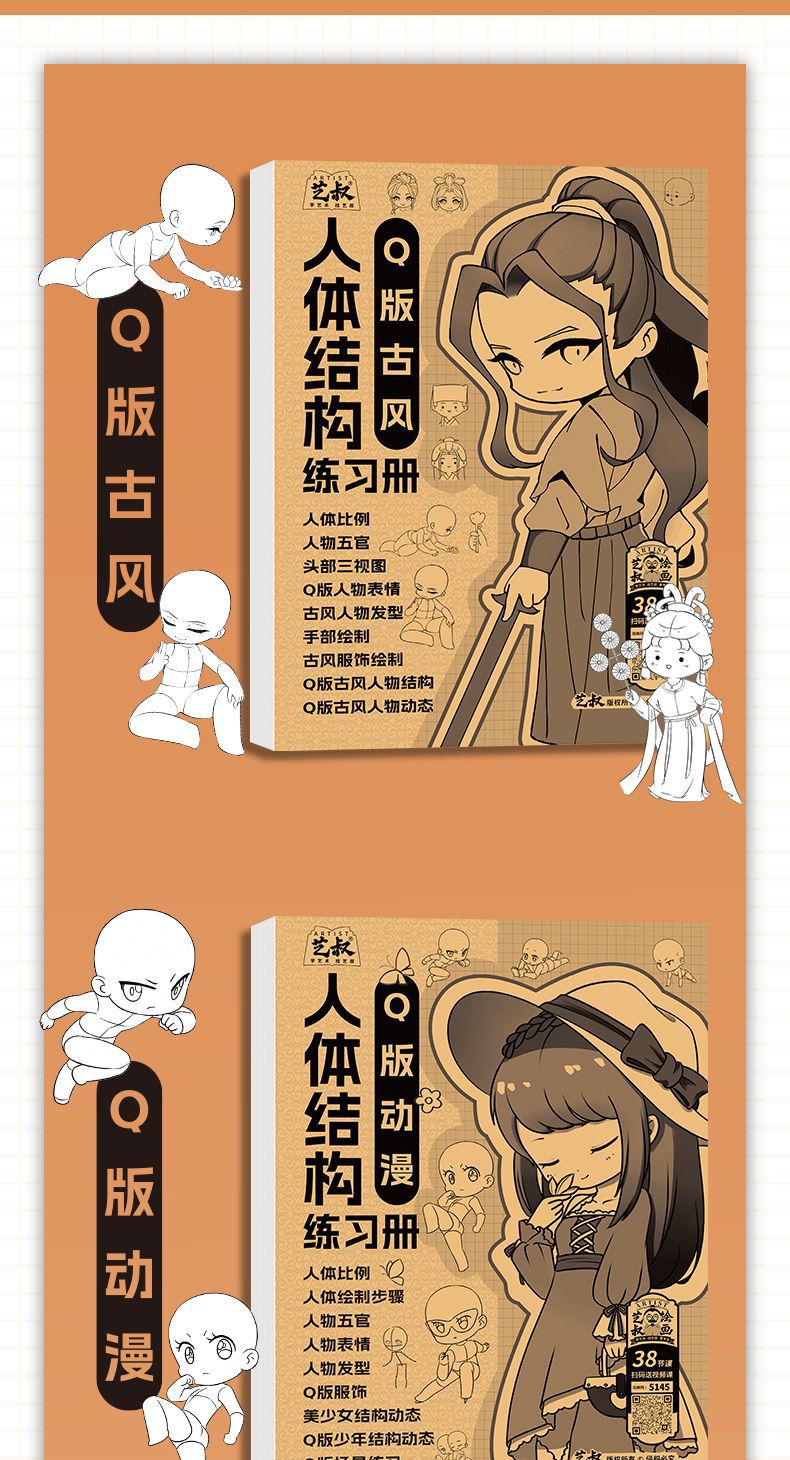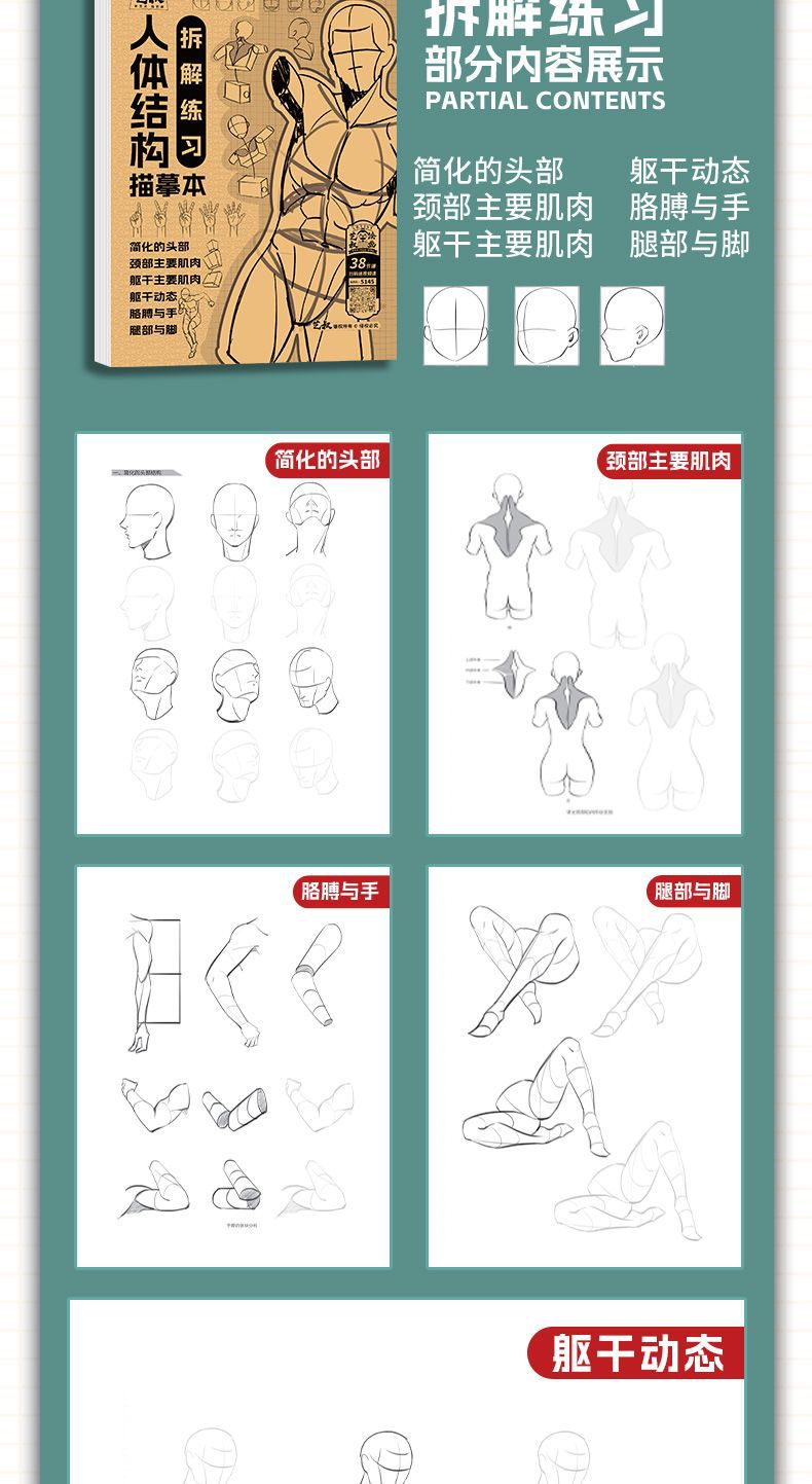 인간의 신체 구조 추적 책 5 세트 스케치 동적 구조 교육 만화 손으로 그린 연습 Q 판 만화스토어 가기