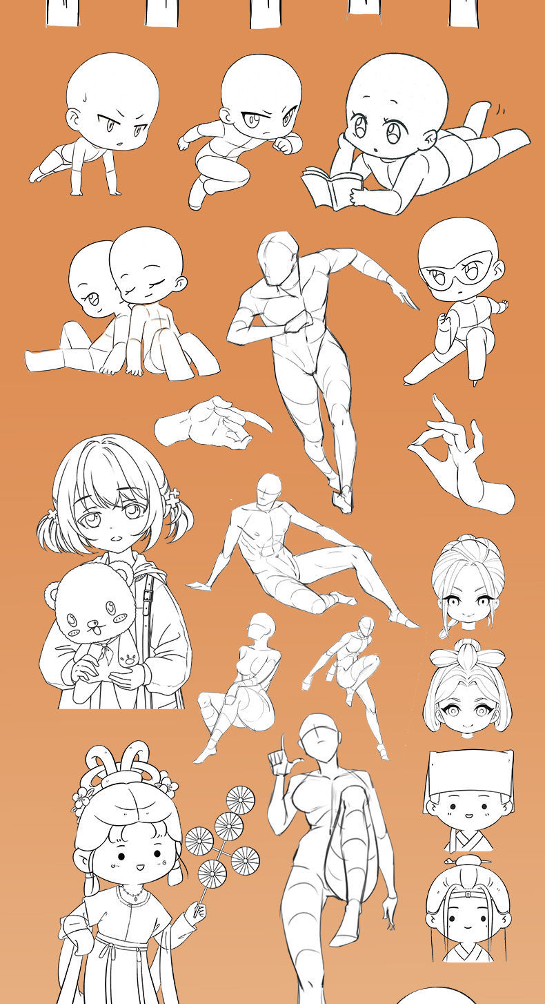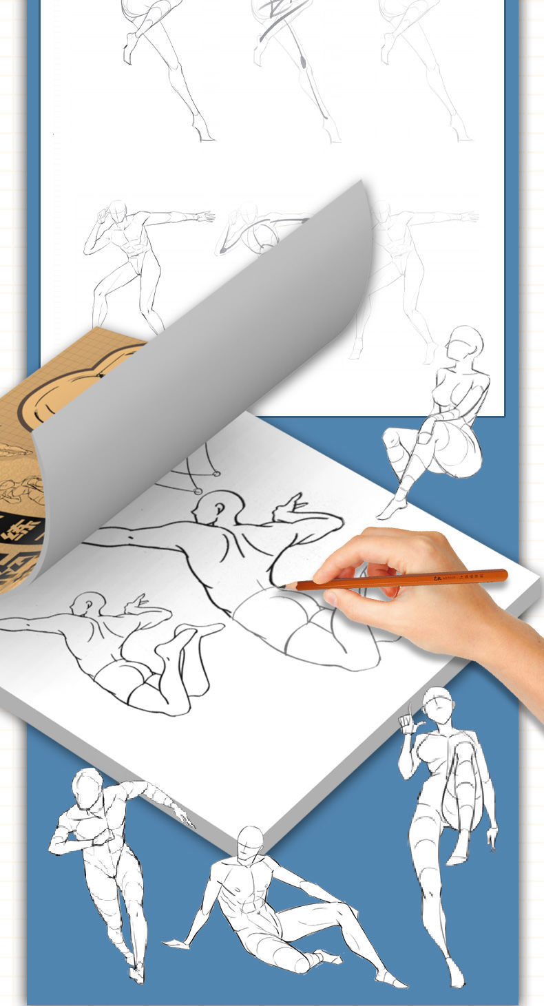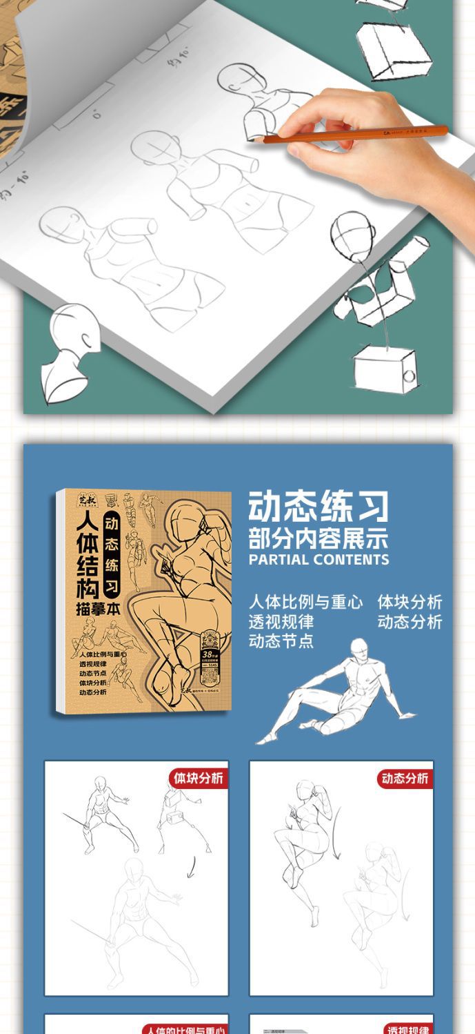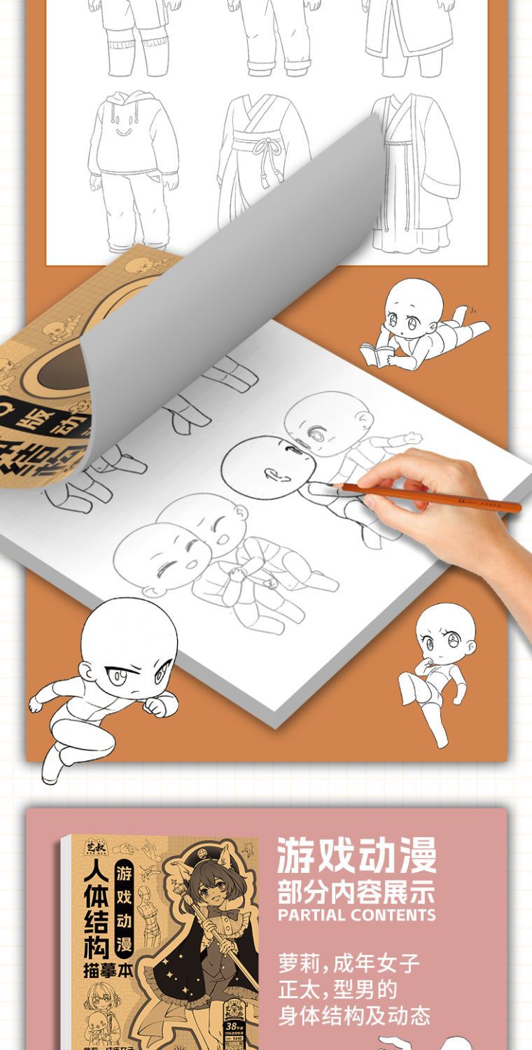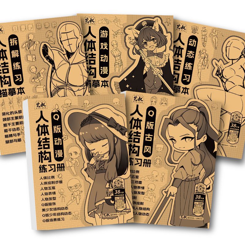 인간의 신체 구조 추적 책 5 세트 스케치 동적 구조 교육 만화 손으로 그린 연습 Q 판 만화