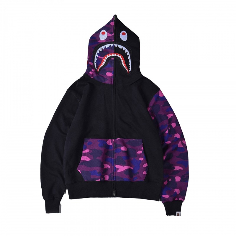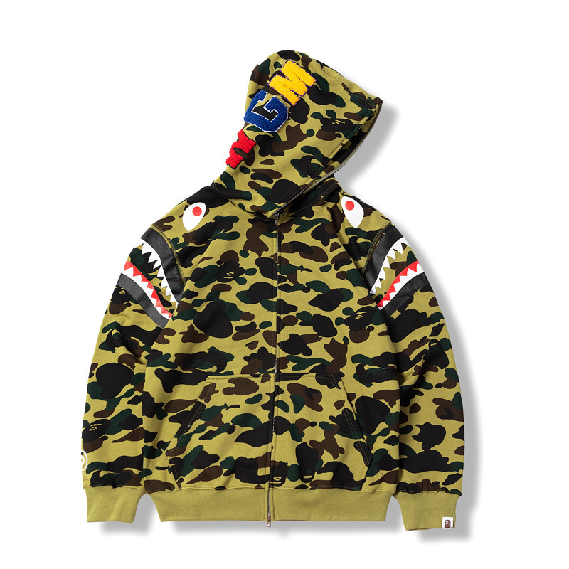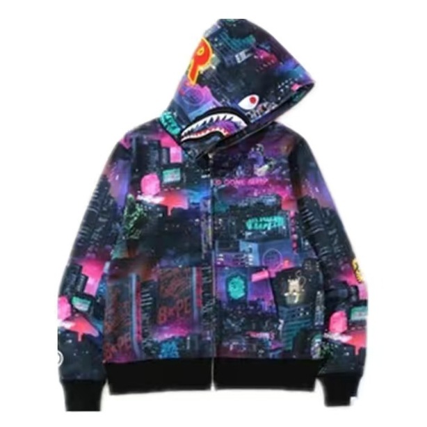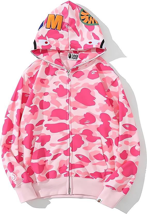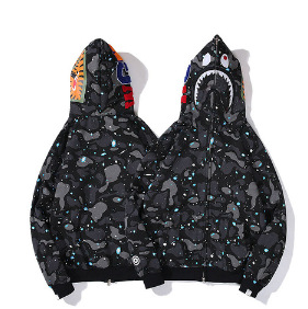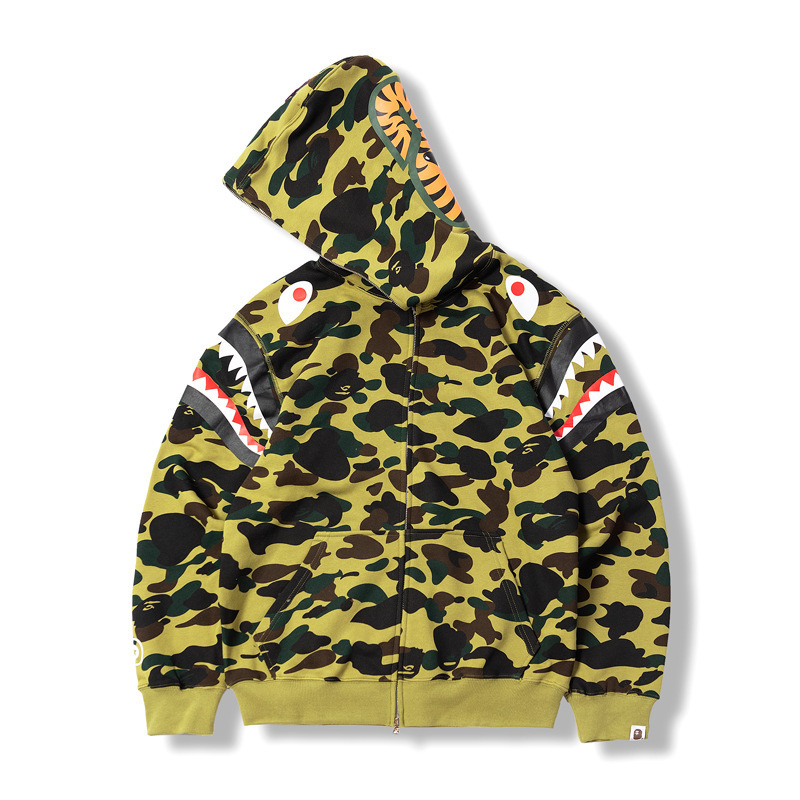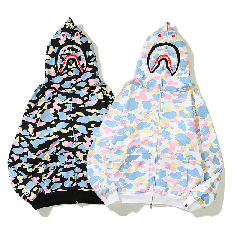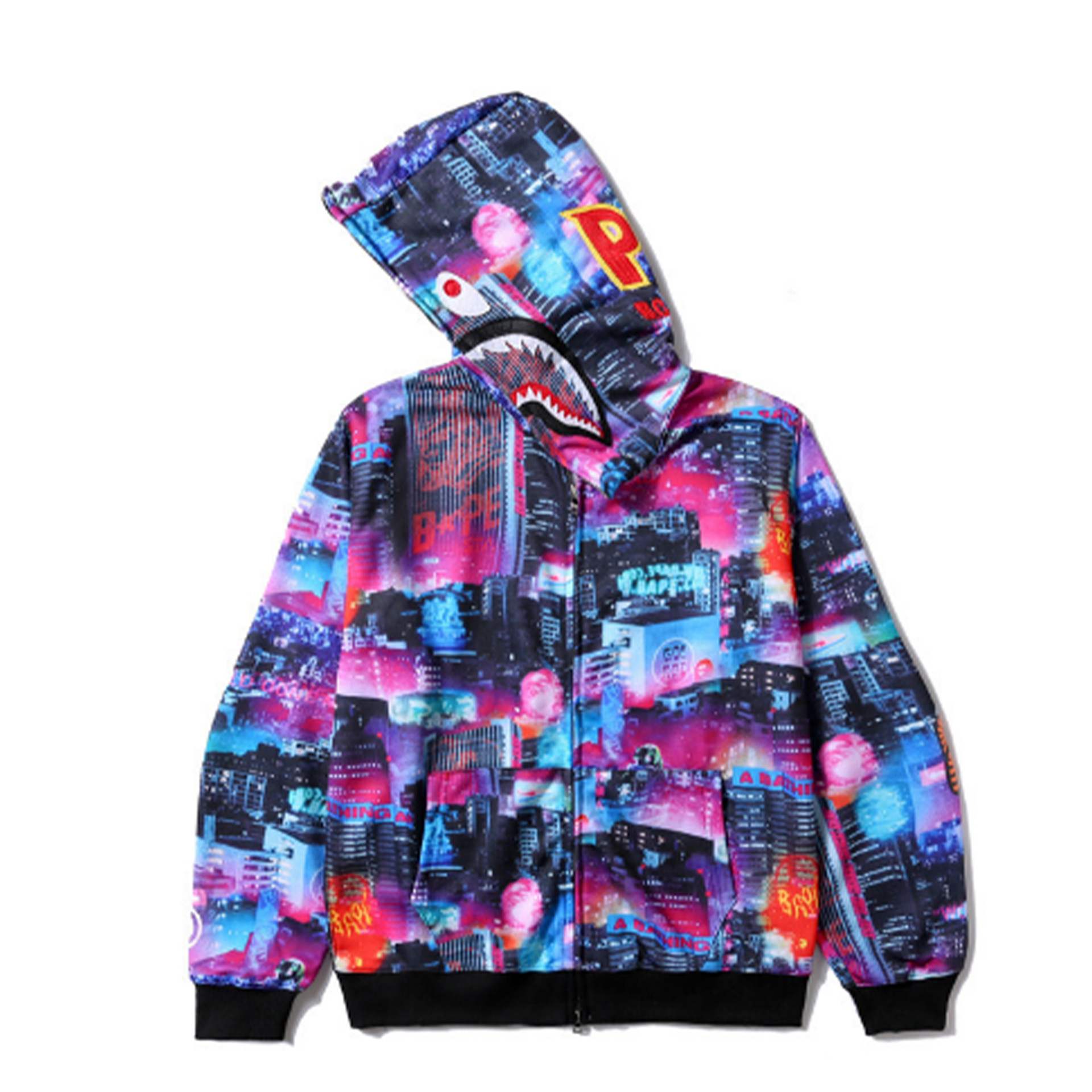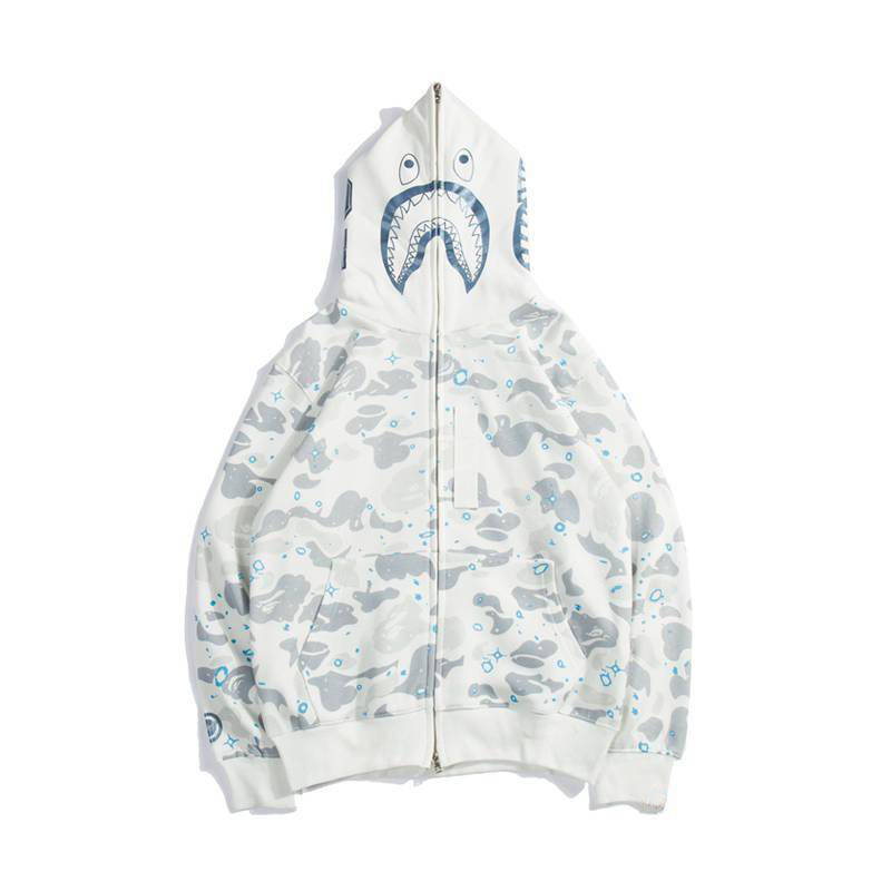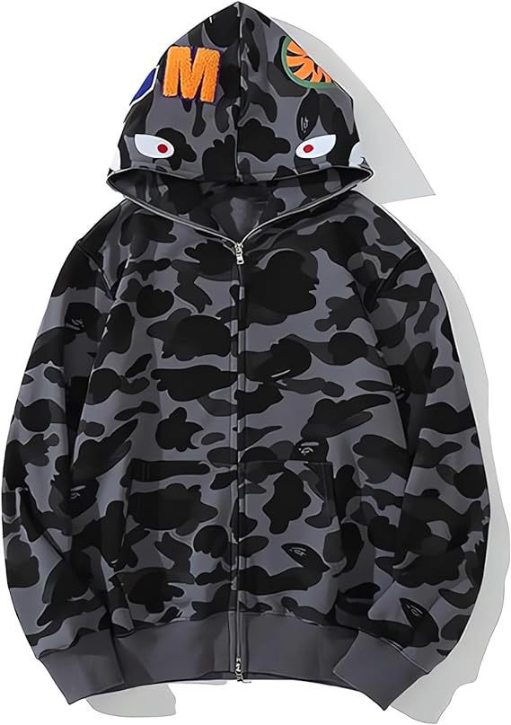 2024 국경 간 대외 무역 커플 지퍼 스웨트 셔츠 상어 위장 3D 프린트 모자 지퍼 느슨한 스웨트 셔츠스토어 가기