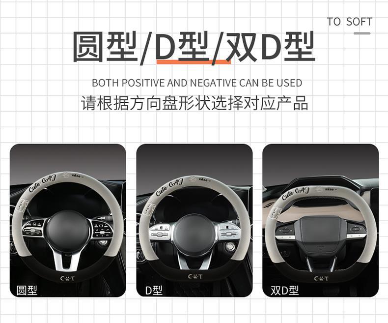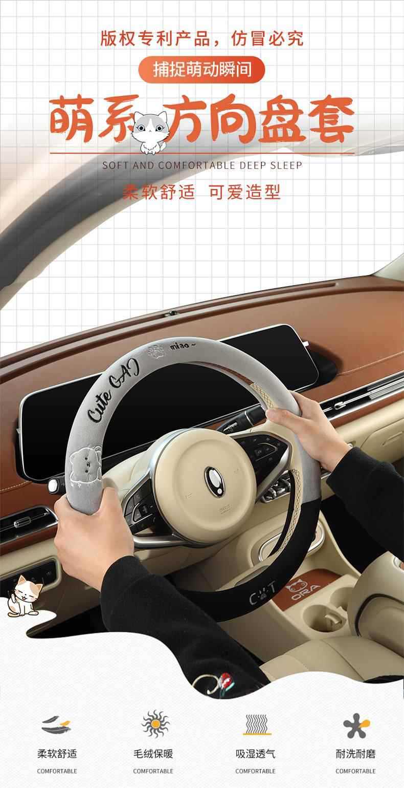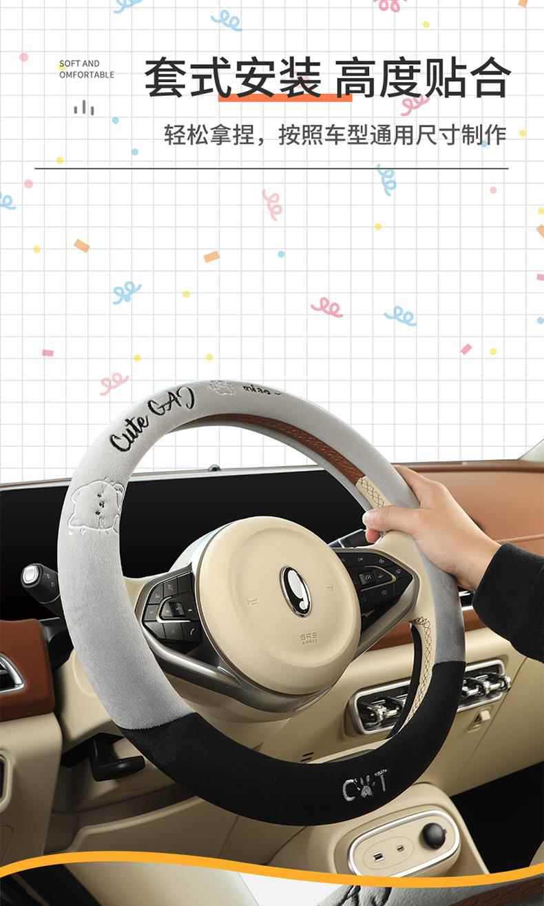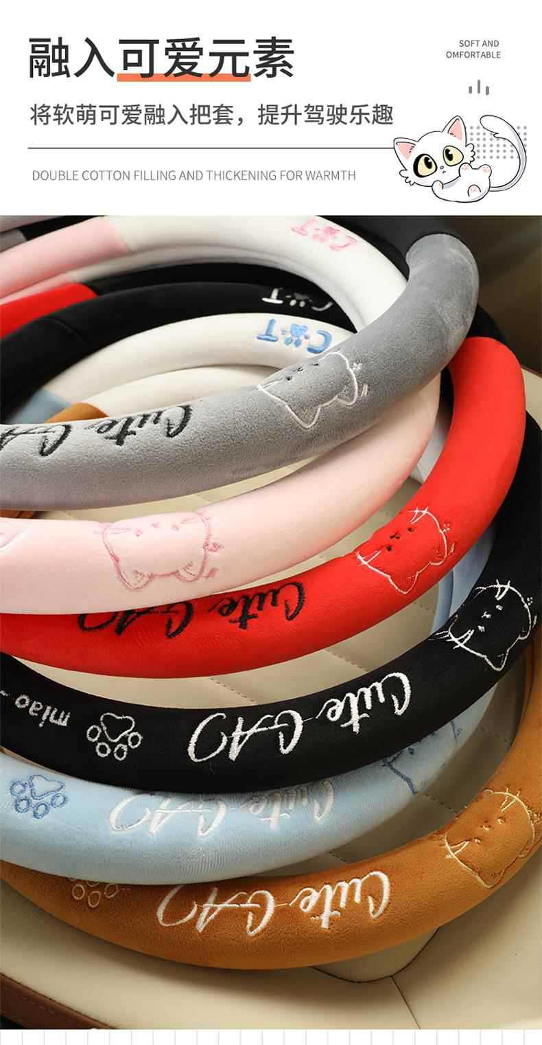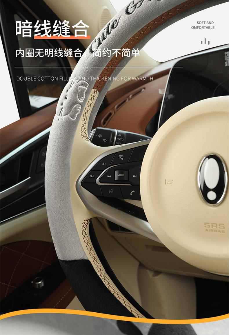 새로운 만화풍 귀여운 겨울용 플러시 보온 스티어링 휠 커버, 제조사 직판, 해외 아마존 판매