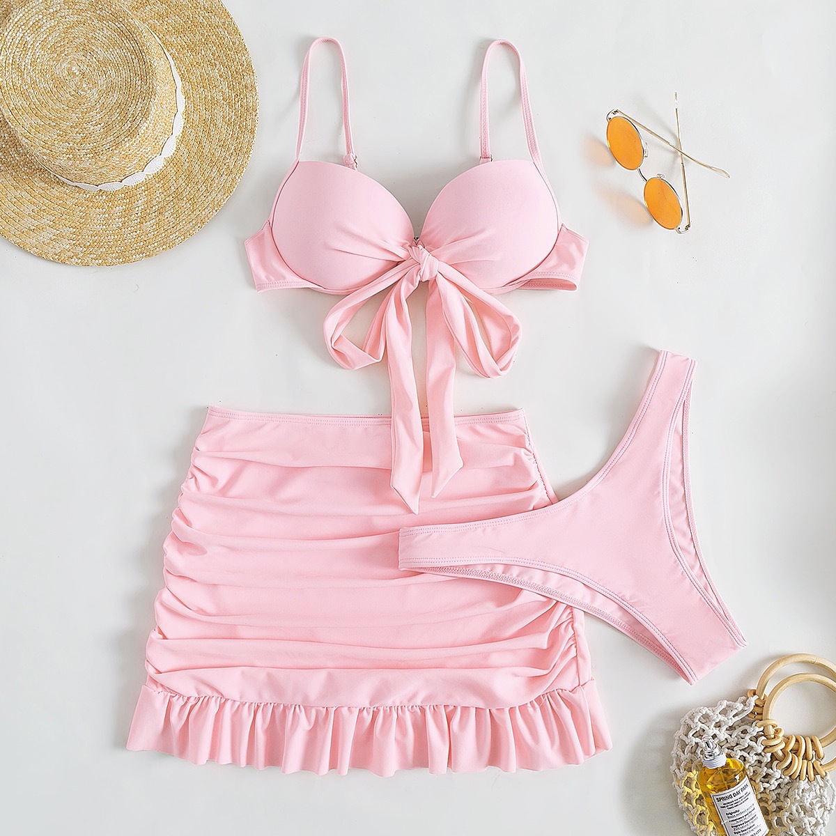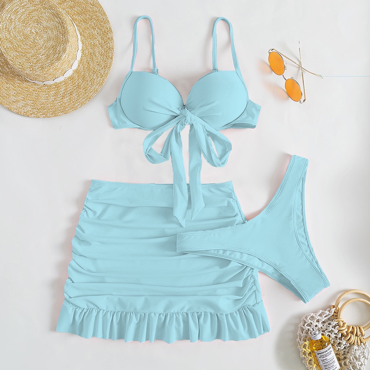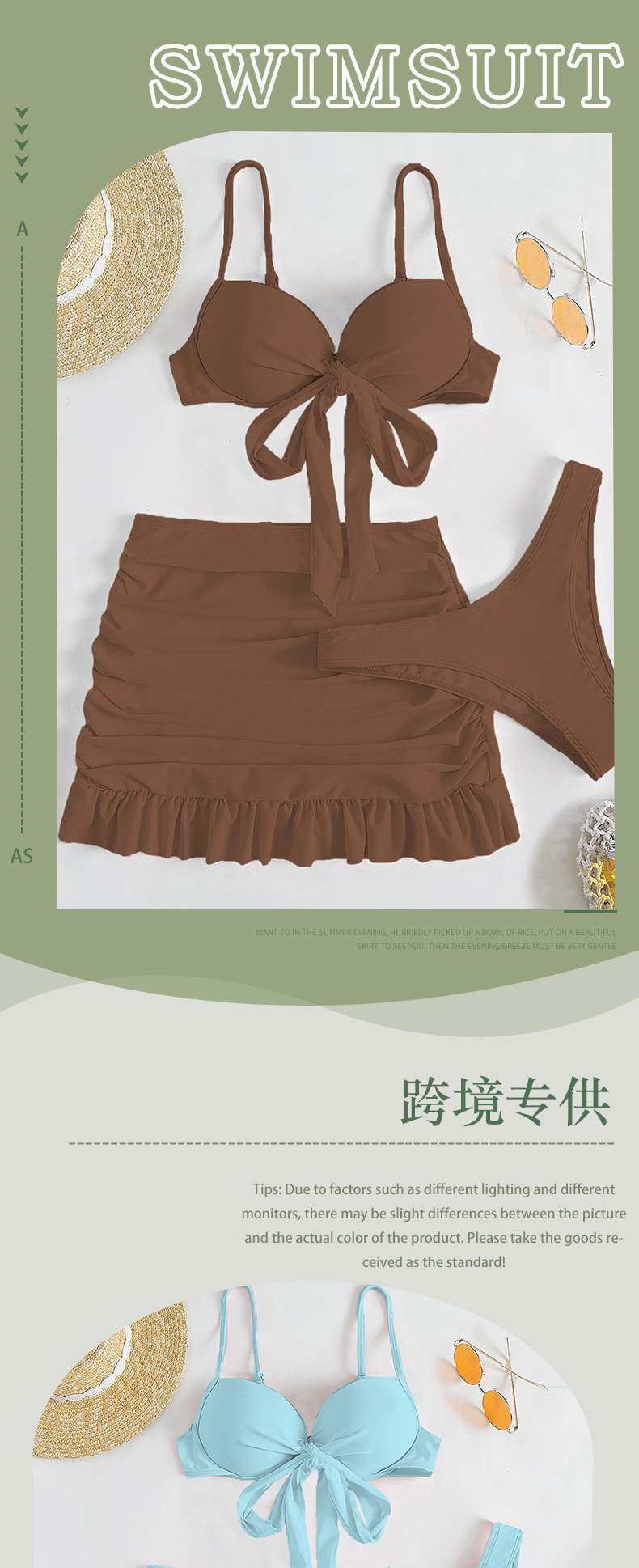 섹시한 스플릿 수영복 크로스 보더 솔리드 컬러 3 피스 수영복 여성의 섹시한 비키니 수영복 활 재고 도매스토어 가기