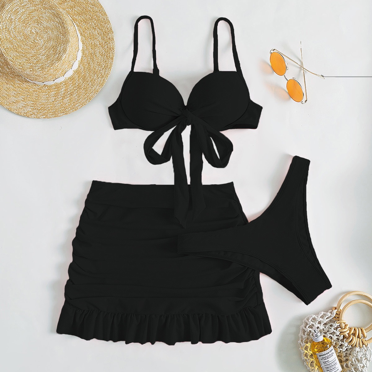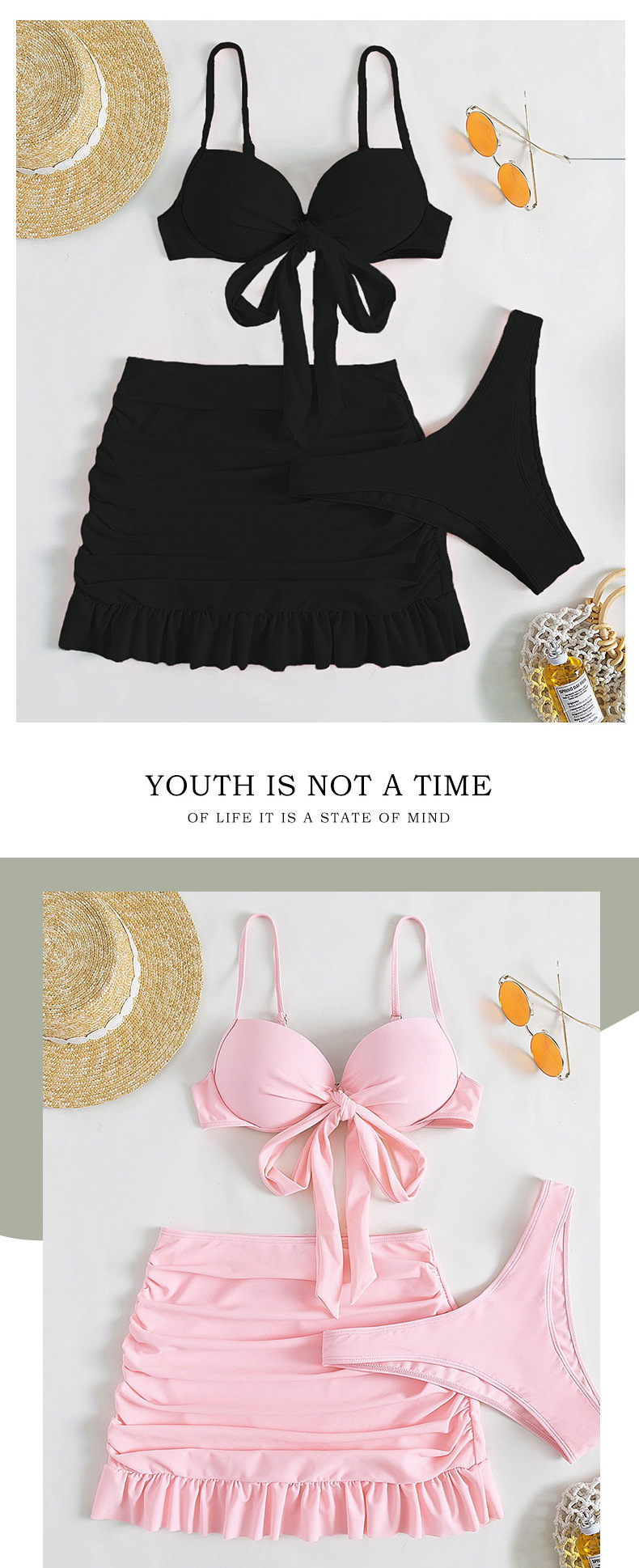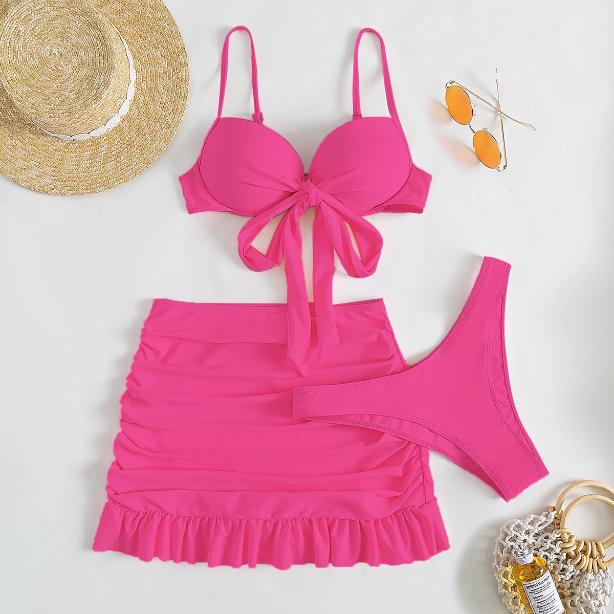 섹시한 스플릿 수영복 크로스 보더 솔리드 컬러 3 피스 수영복 여성의 섹시한 비키니 수영복 활 재고 도매스토어 가기