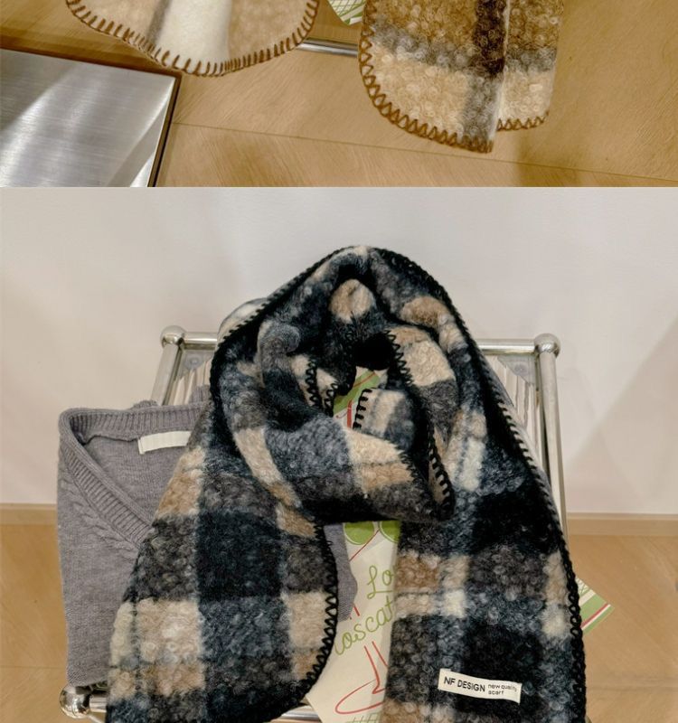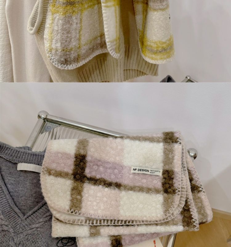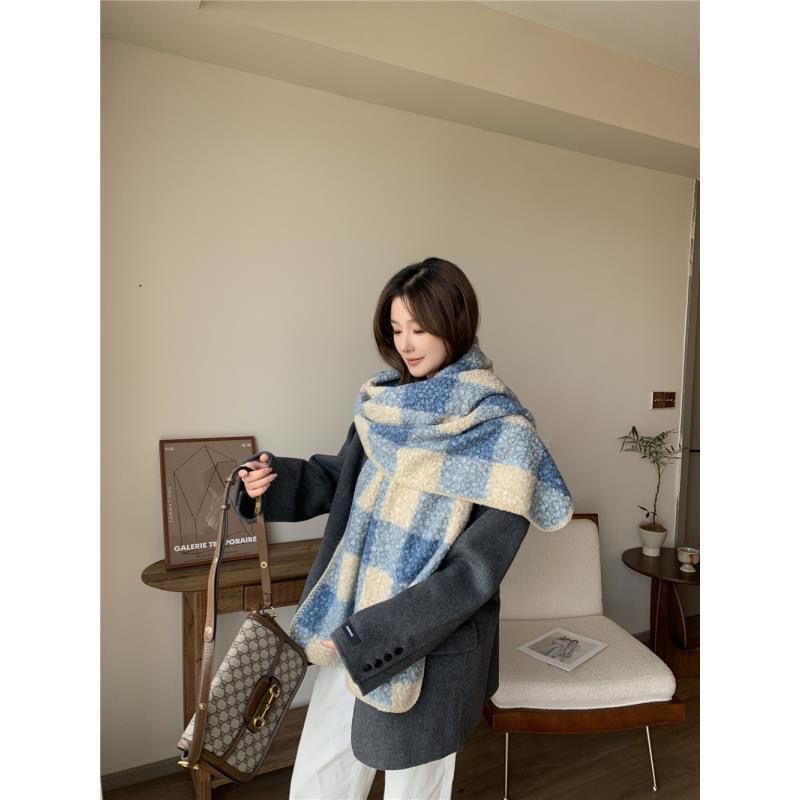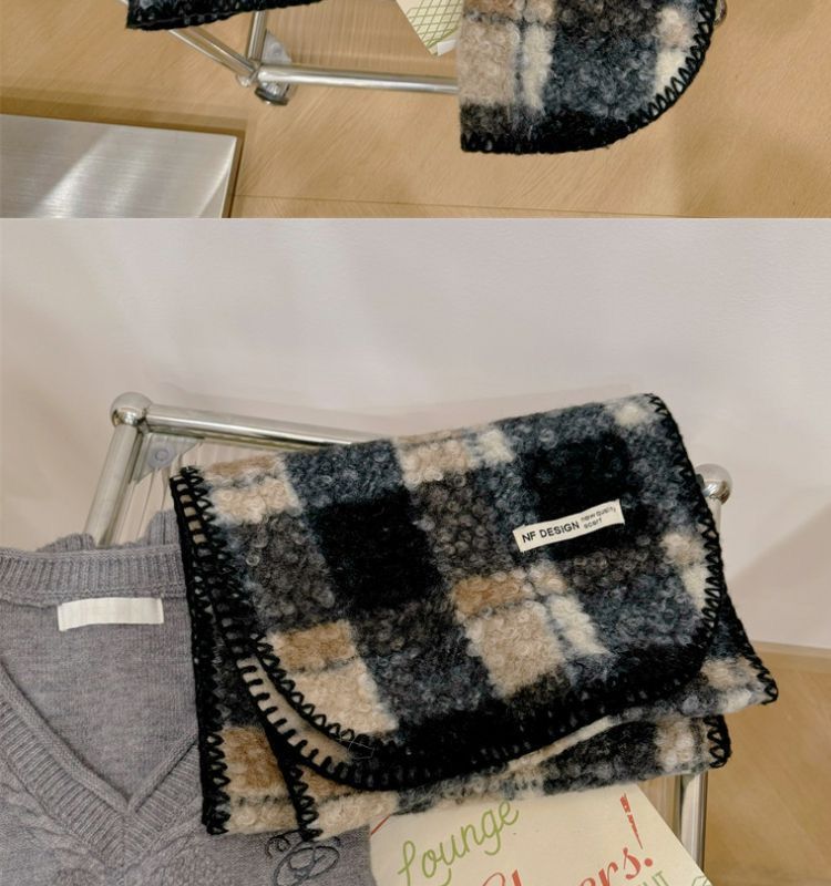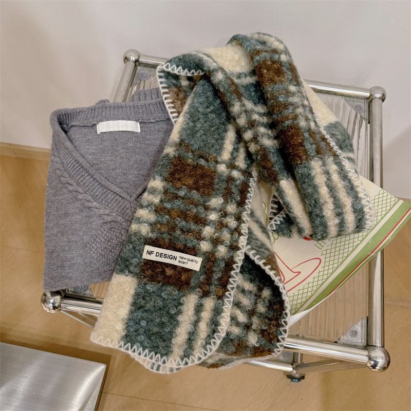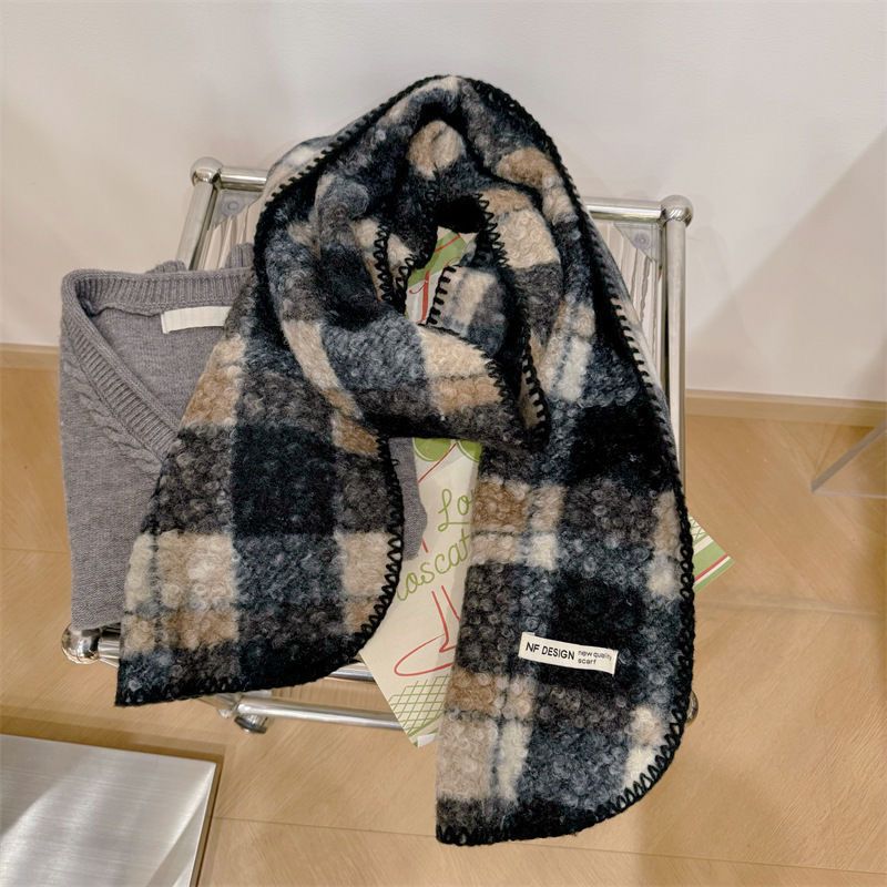 가을과 겨울 새로운 체크 무늬 양모 롤 스카프 여성 패션 올 매치 따뜻한 높은 질감 유행 고급 작은 스카프 목도리스토어 가기