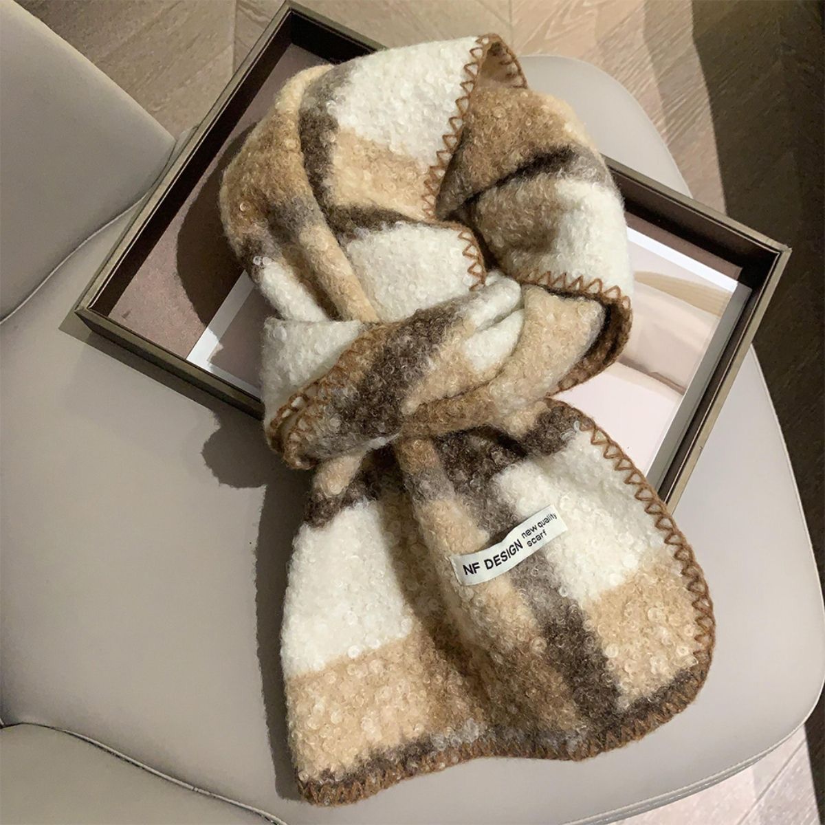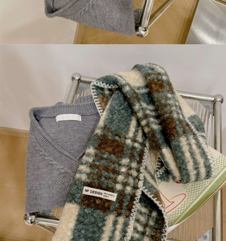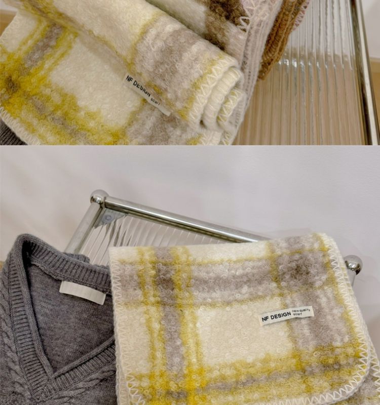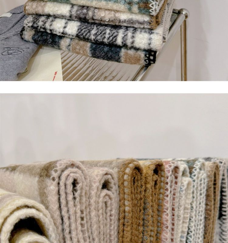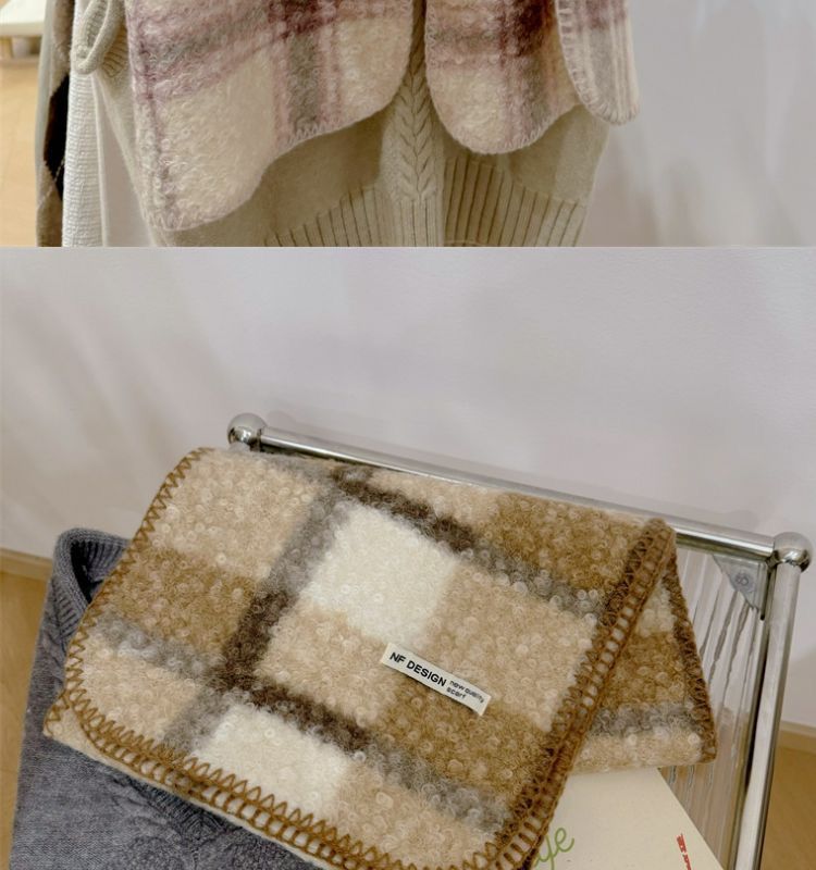 가을과 겨울 새로운 체크 무늬 양모 롤 스카프 여성 패션 올 매치 따뜻한 높은 질감 유행 고급 작은 스카프 목도리스토어 가기