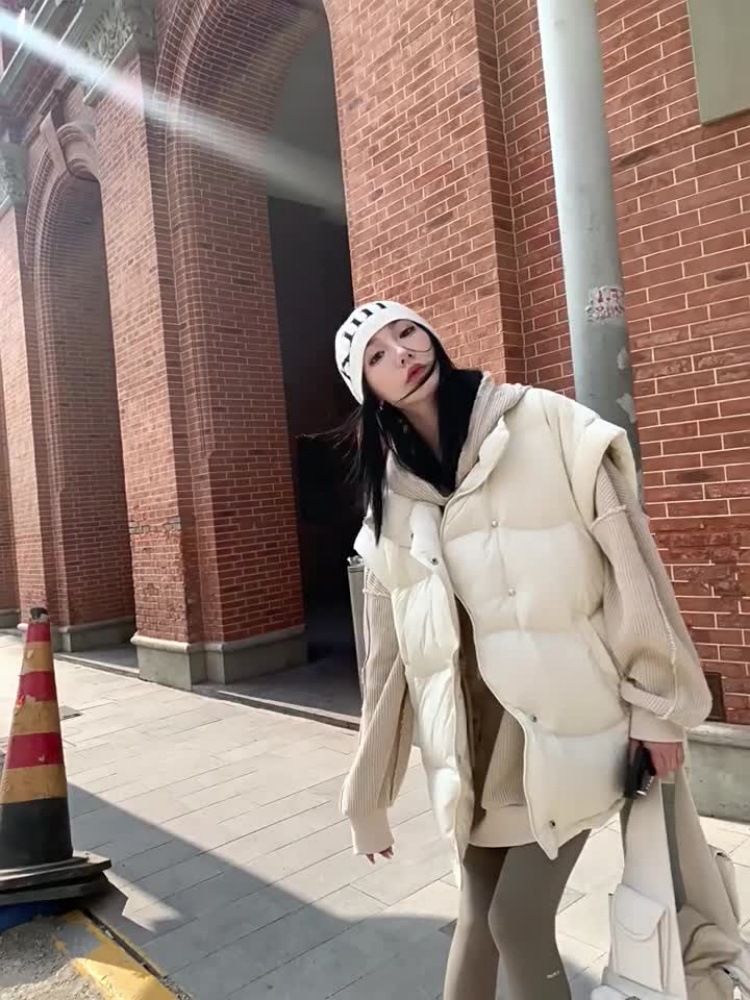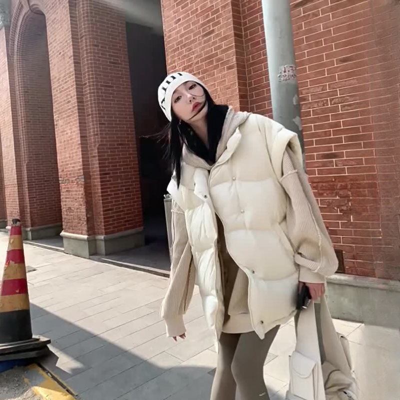 여성을 위한 겨울 다운 조끼, 2025년 새로운 스타일, 독특하고 세련된 후드 디자인, 연령 감소 조끼, 따뜻한 재킷스토어 가기