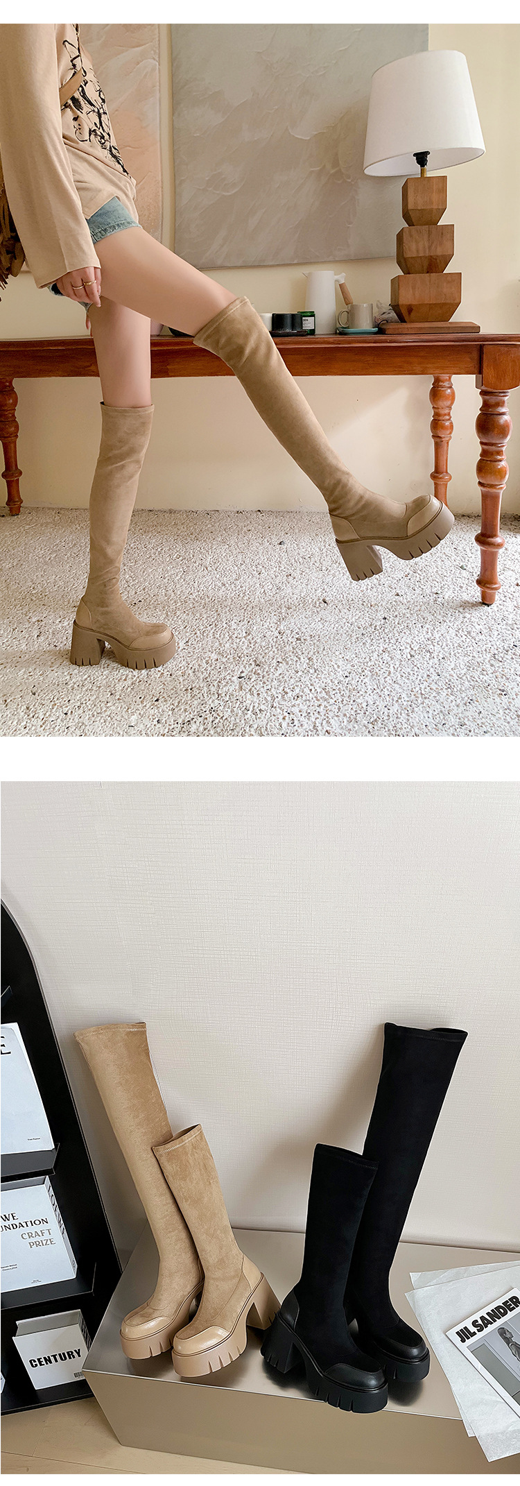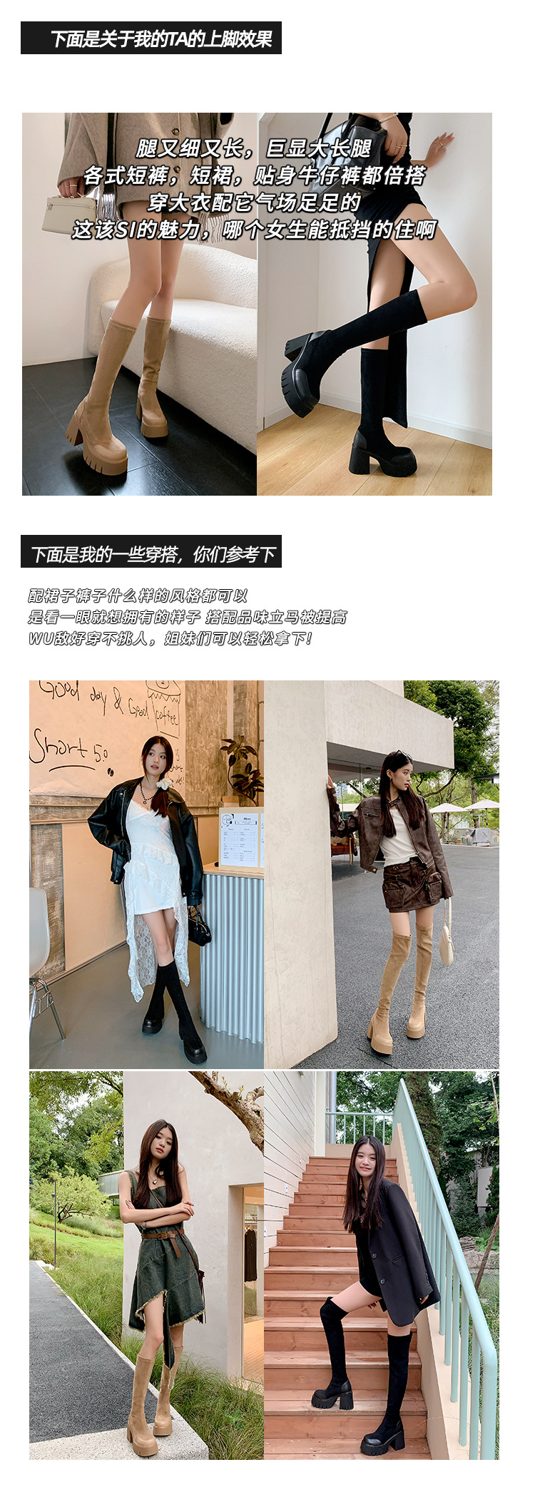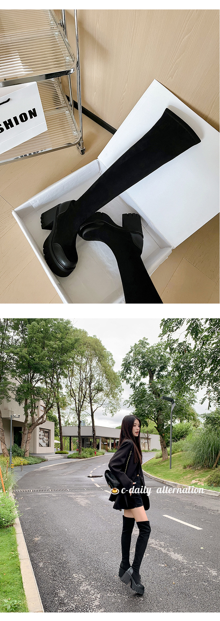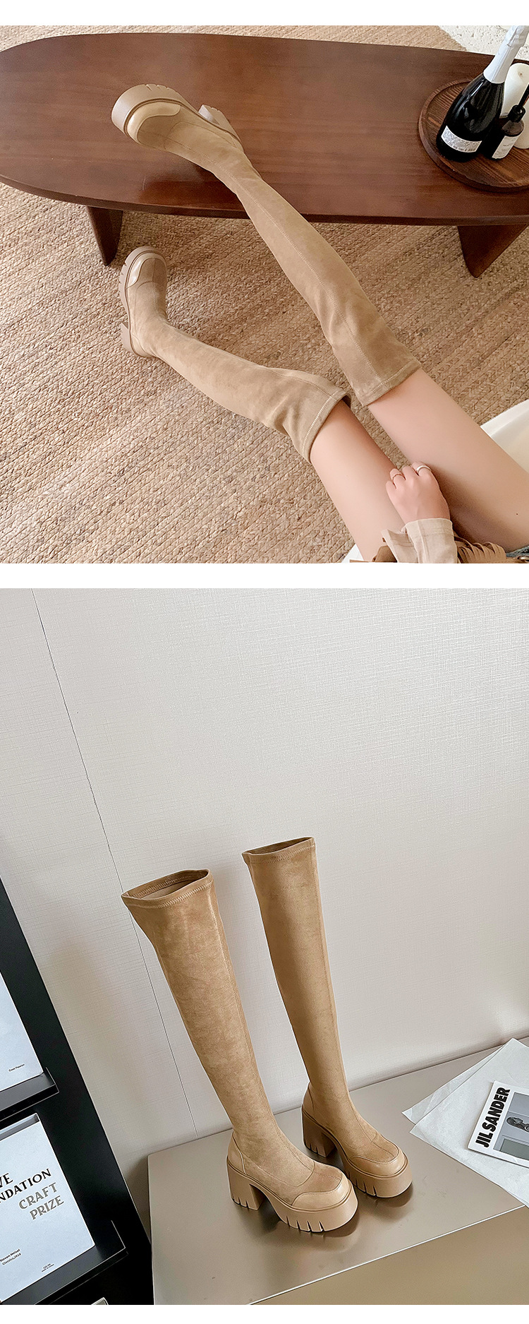 9cm 슈퍼 하이힐 두꺼운 힐 두꺼운 밑창 스트레치 부츠 여성용 가을 및 겨울 빅 튜브 방수 테이블 얇은 부츠 기모 무릎 위 부츠스토어 가기