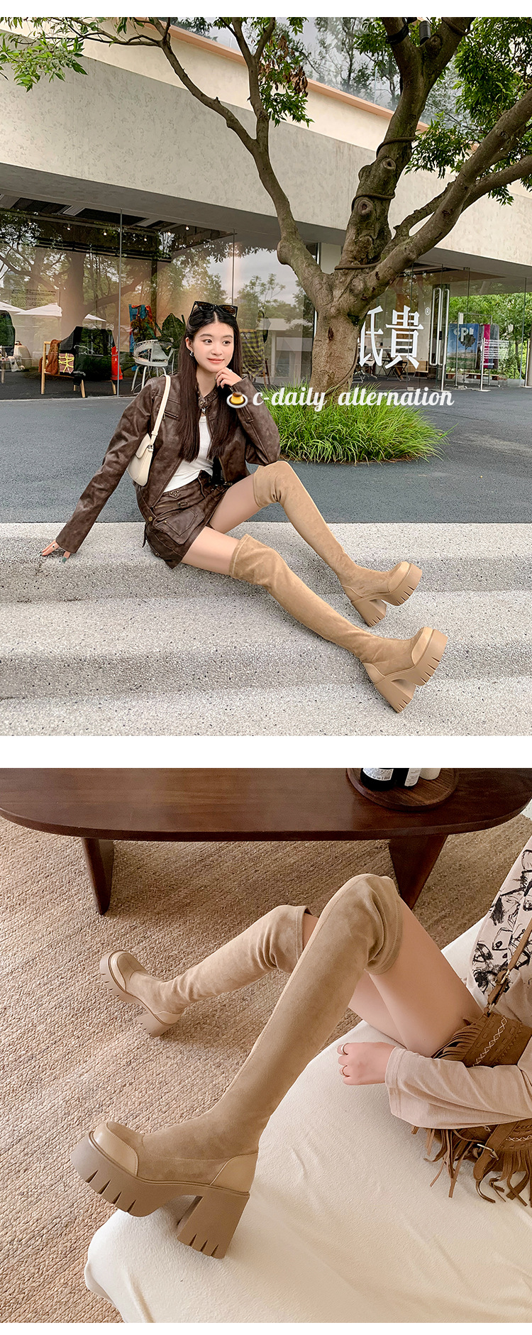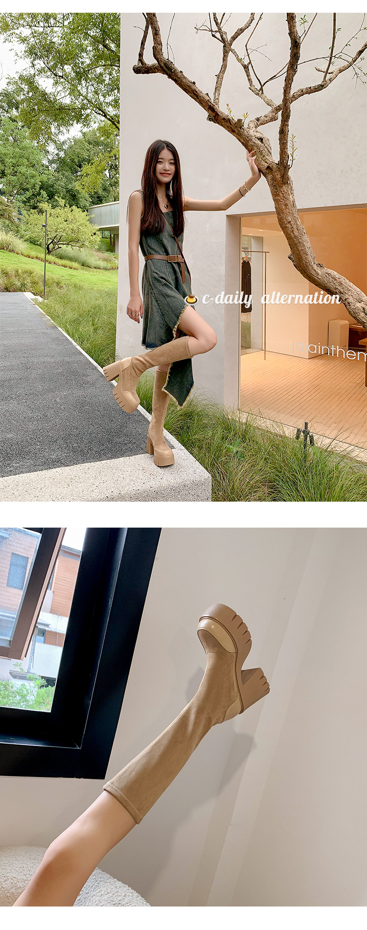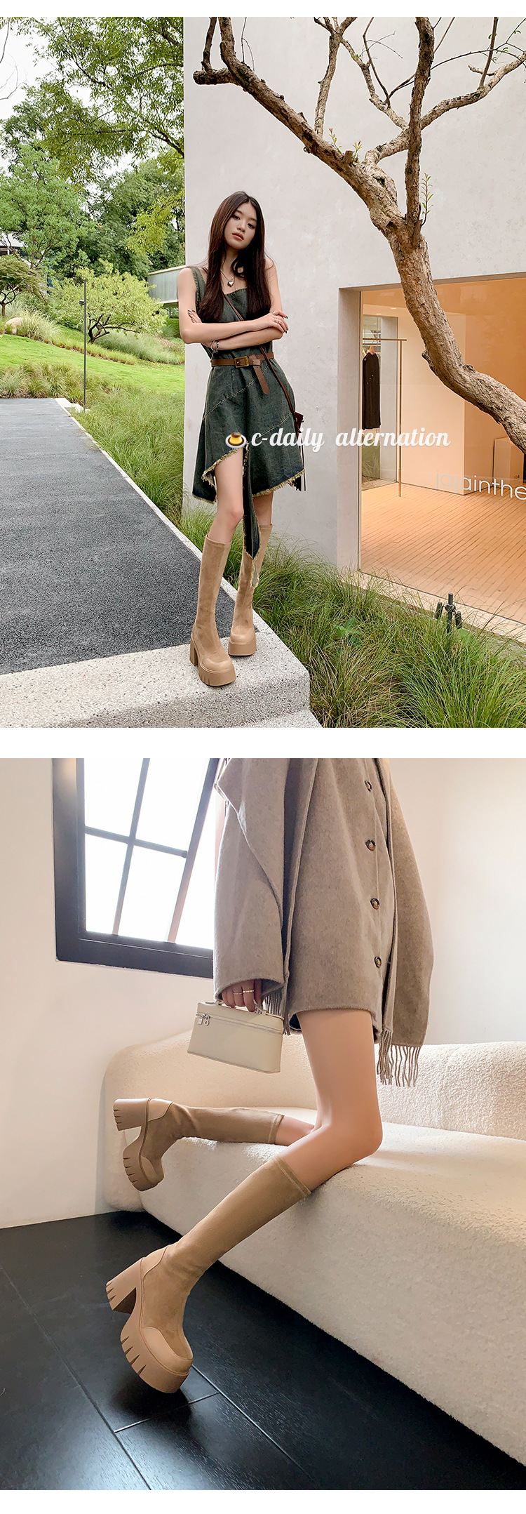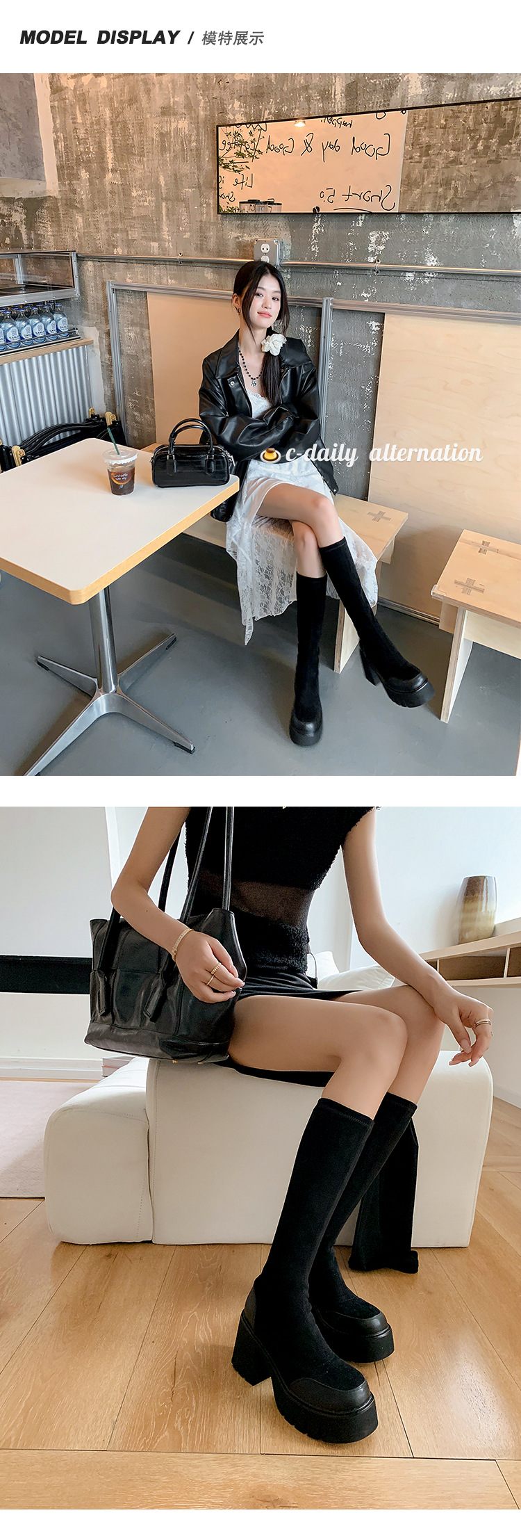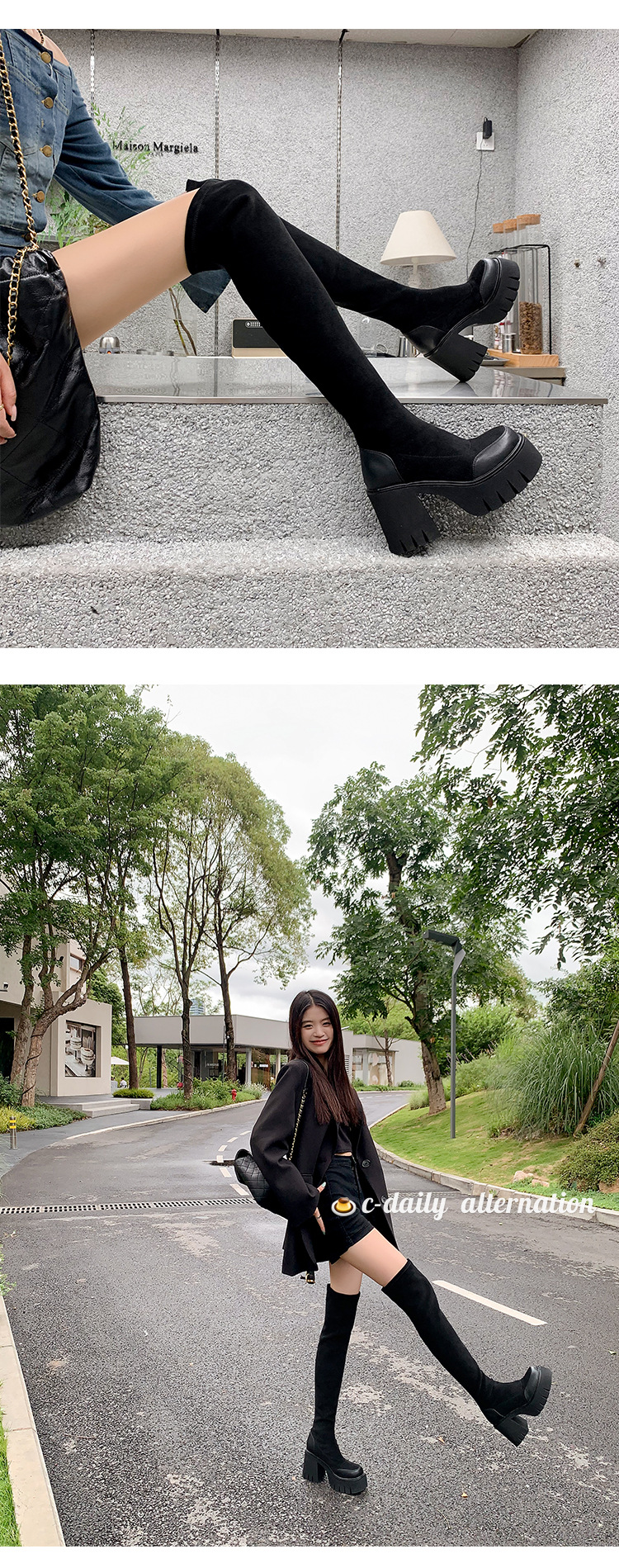 9cm 슈퍼 하이힐 두꺼운 힐 두꺼운 밑창 스트레치 부츠 여성용 가을 및 겨울 빅 튜브 방수 테이블 얇은 부츠 기모 무릎 위 부츠스토어 가기