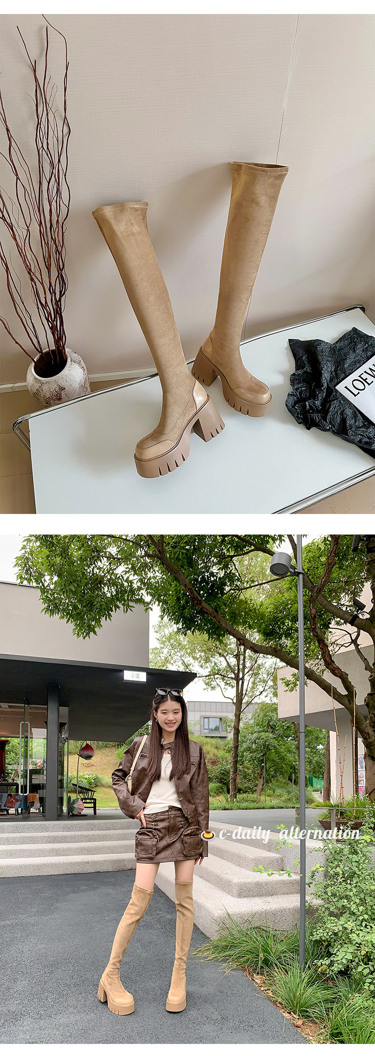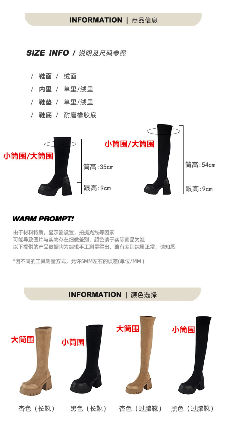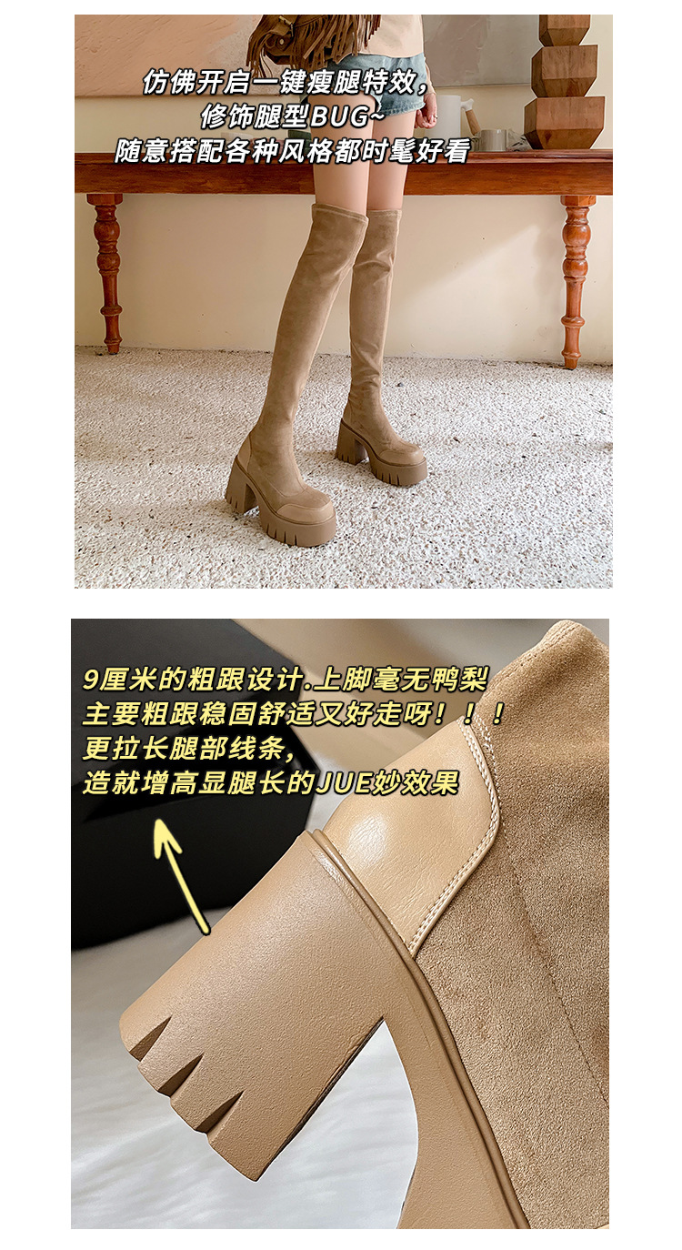 9cm 슈퍼 하이힐 두꺼운 힐 두꺼운 밑창 스트레치 부츠 여성용 가을 및 겨울 빅 튜브 방수 테이블 얇은 부츠 기모 무릎 위 부츠