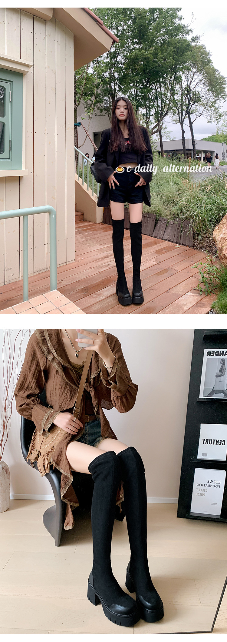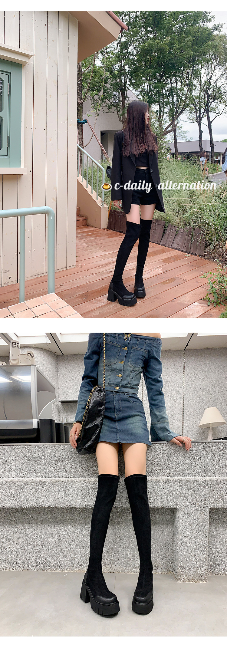 • 블랙 니하이 튜브 싱글 안감