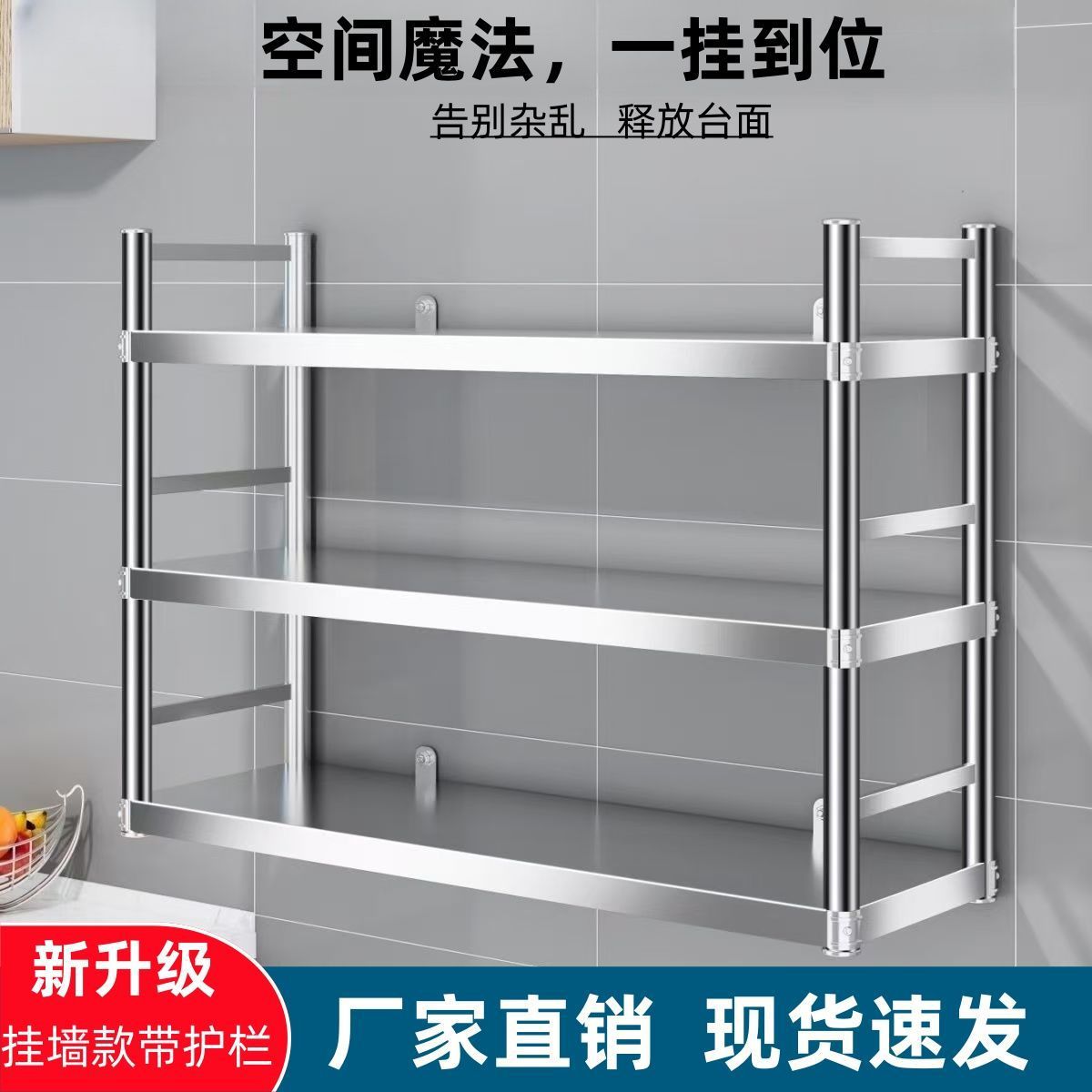 스테인레스 스틸 주방 벽 랙 2 층 전자 레인지 랙 교수형 캐비닛 벽 그릇 랙 3 층 선반 저장 냄비 랙스토어 가기