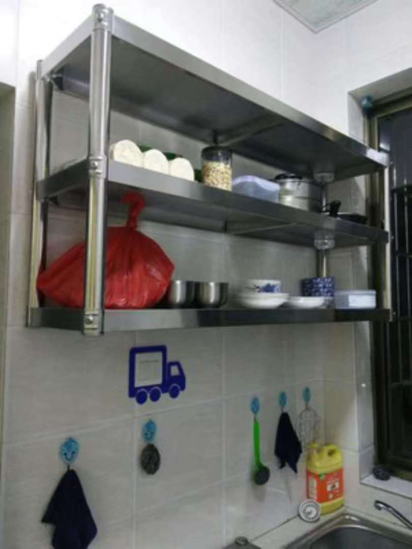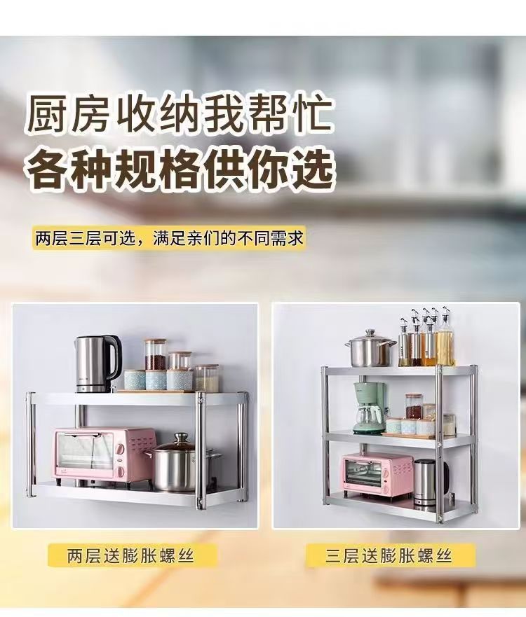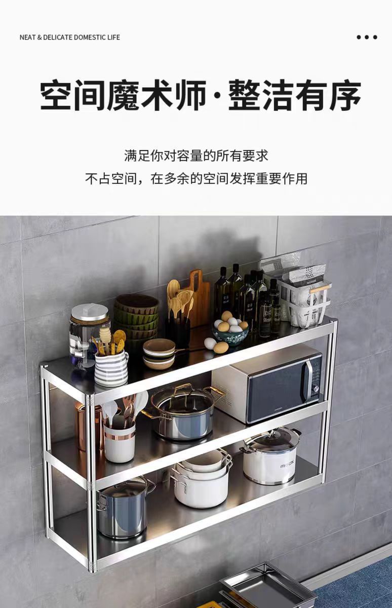 스테인레스 스틸 주방 벽 랙 2 층 전자 레인지 랙 교수형 캐비닛 벽 그릇 랙 3 층 선반 저장 냄비 랙