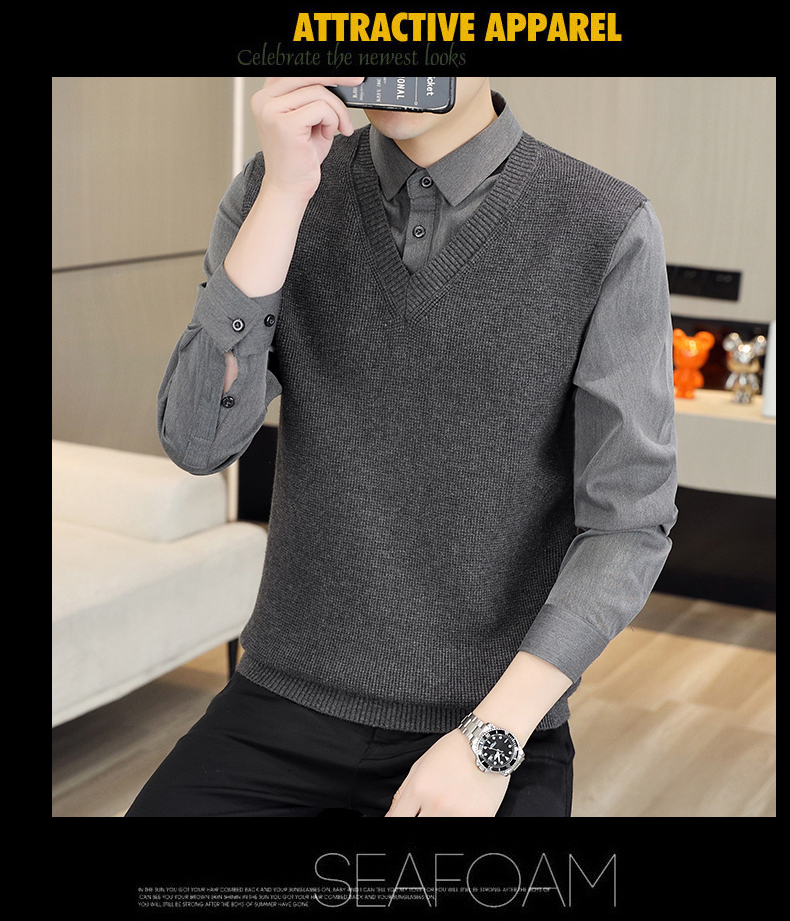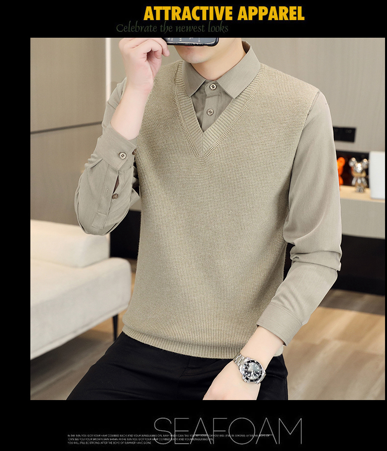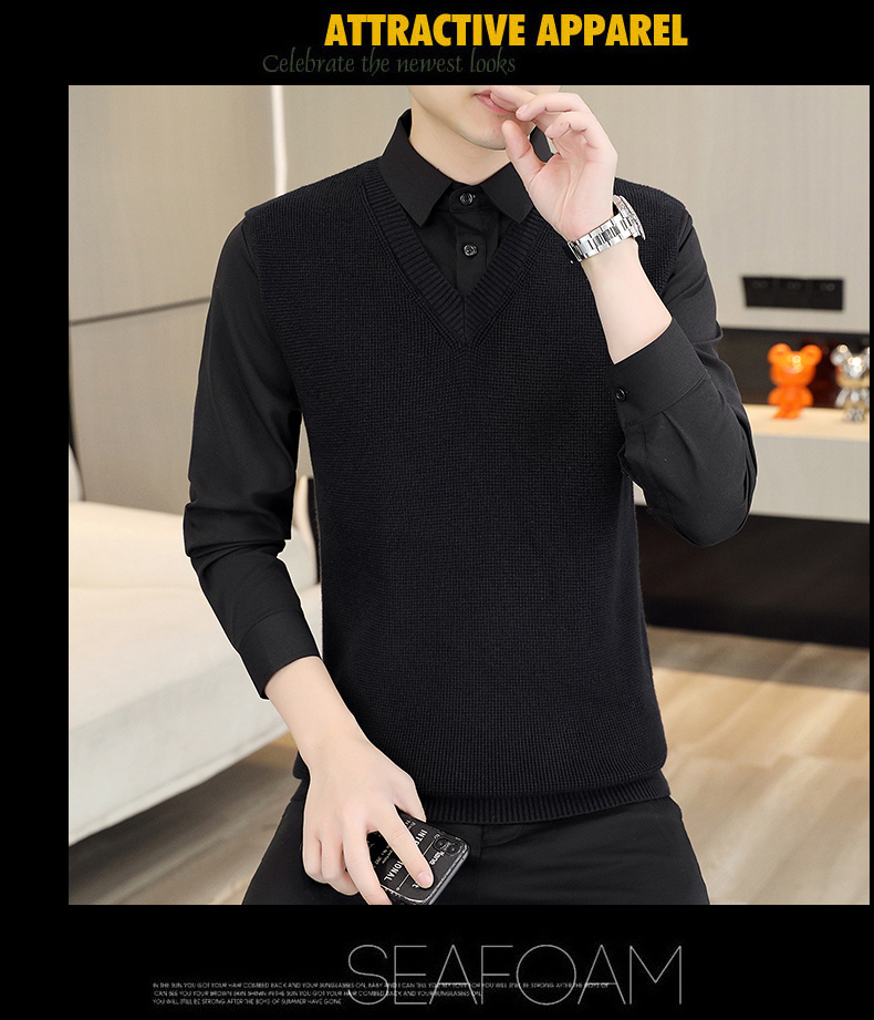 하이 엔드 가짜 투피스 스웨터 남자의 가을과 겨울 따뜻한 셔츠 칼라 스웨터 겨울 내베이스 니트 탑스토어 가기