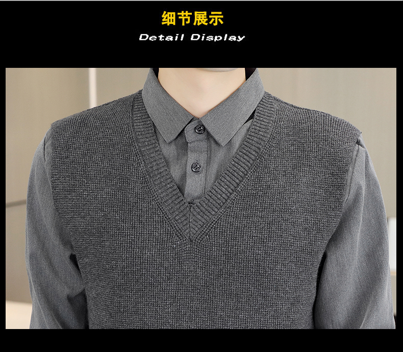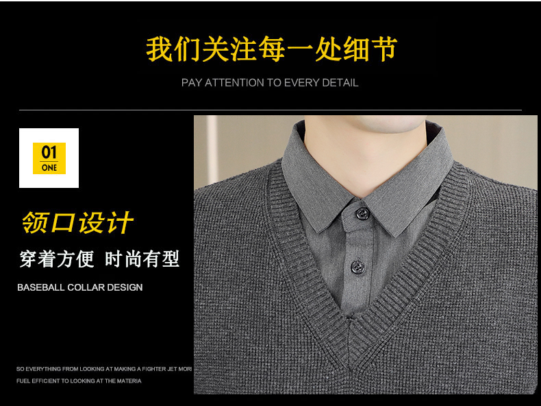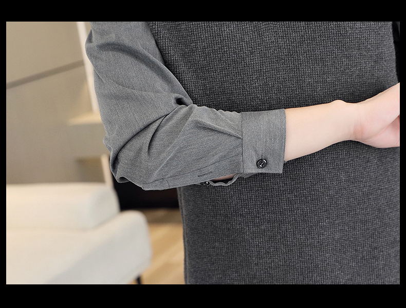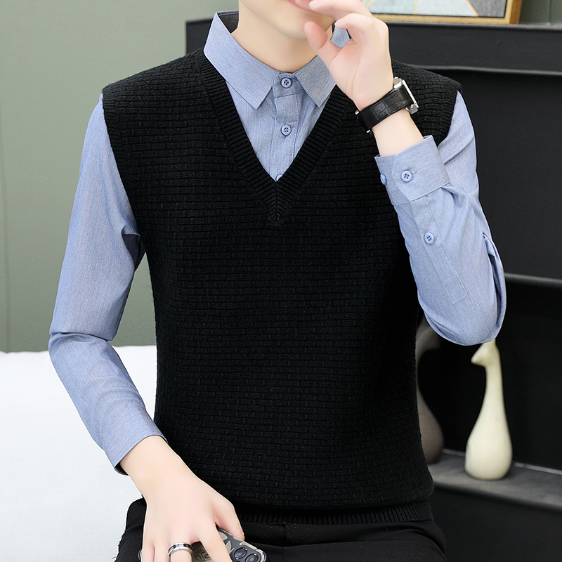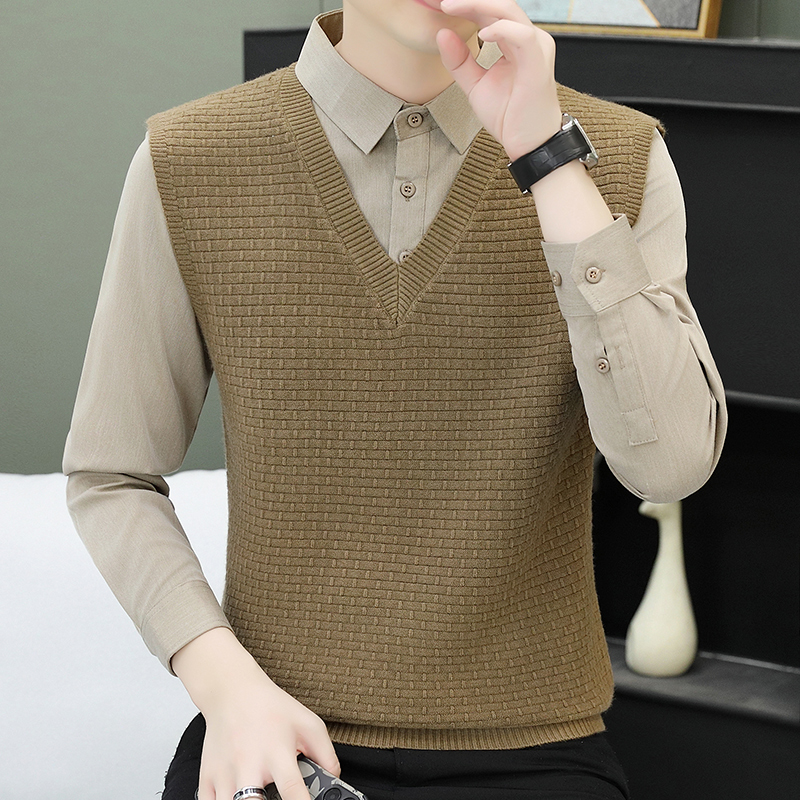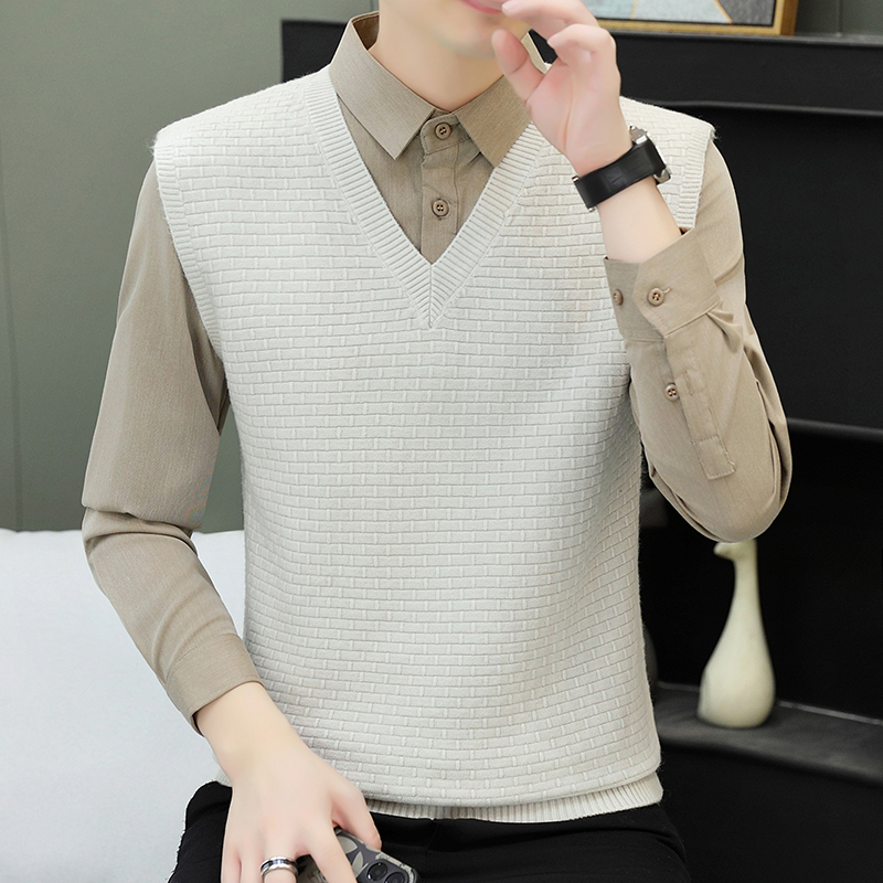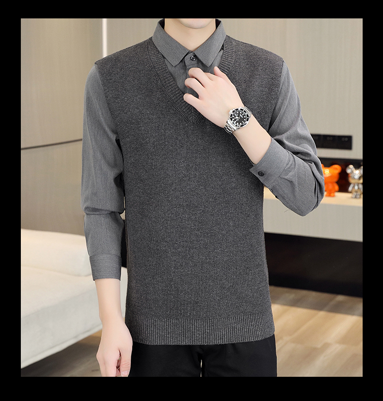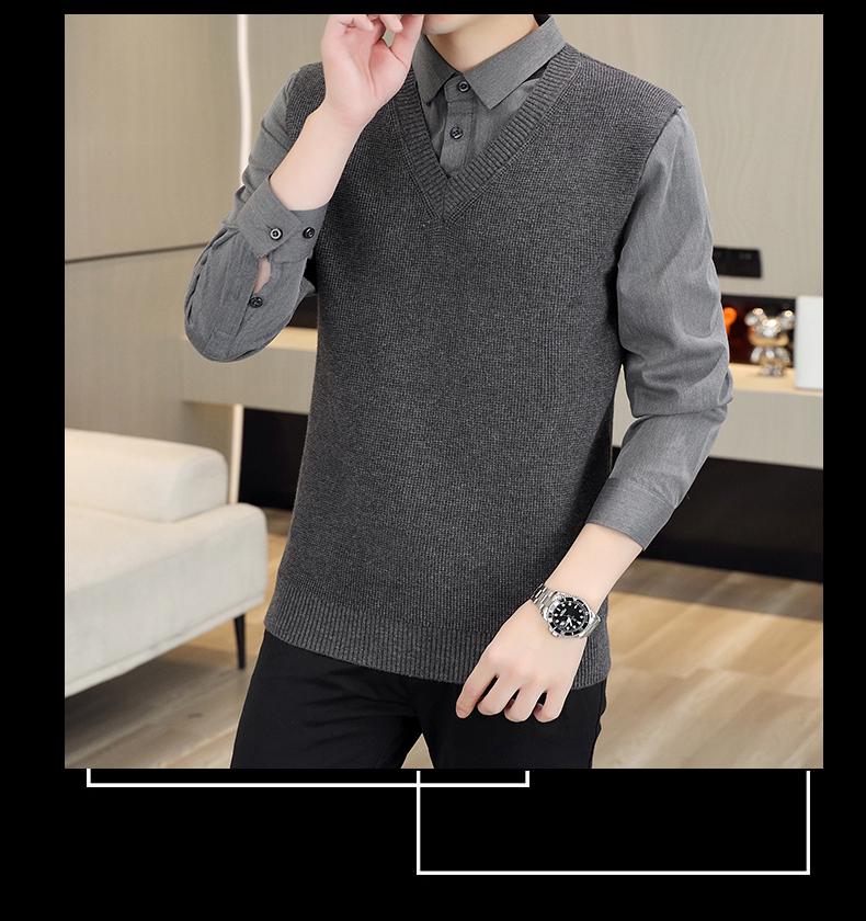 하이 엔드 가짜 투피스 스웨터 남자의 가을과 겨울 따뜻한 셔츠 칼라 스웨터 겨울 내베이스 니트 탑