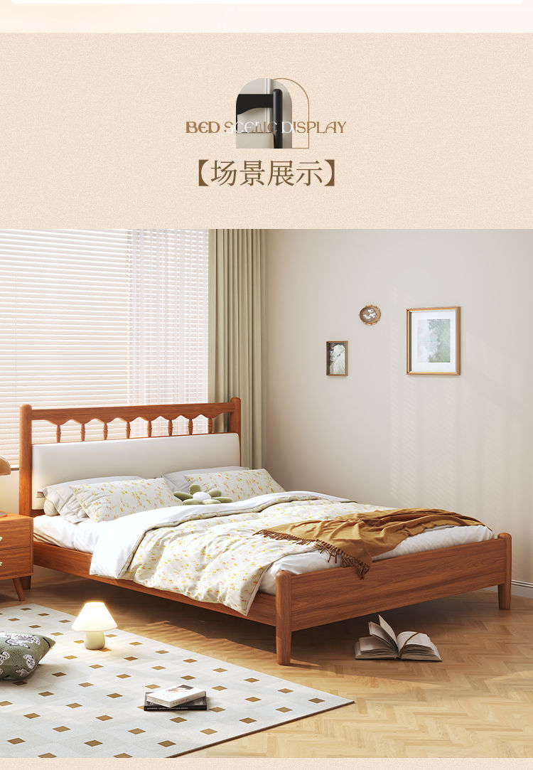 북유럽 스타일 빈티지 로그 스타일 솔리드 우드 침대 현대 간단한 1.5 더블 마스터 침실 웨딩 침대 크림 스타일 일본식 홈스테이 침대스토어 가기