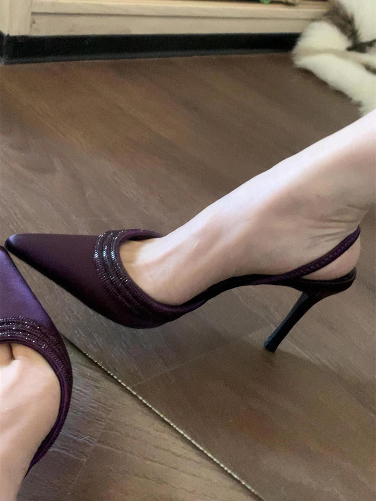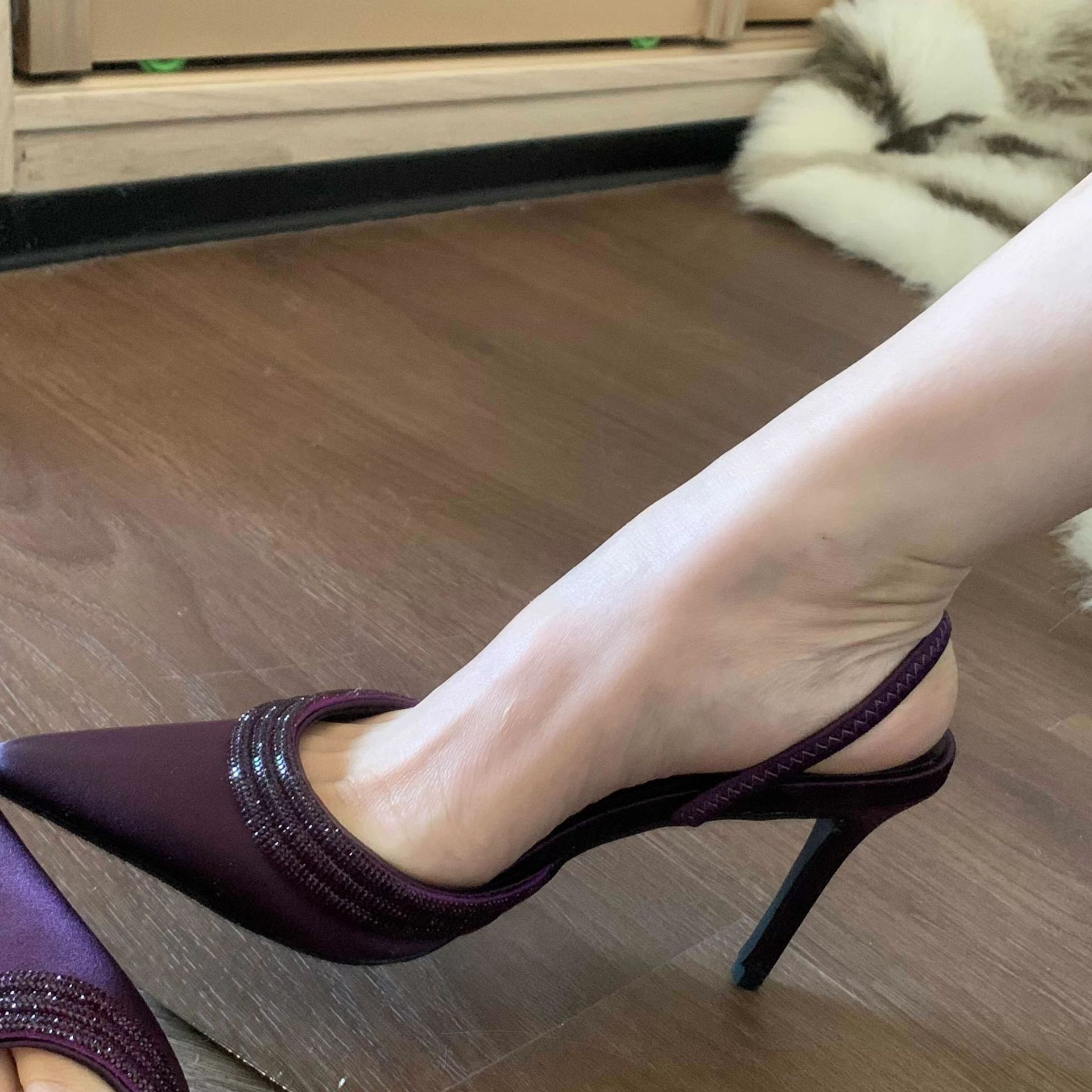 2025 가을 신상 뾰족코 보라색 얇은 굽 하이힐 반슬립 샌들 여성용스토어 가기