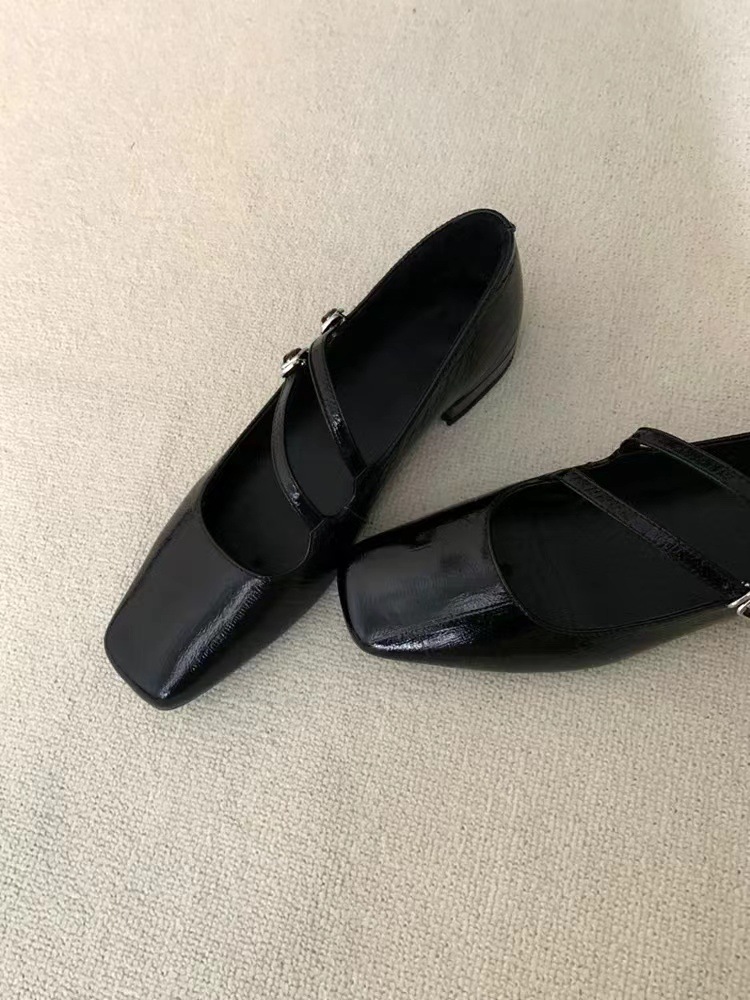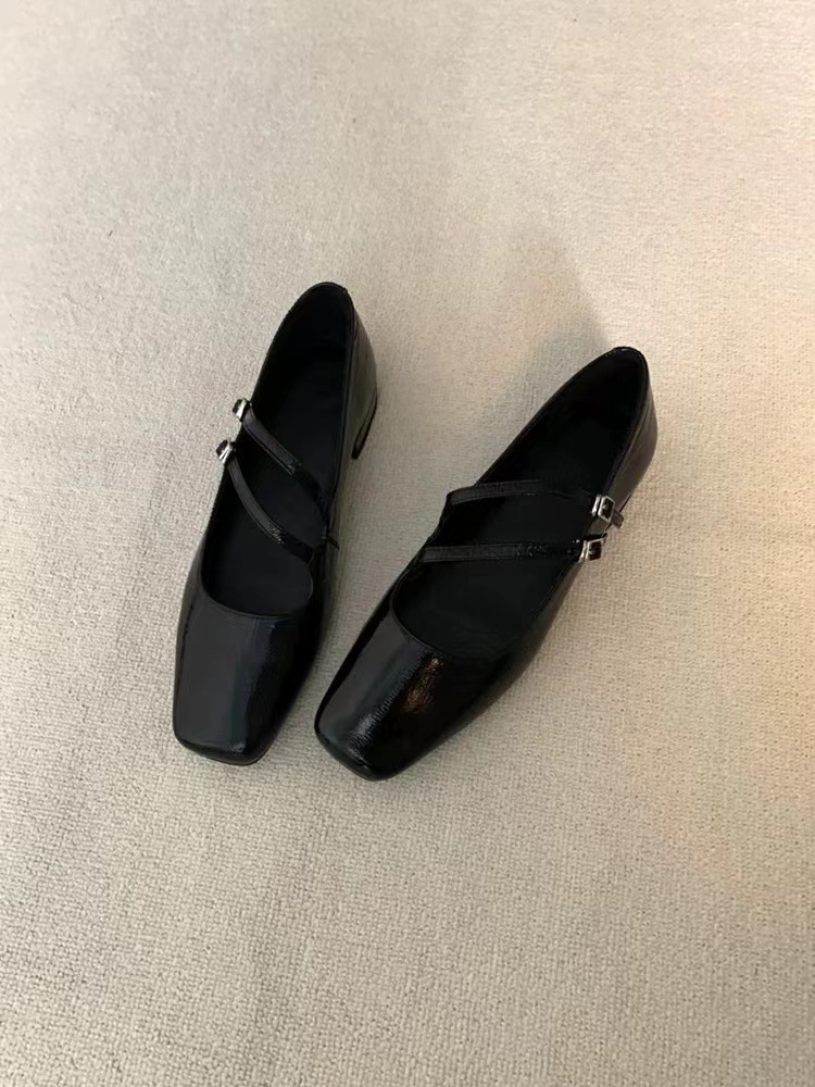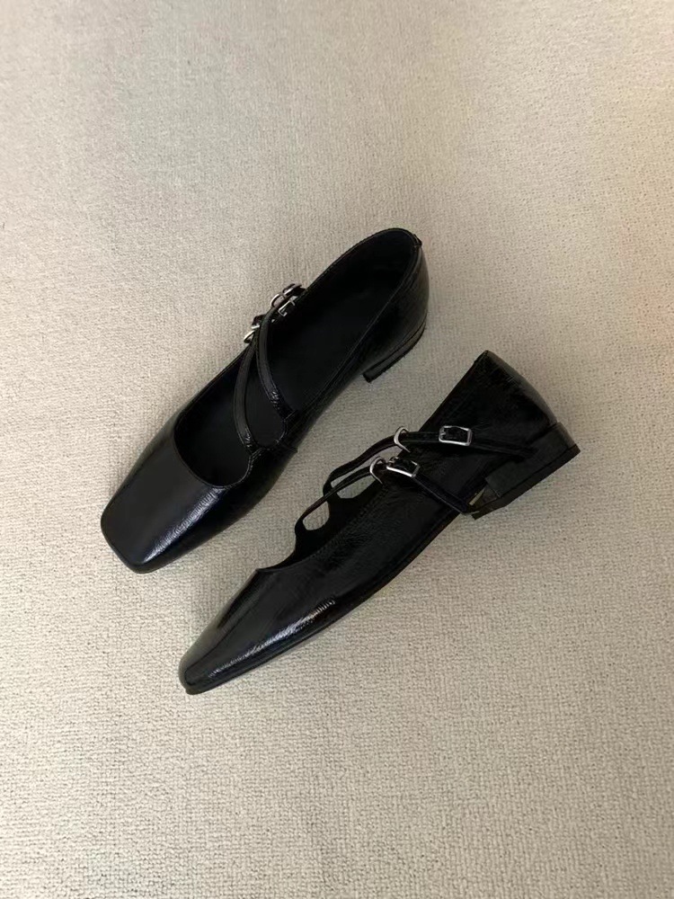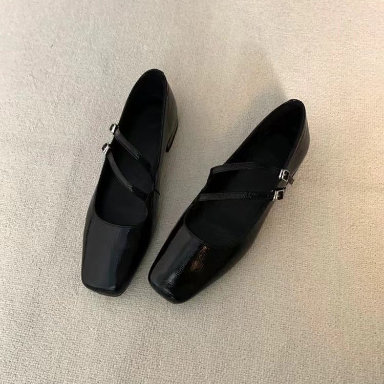프랑스 스타일 메리 제인 신발 여성 트렌디 한 레트로 2024 새로운 플랫 올 매치 스퀘어 토트 소프트 가죽 두꺼운 힐링 우아한 싱글 레이어 신발스토어 가기