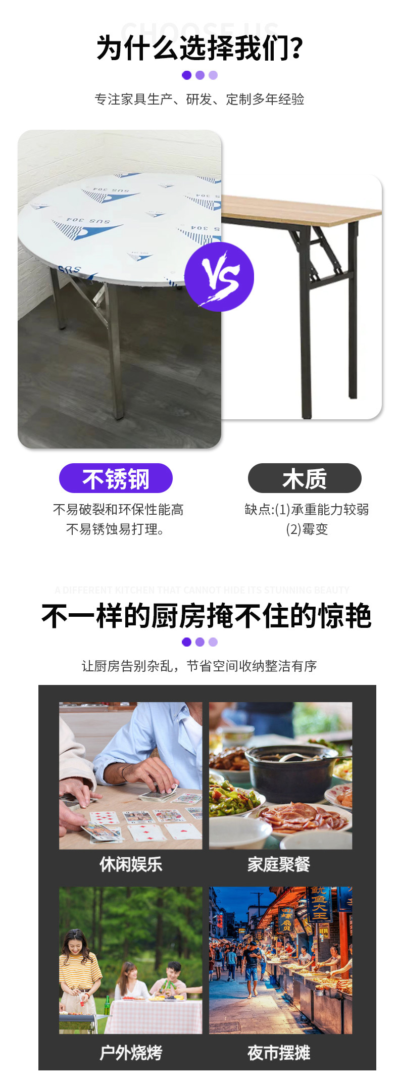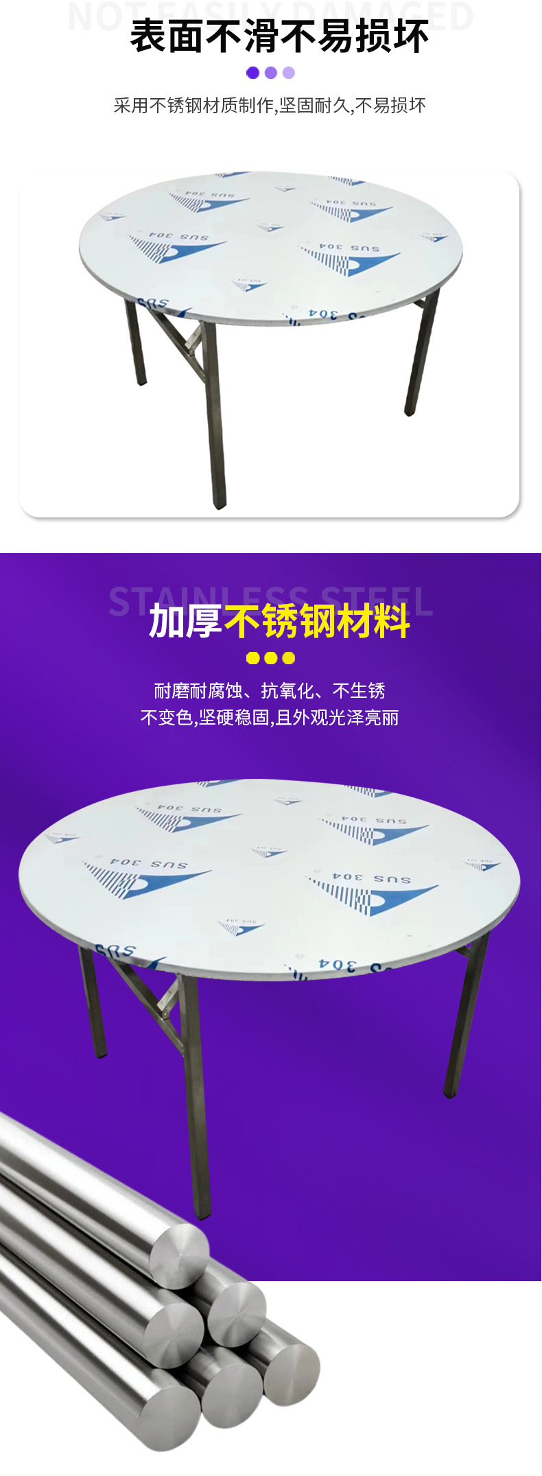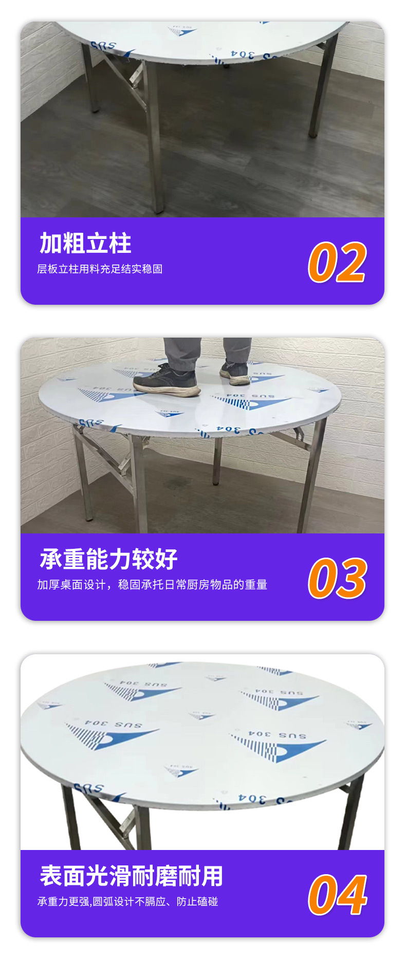 야외 캠핑 원형 이동식 테이블 홈 스토리지 식탁 레스토랑 캔틴 스테인레스 스틸 접이식 원형 테이블 제조 업체스토어 가기