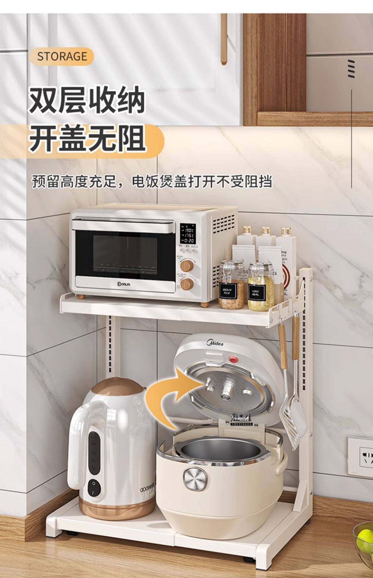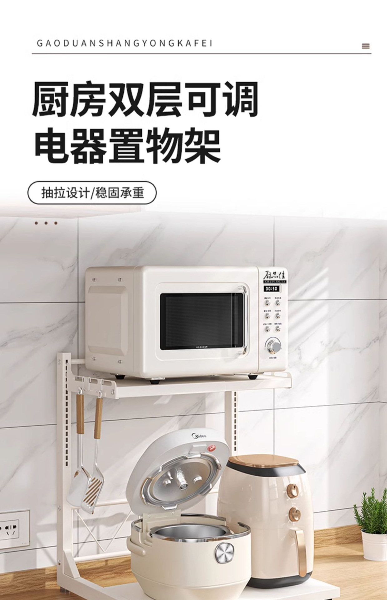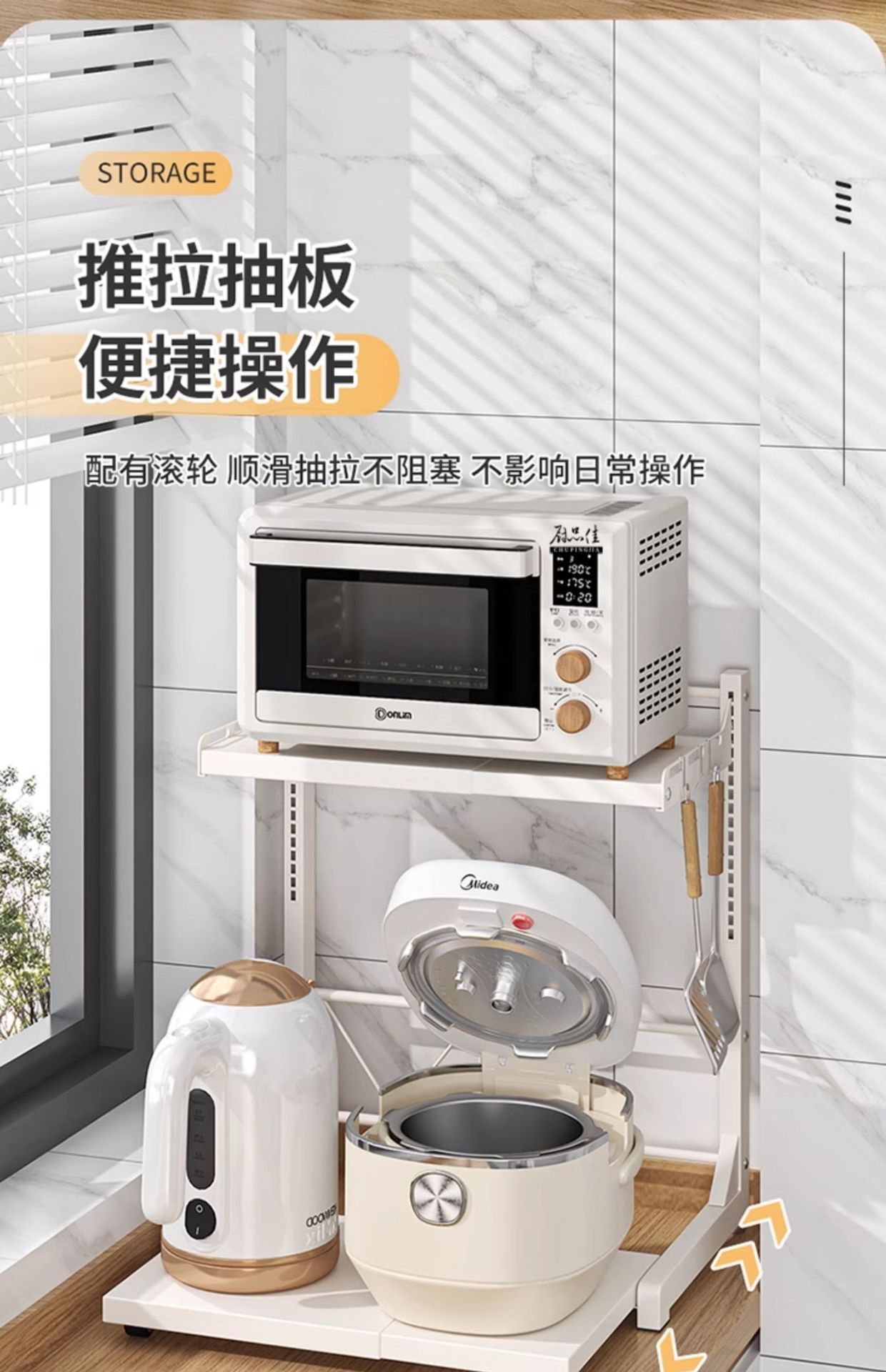 다기능 주방 전자레인지 밥솥 수납 선반, 이중층, 슬라이드형 수납장, 에어프라이어스토어 가기