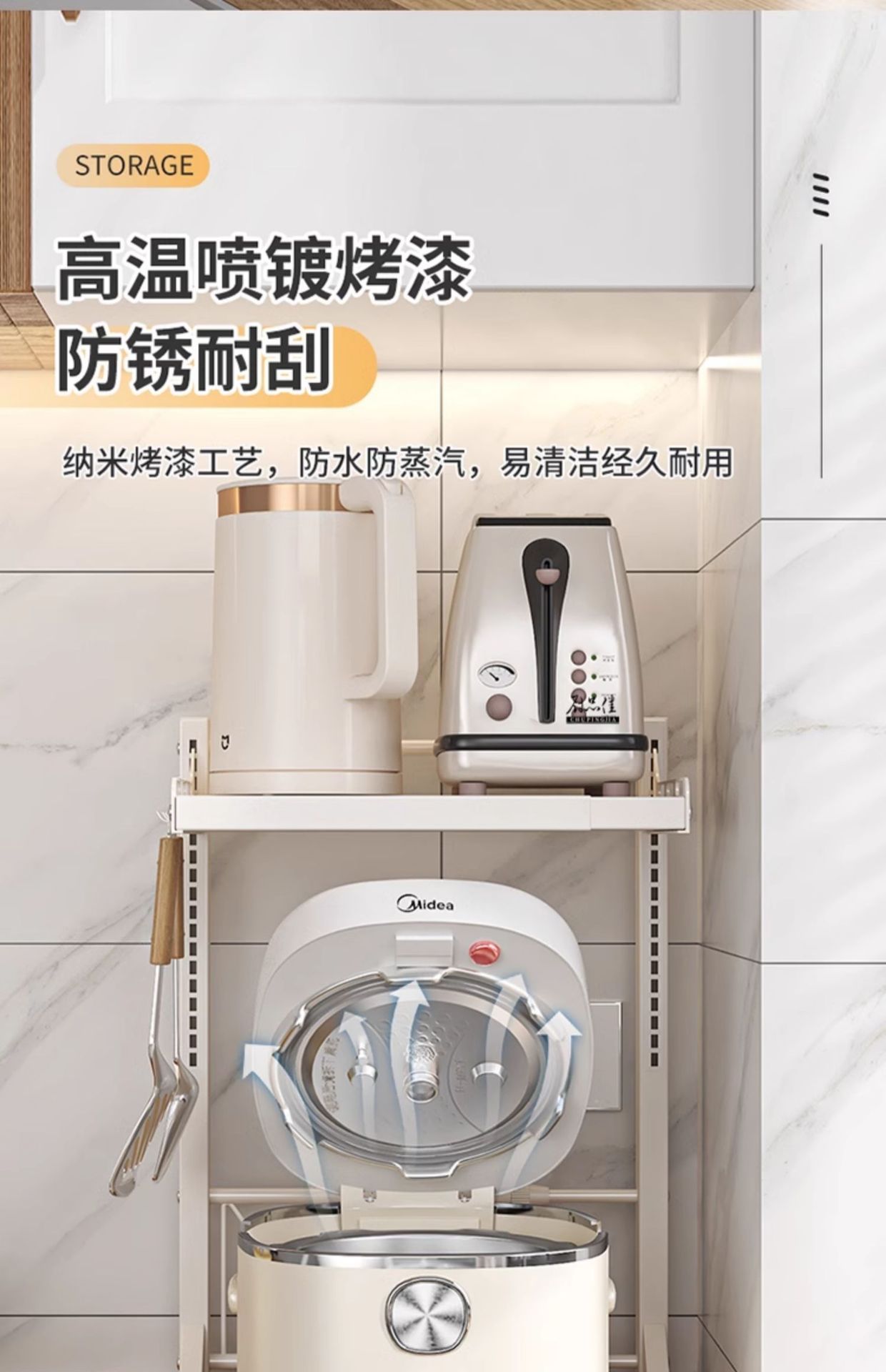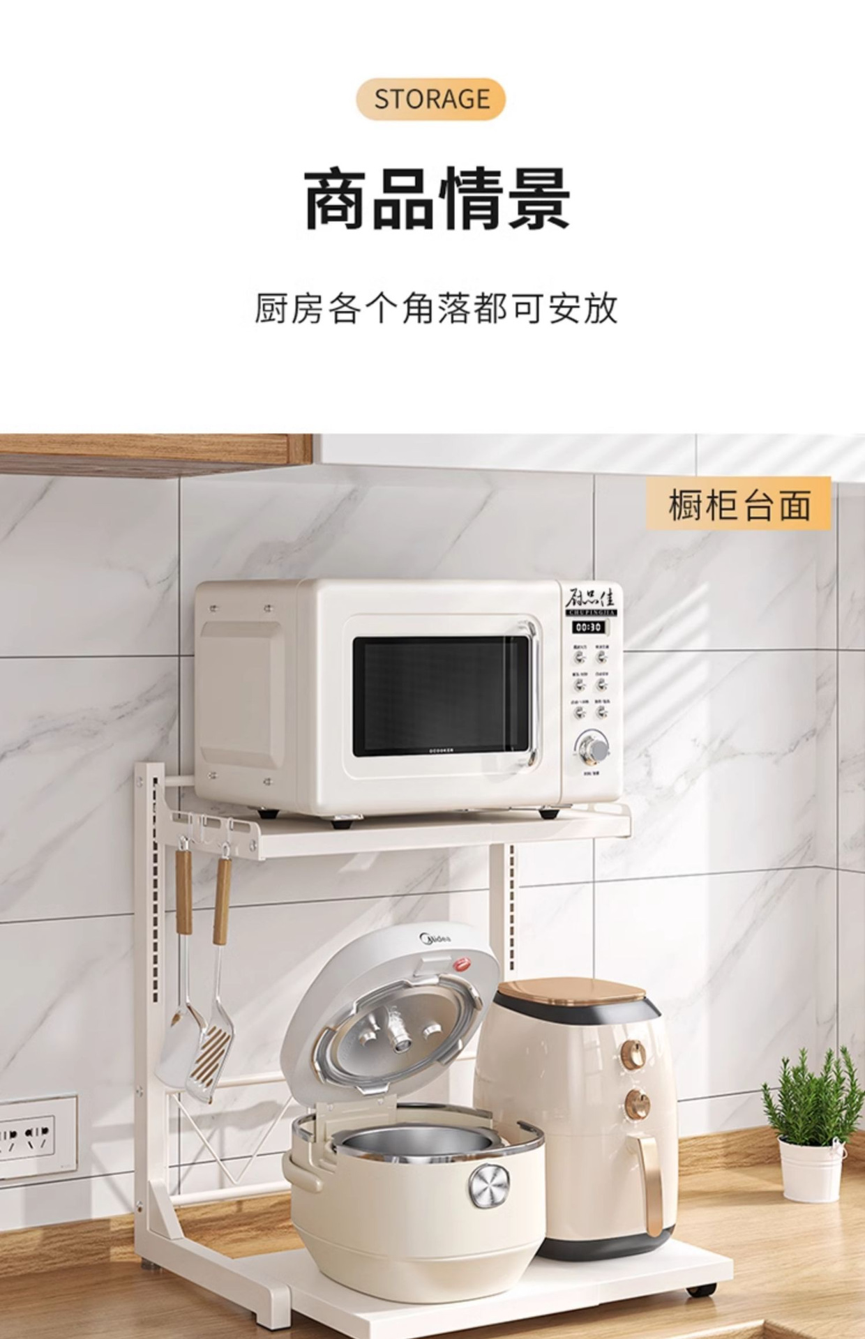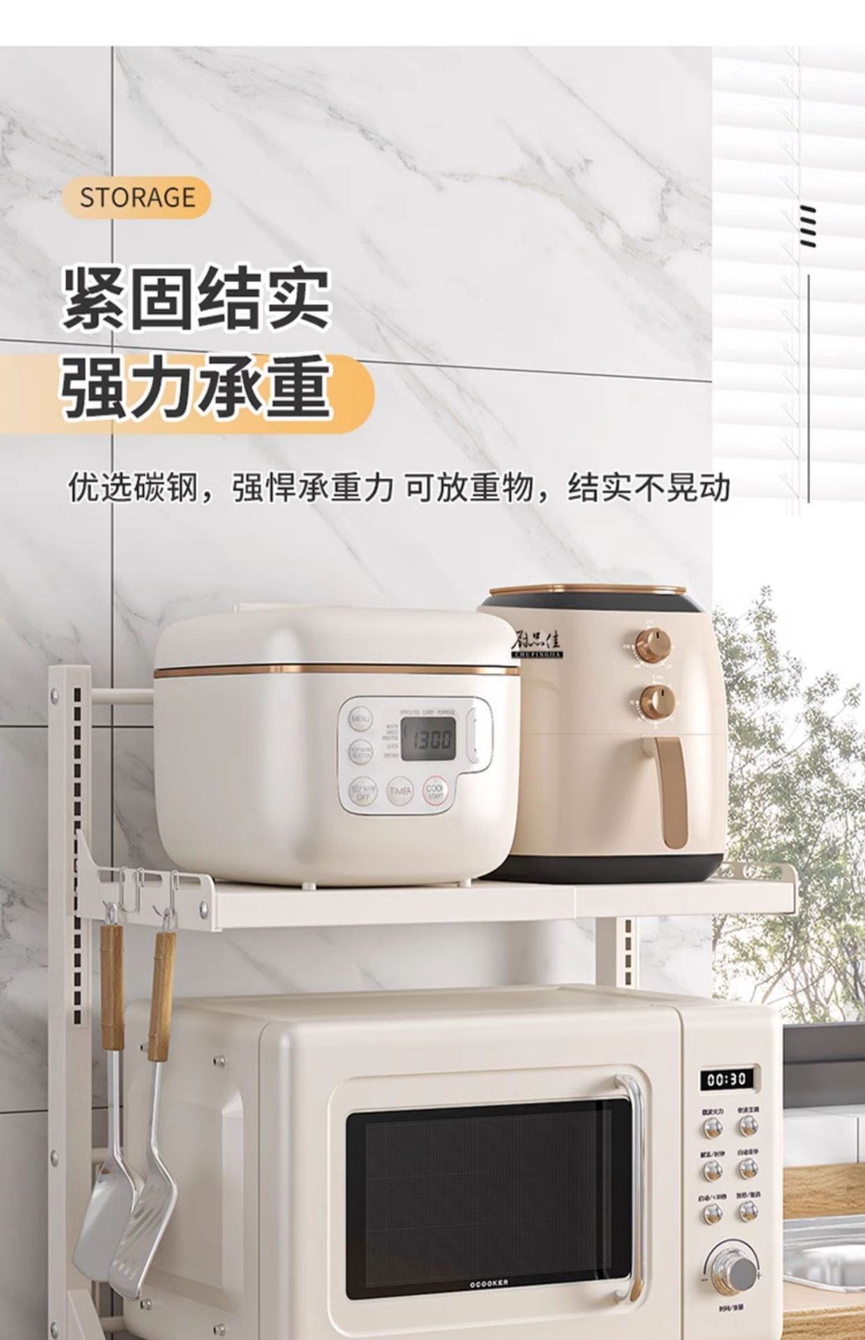 다기능 주방 전자레인지 밥솥 수납 선반, 이중층, 슬라이드형 수납장, 에어프라이어스토어 가기