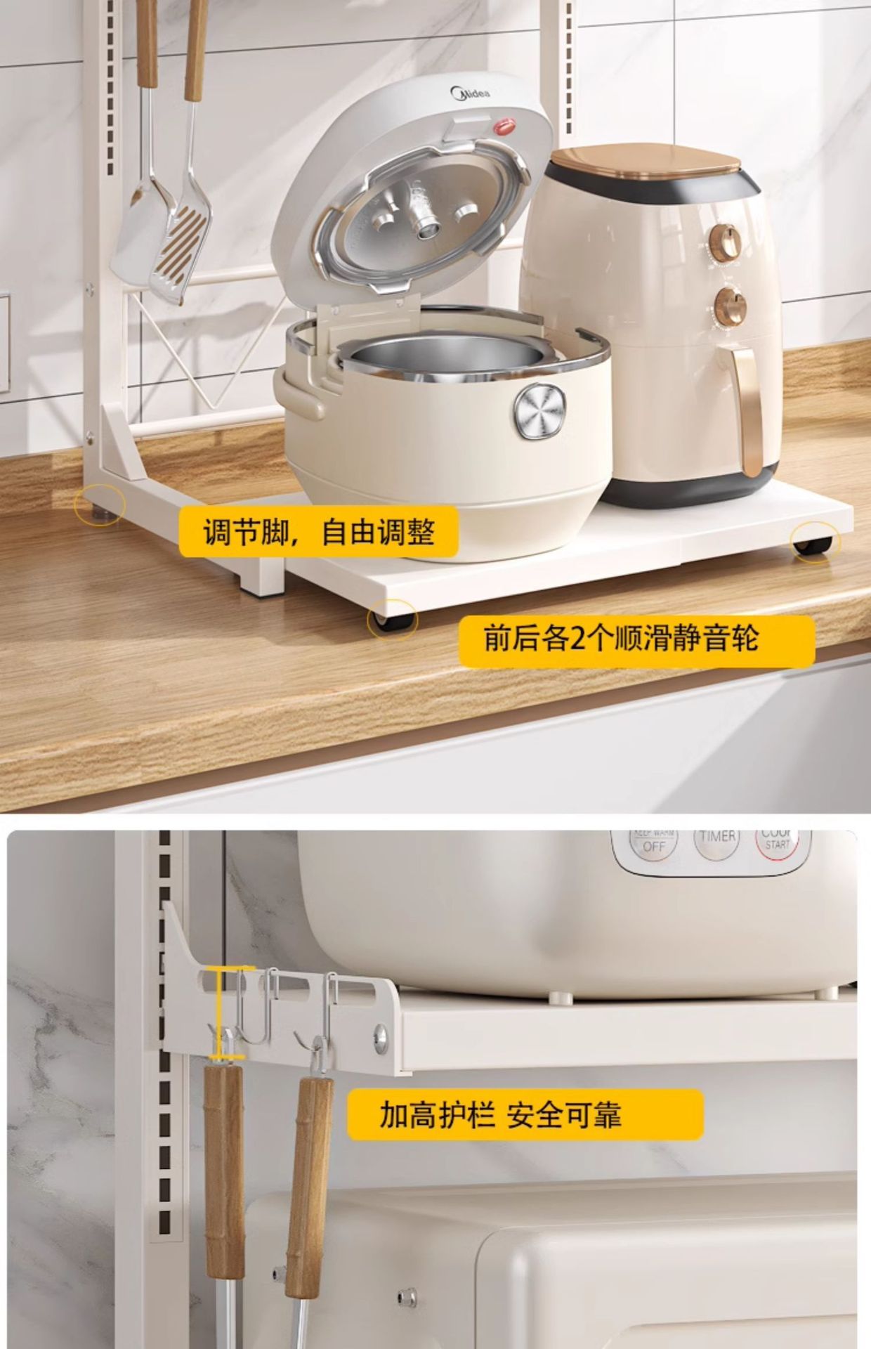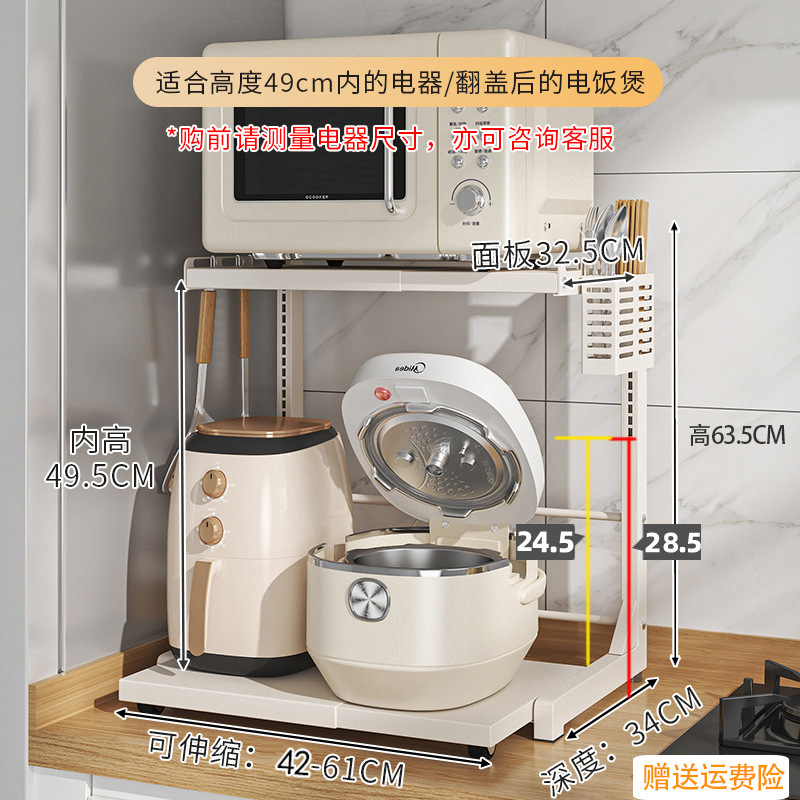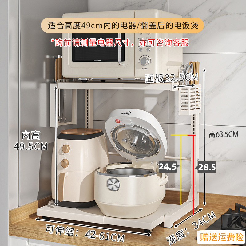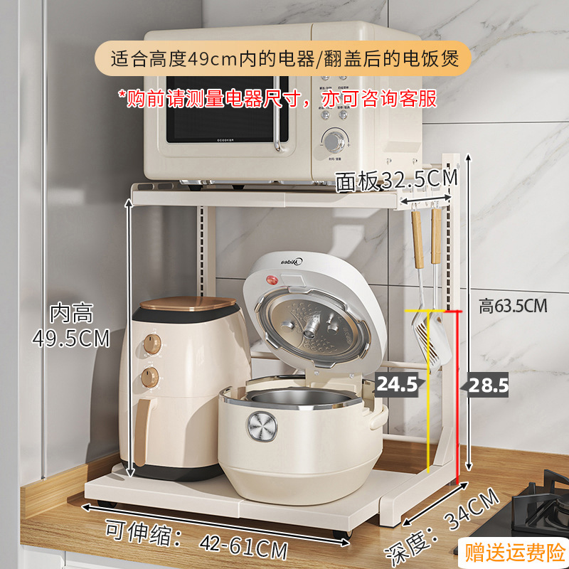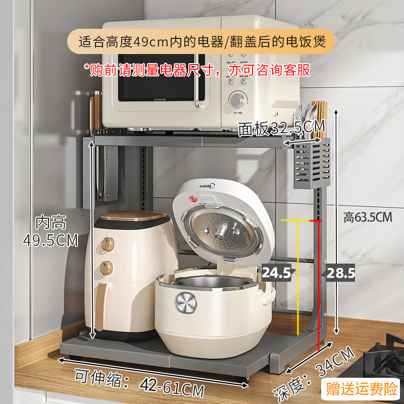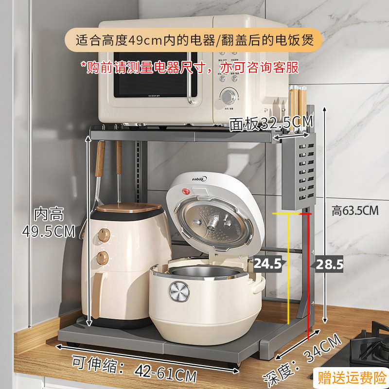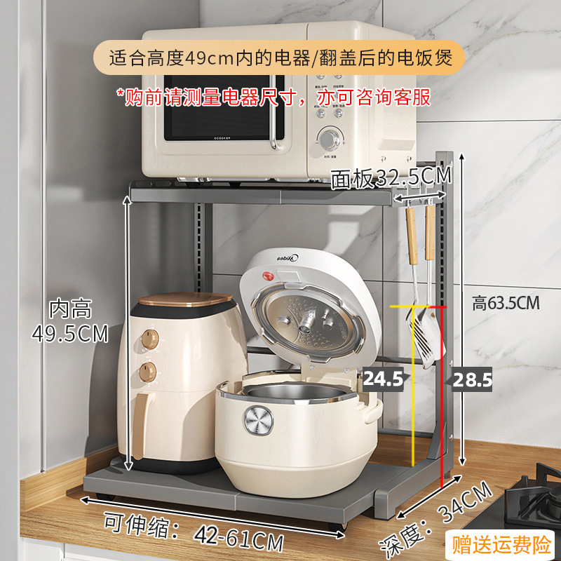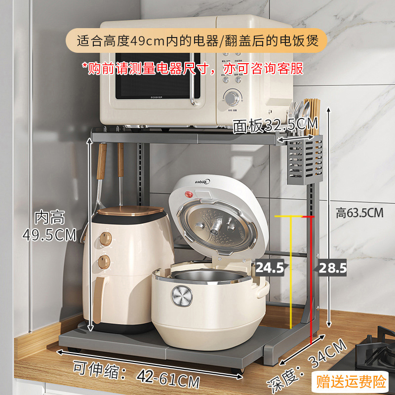 다기능 주방 전자레인지 밥솥 수납 선반, 이중층, 슬라이드형 수납장, 에어프라이어