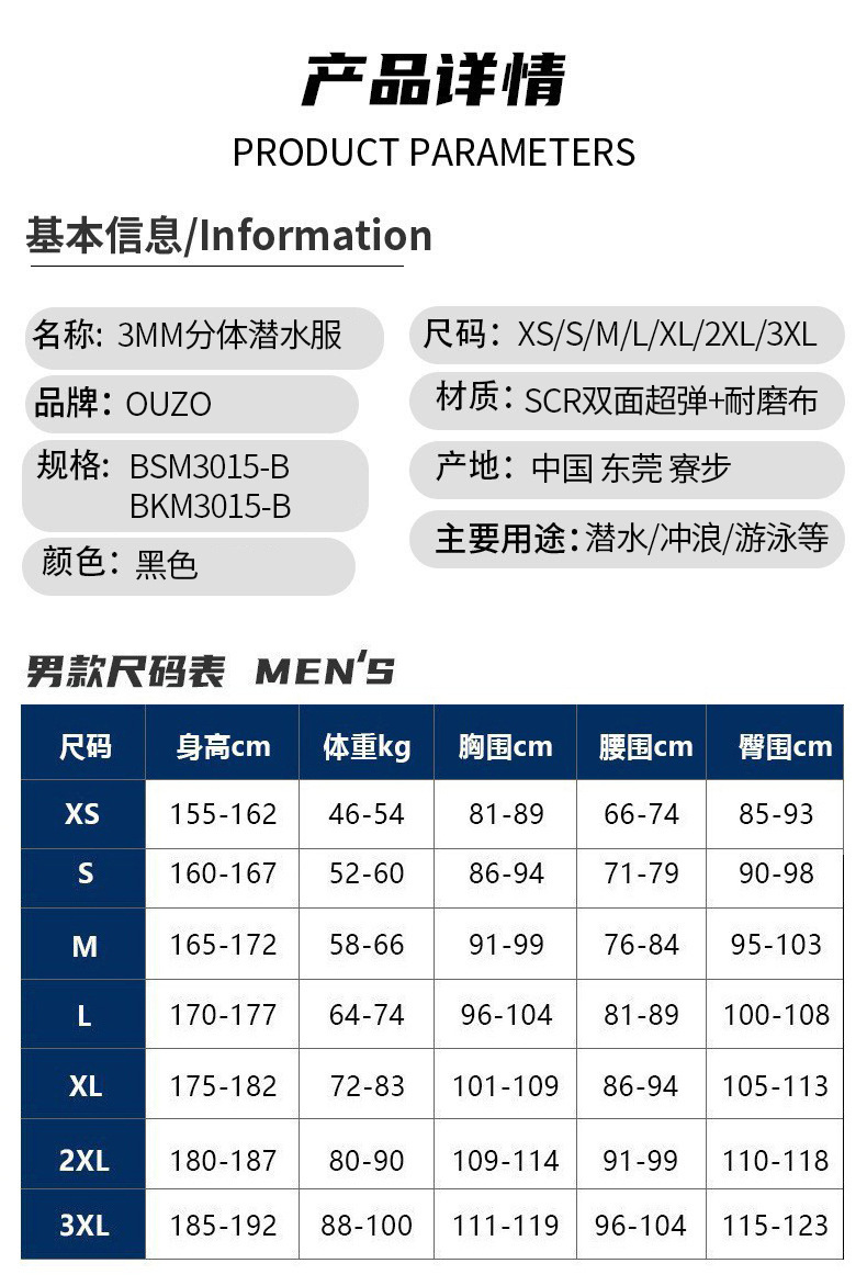 새로운 3mm 다이빙 세트 남자 긴팔 스플릿 다이빙 세트 두껍게 냉장 따뜻한 무료 다이빙 서핑 세트스토어 가기