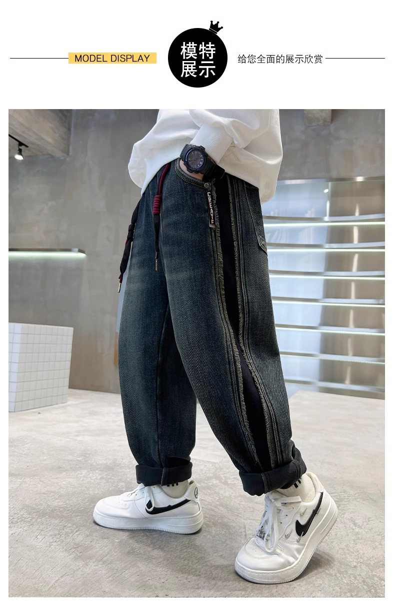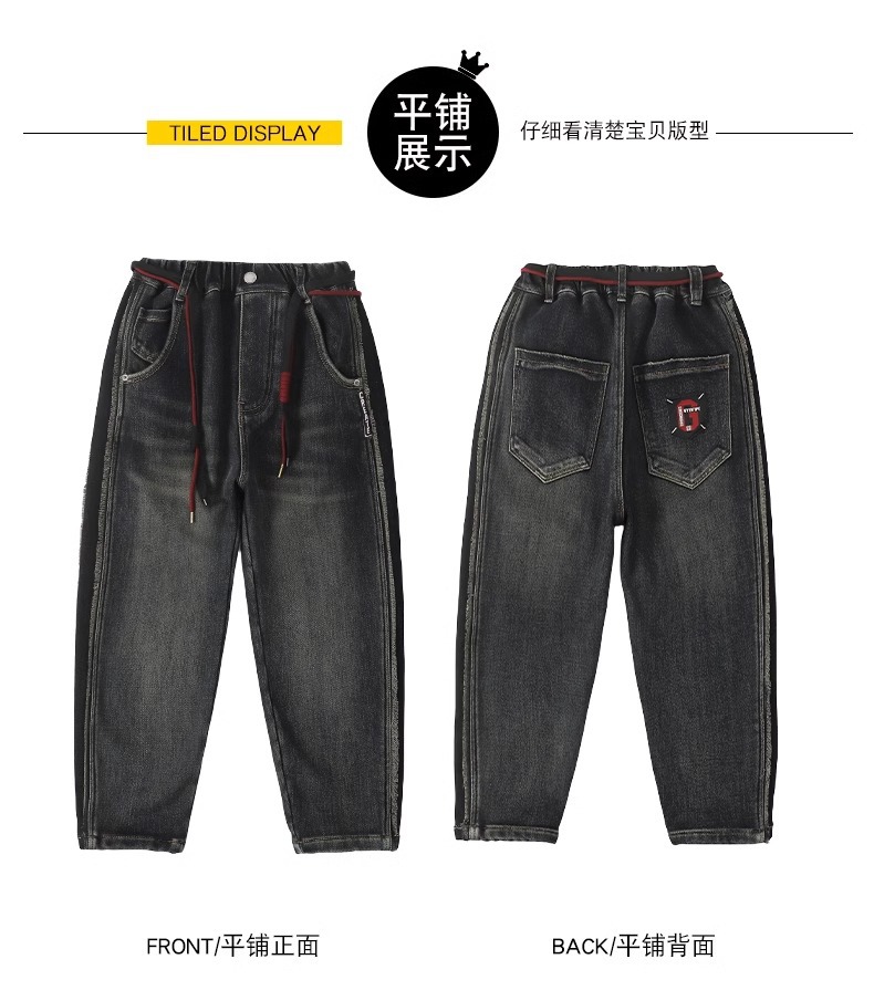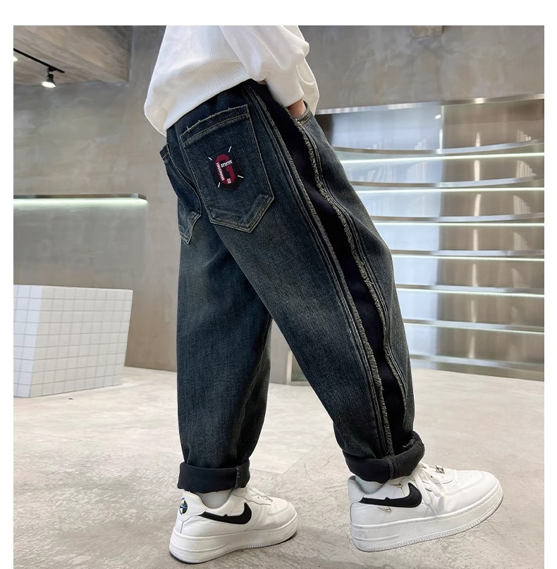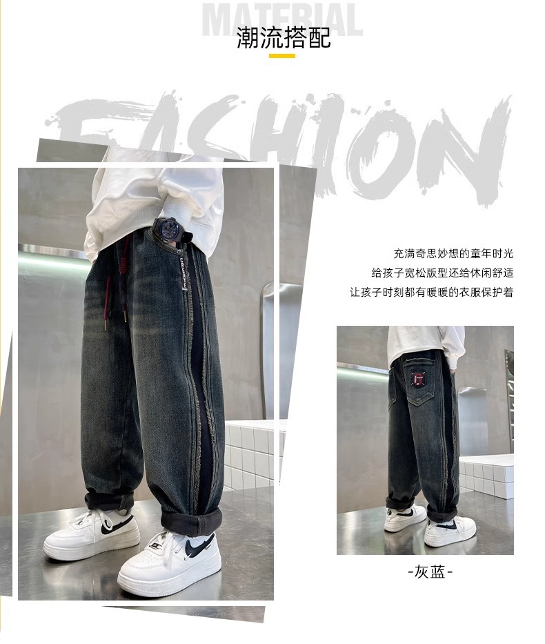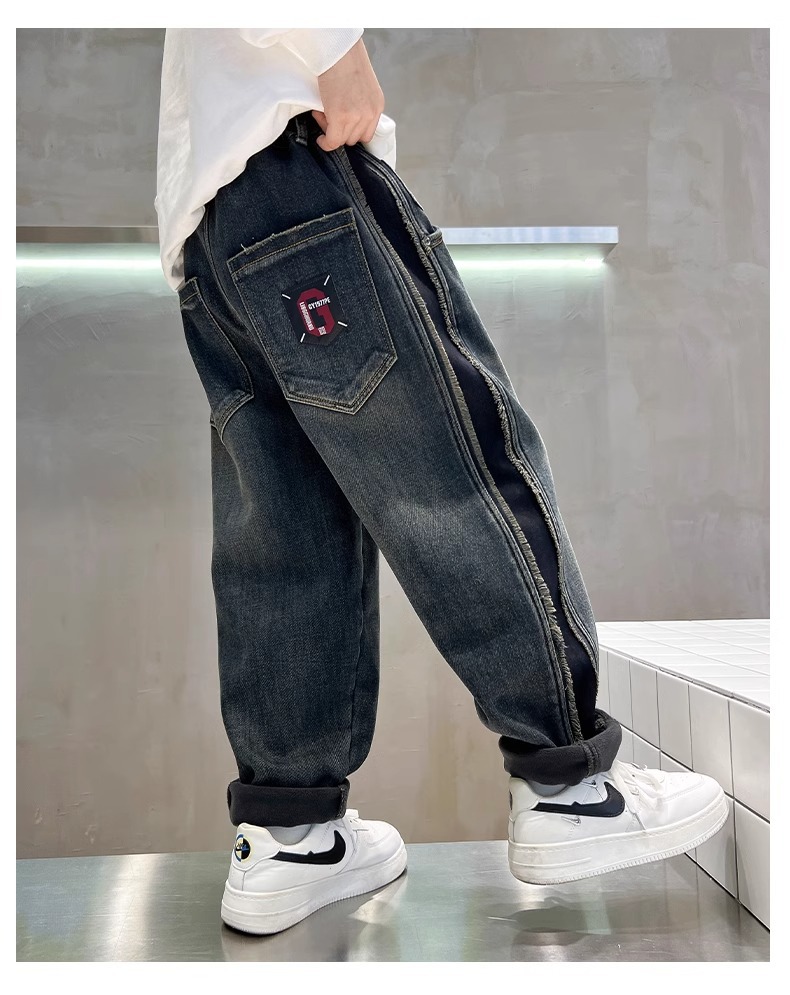 어린이 소년 바지 소년 겨울 새로운 대형 어린이 기모 두꺼운 Huzhou Zhili 원피스 벨벳 청바지스토어 가기