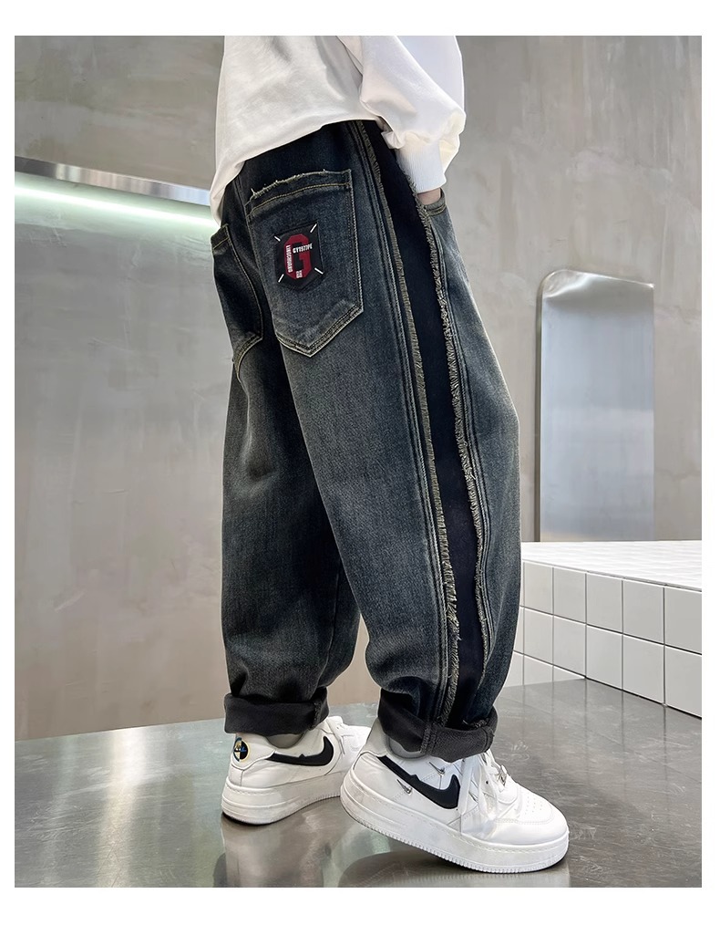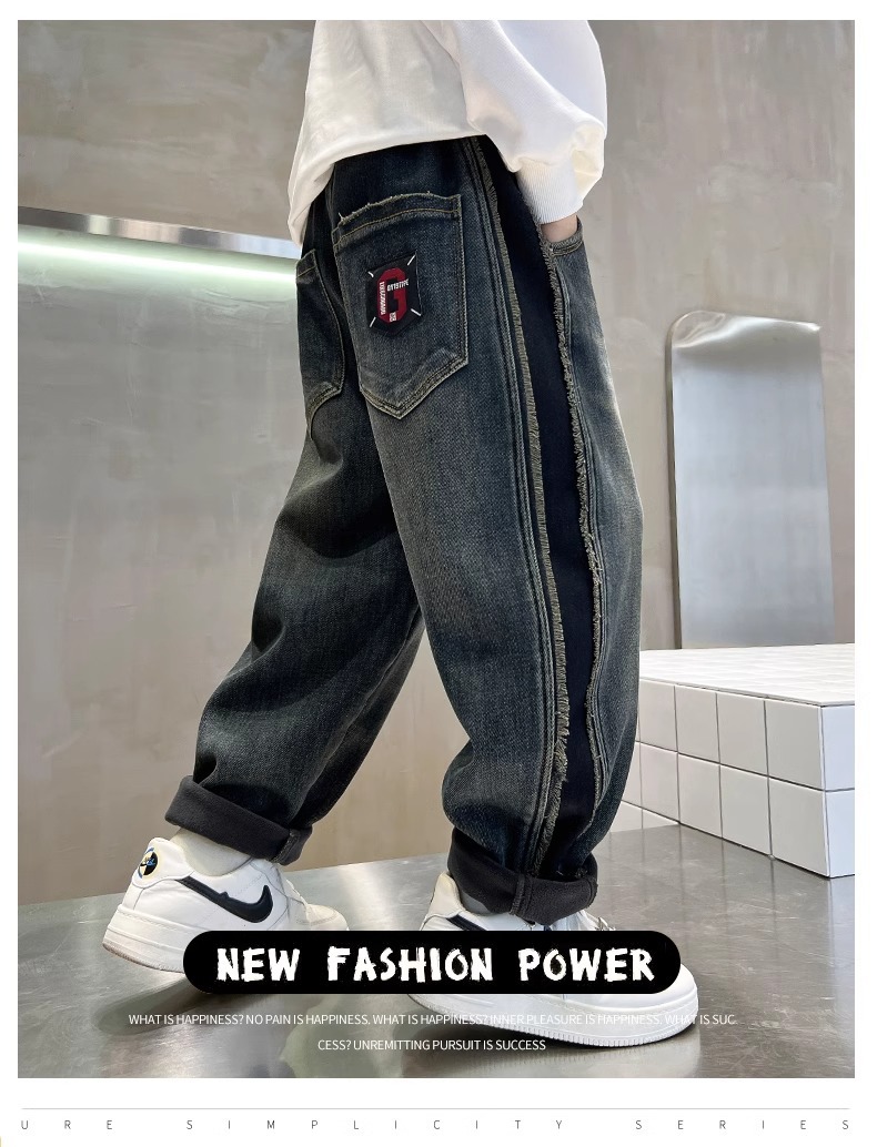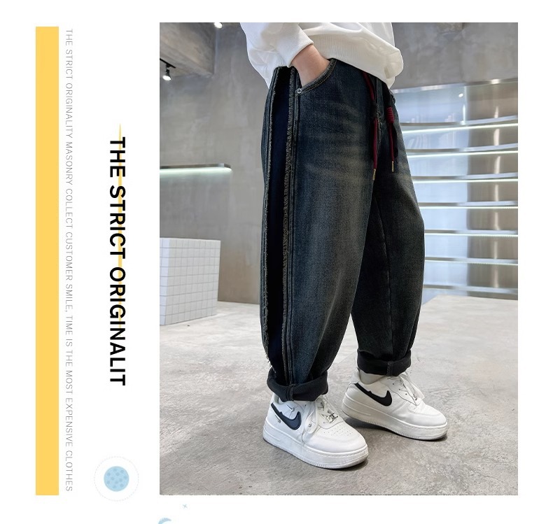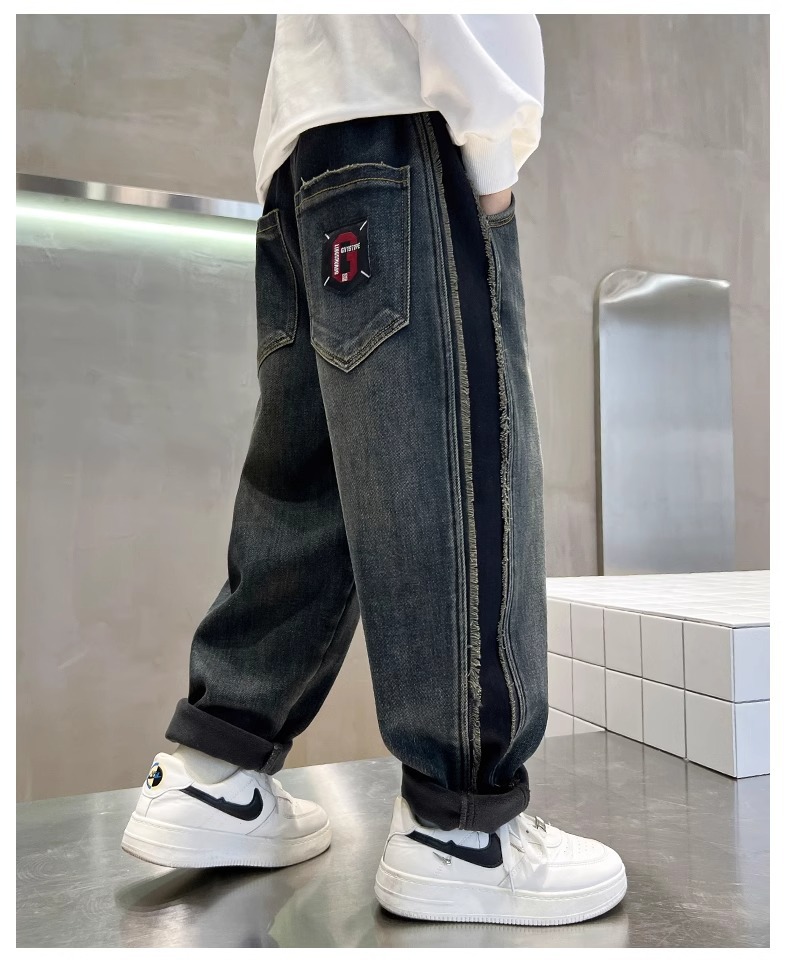 어린이 소년 바지 소년 겨울 새로운 대형 어린이 기모 두꺼운 Huzhou Zhili 원피스 벨벳 청바지스토어 가기