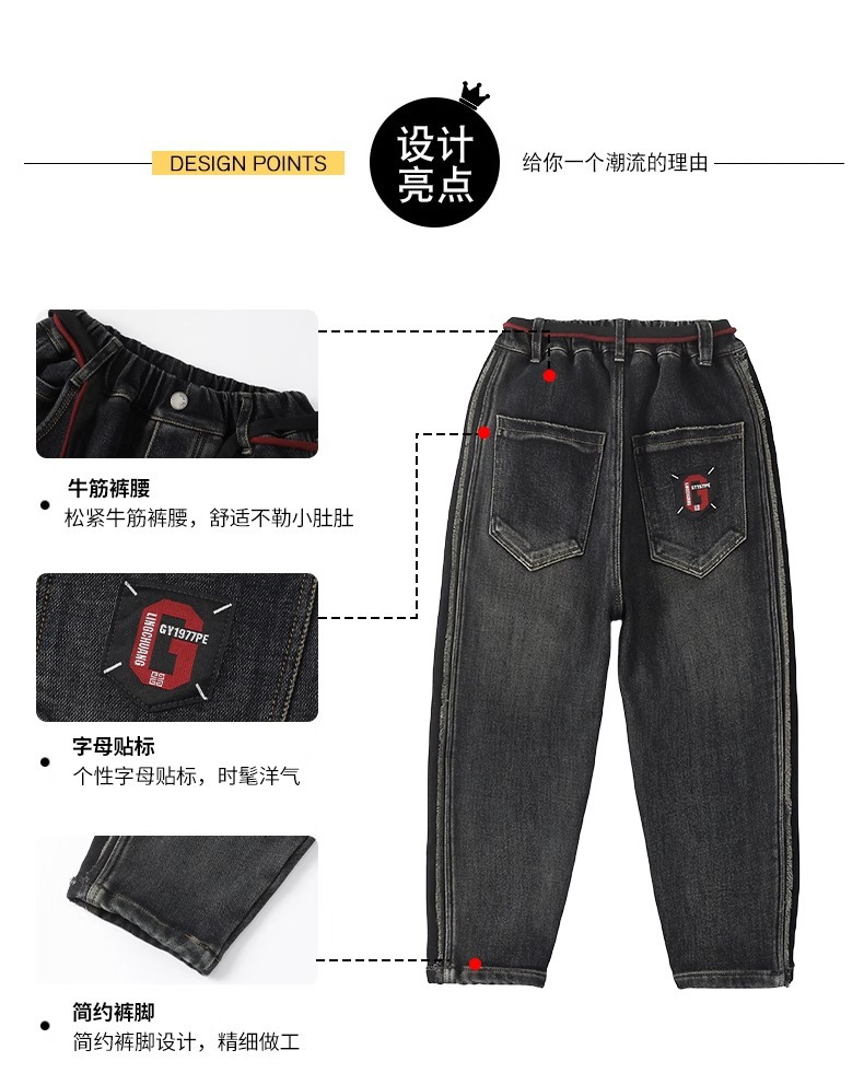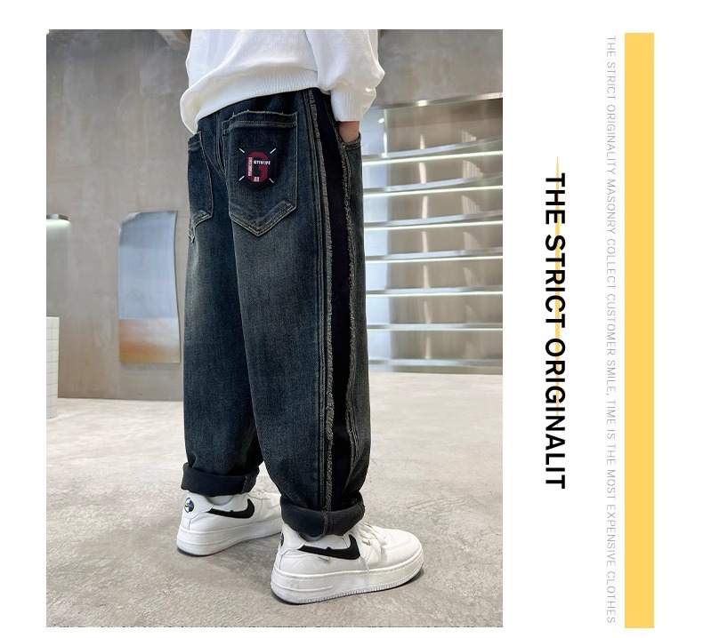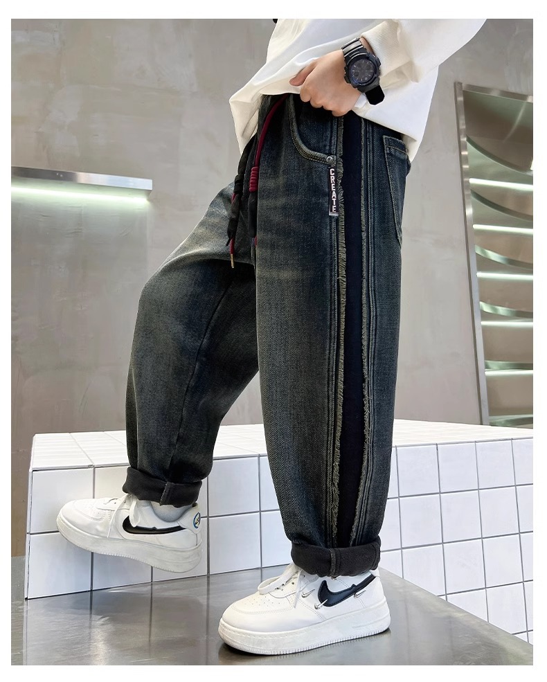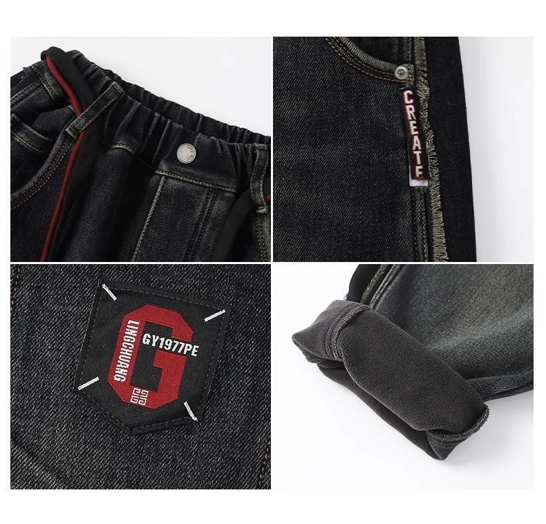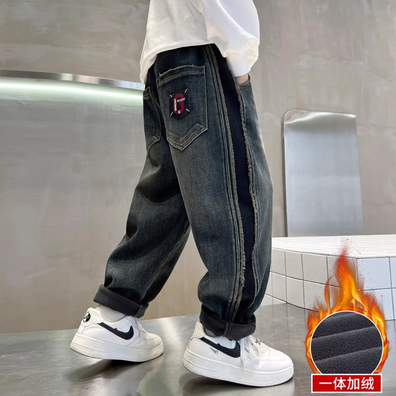 어린이 소년 바지 소년 겨울 새로운 대형 어린이 기모 두꺼운 Huzhou Zhili 원피스 벨벳 청바지