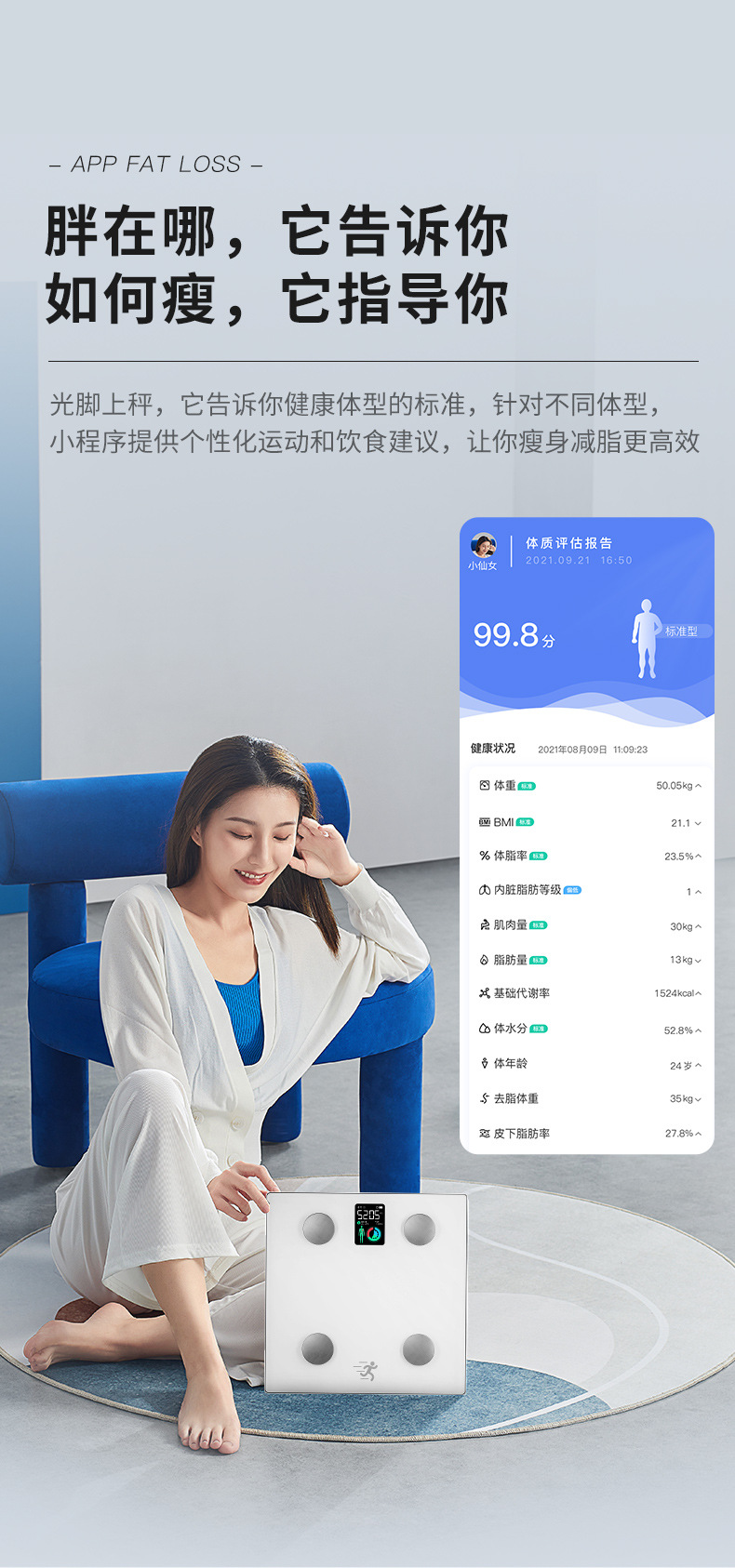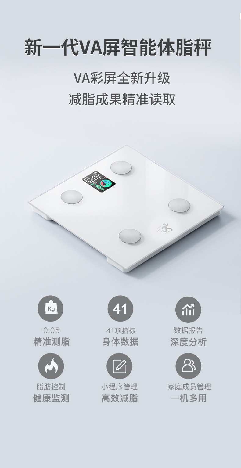 VA 컬러 스크린 체지방 측정기 스마트 홈 블루투스 소형 정밀 체중계 체지방 전자 체중계 체중 감량 선물