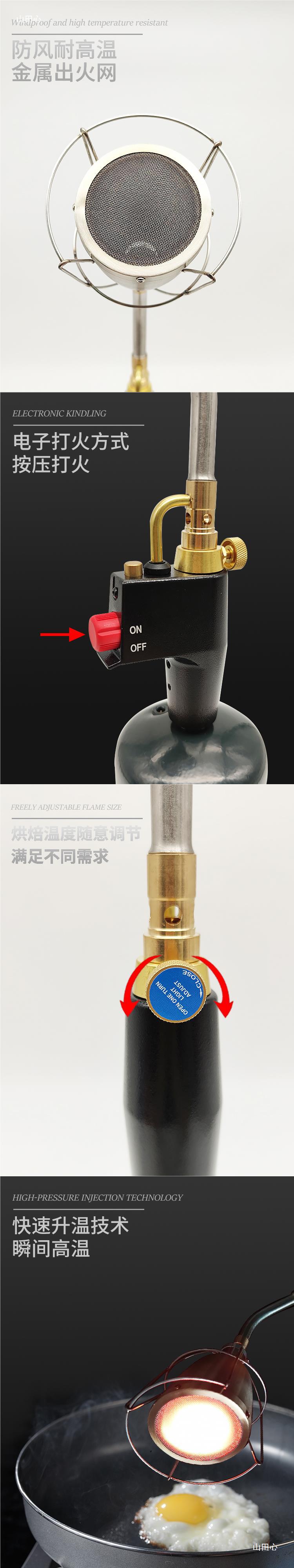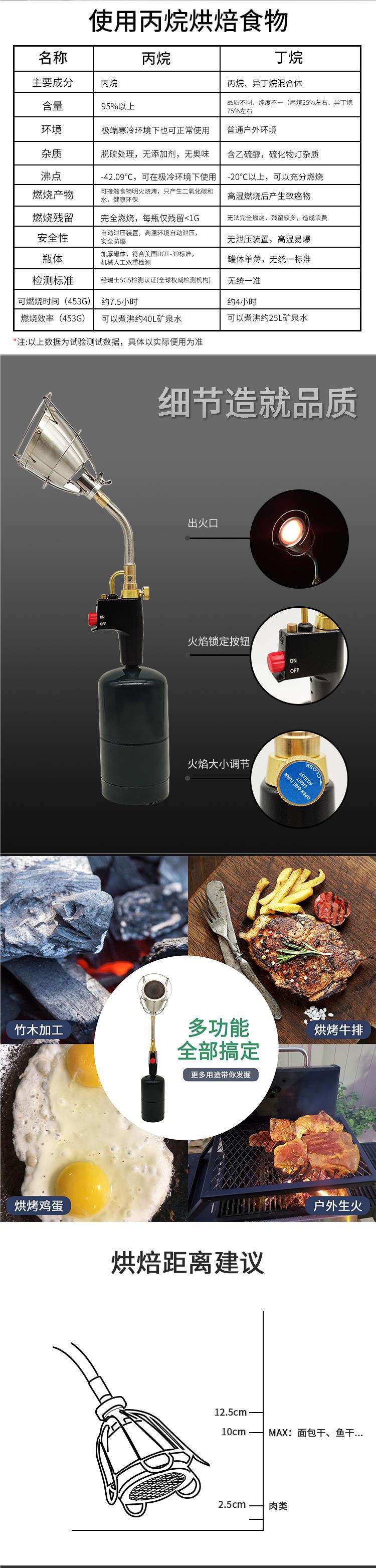 미국식 용접 총 화염 총 프로판 베이킹 그릴 총 휴대용 방풍 야외 RV 주방 무연 바베큐