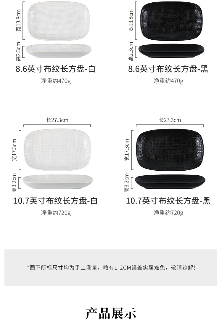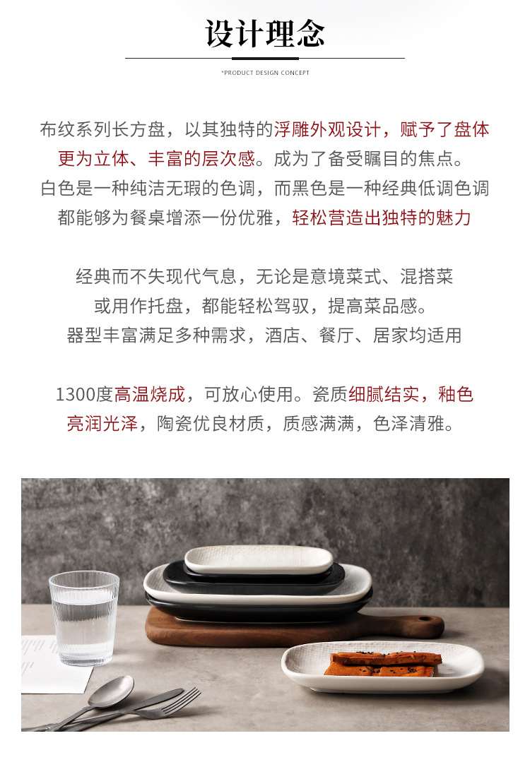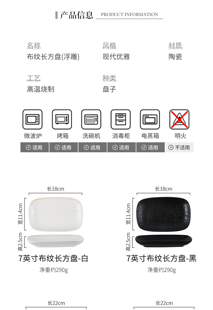 천 패턴 직사각형 접시 창조적 인 차가운 야채 접시 가정용 초밥 접시 생선 접시 찐 생선 접시 만두 접시 Discare Plate