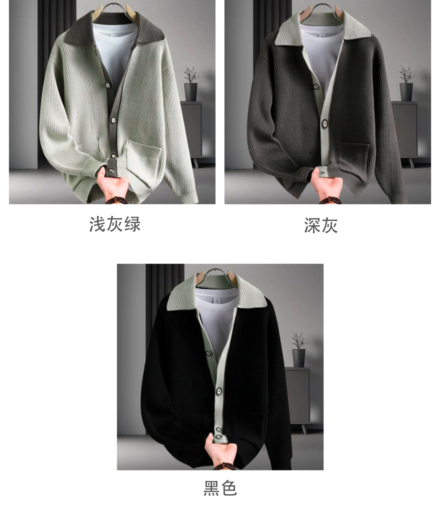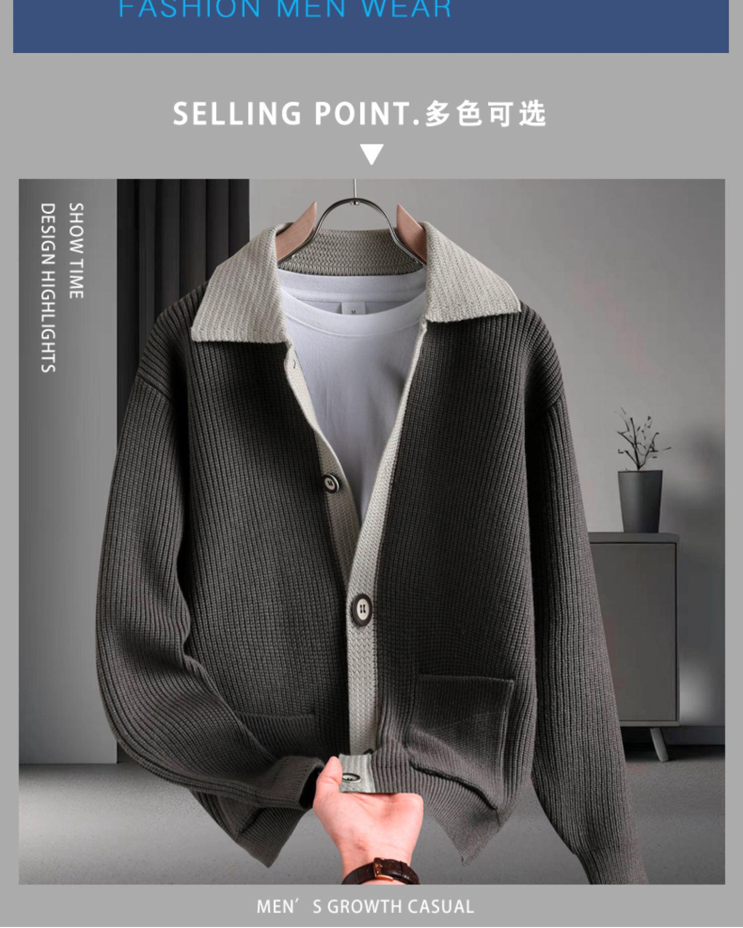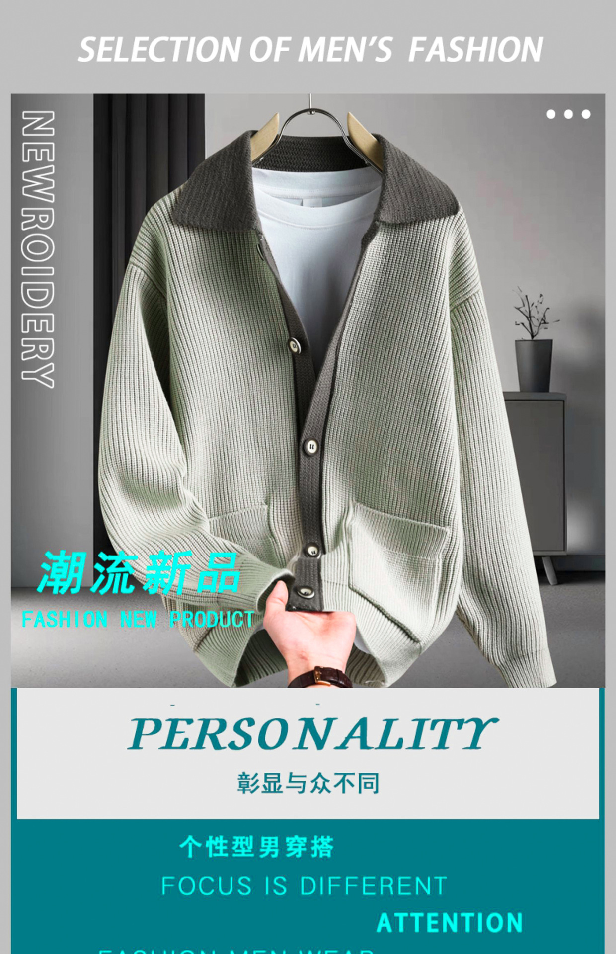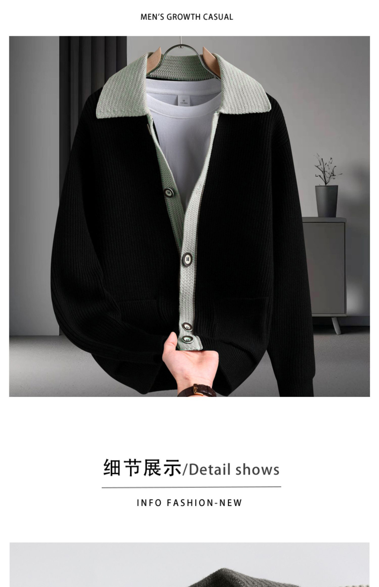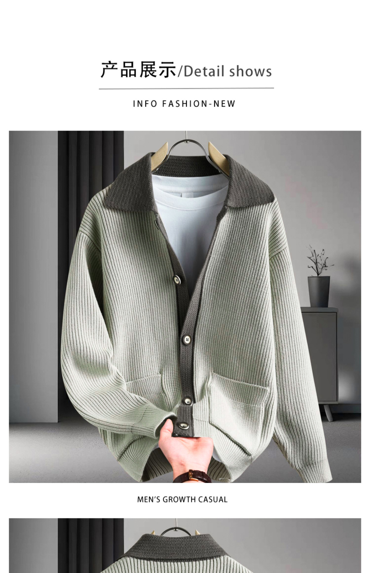 가짜 투피스 니트웨어 남자의 가을과 겨울 느슨한 카디건 스웨터 남자 패션 브랜드 하이 엔드 캐주얼 옷깃 재킷스토어 가기