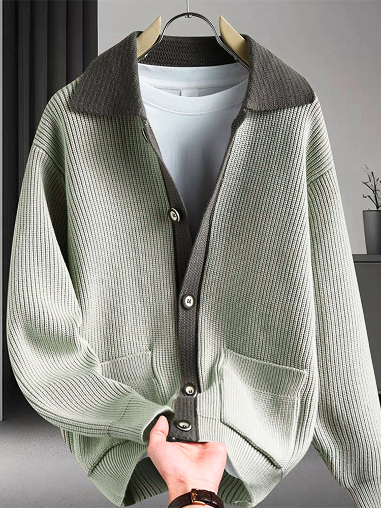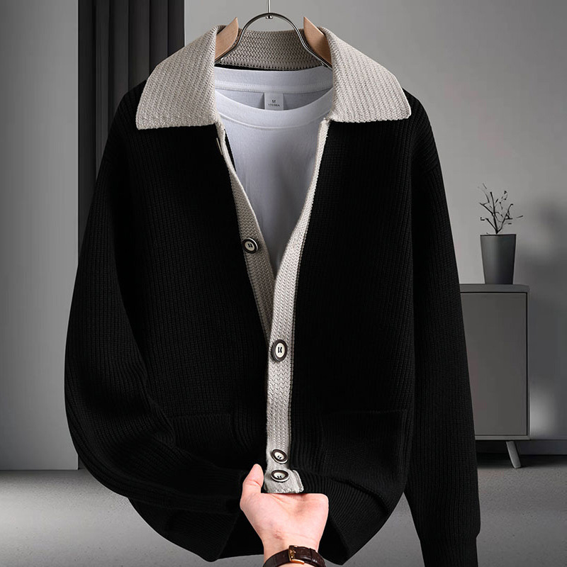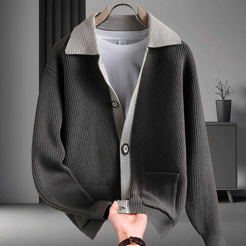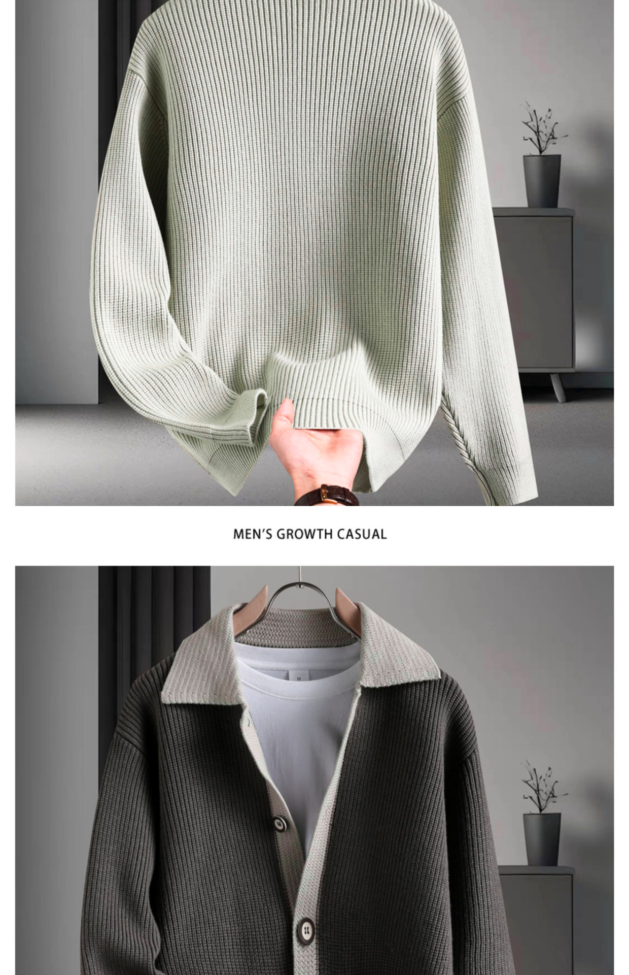 가짜 투피스 니트웨어 남자의 가을과 겨울 느슨한 카디건 스웨터 남자 패션 브랜드 하이 엔드 캐주얼 옷깃 재킷