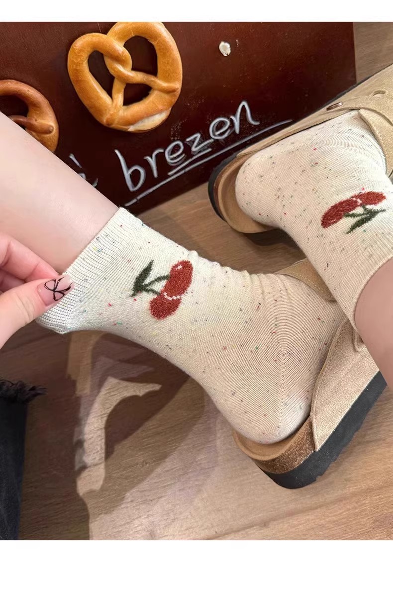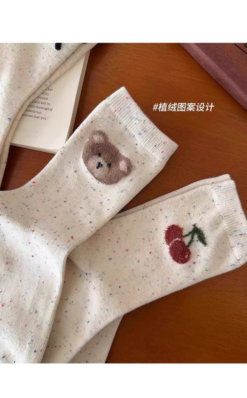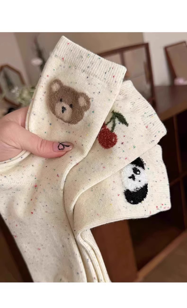 여성용 양말, 곰돌이 만화, 체리, 강아지, 여성용 양말, 일본식 귀엽고 유쾌한 중목 양말, 학생 스타일, 도트무늬 양말