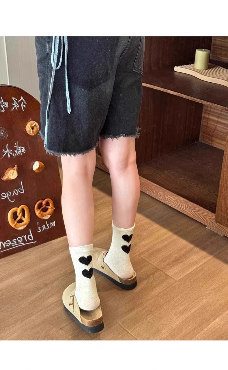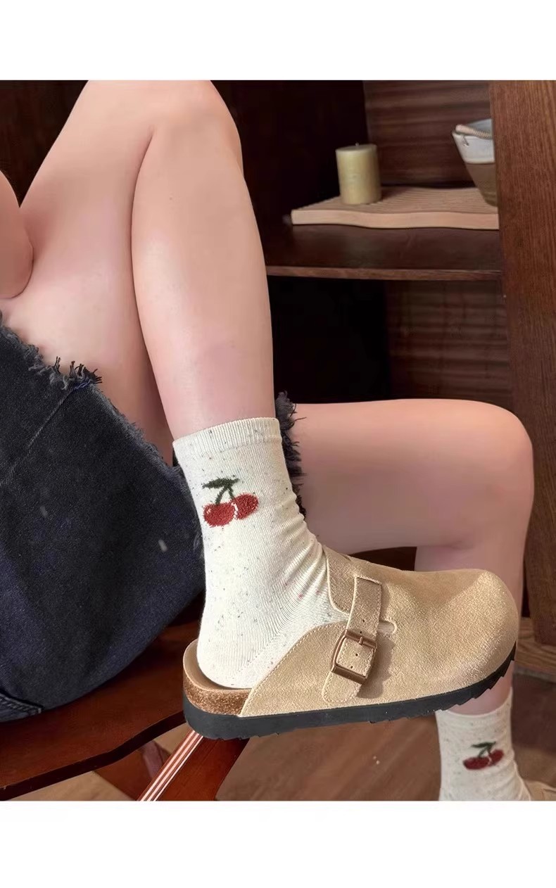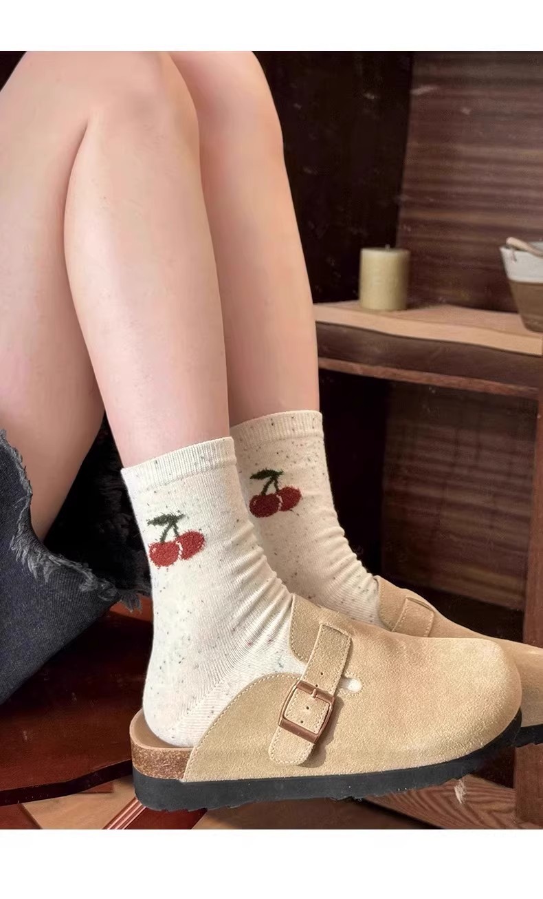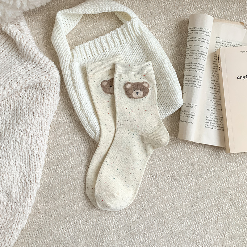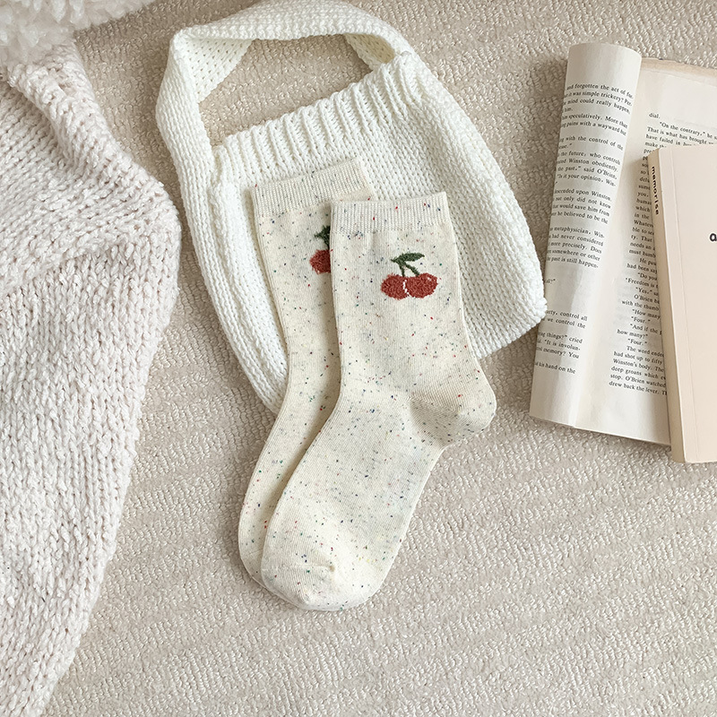 여성용 양말, 곰돌이 만화, 체리, 강아지, 여성용 양말, 일본식 귀엽고 유쾌한 중목 양말, 학생 스타일, 도트무늬 양말스토어 가기