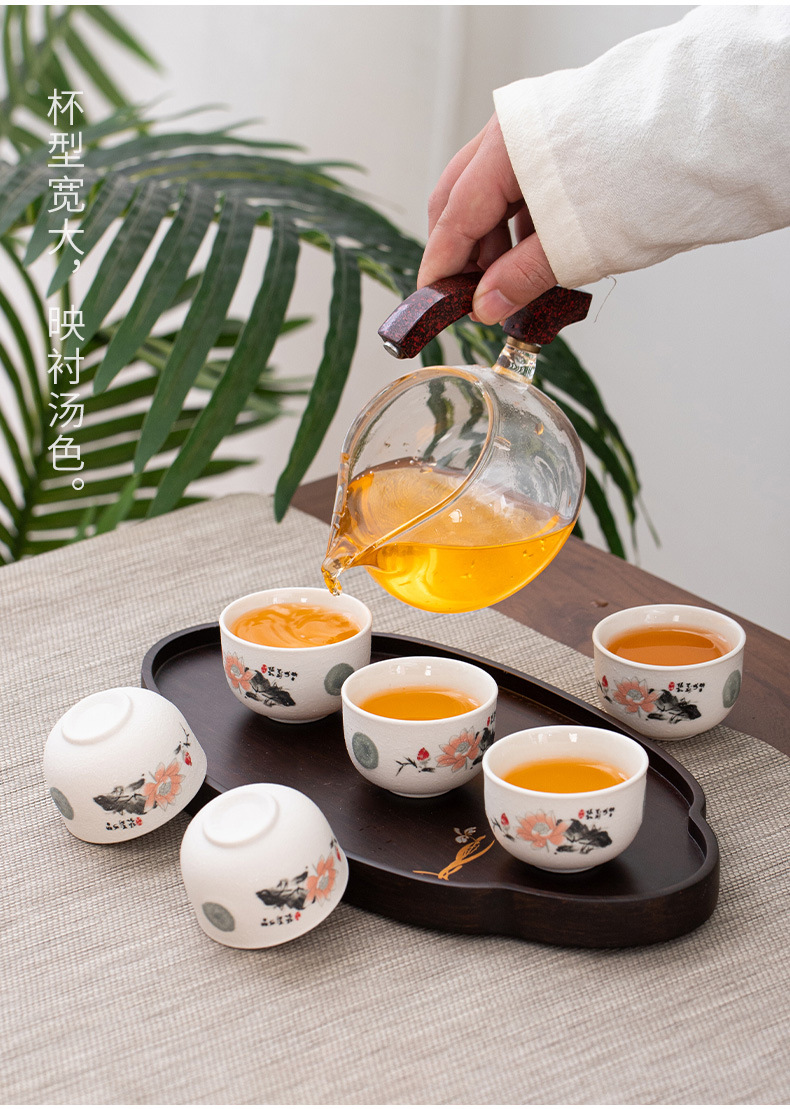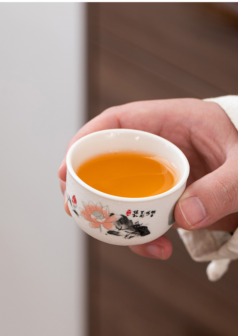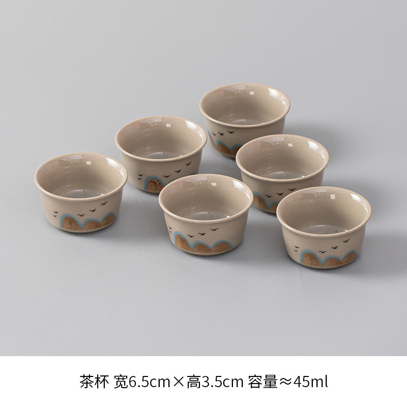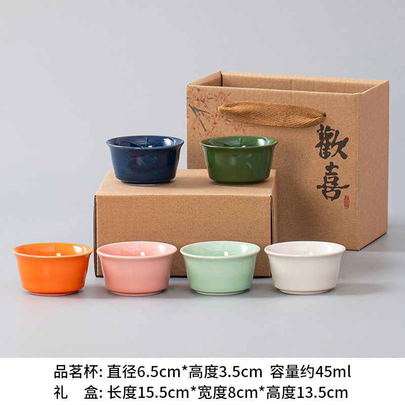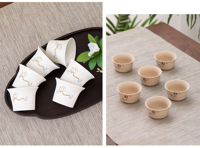 세라믹 차 컵 가정용 쿵푸 차 세트 차 시음 컵 청자 마스터 컵 티 컵 6 팩 절묘한 흰색 도자기 보라색 모래 컵스토어 가기