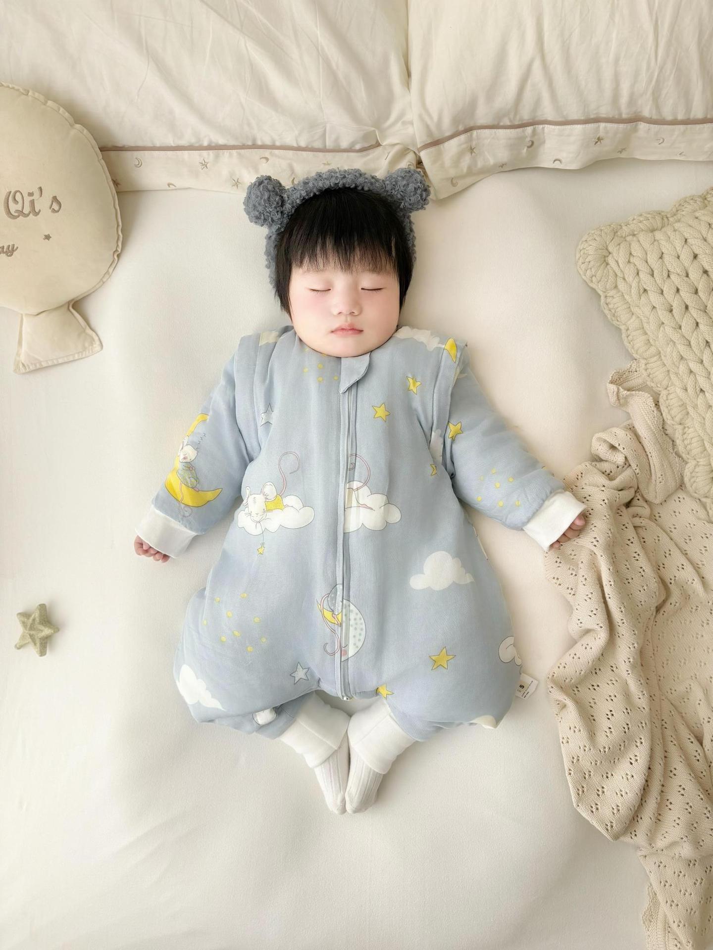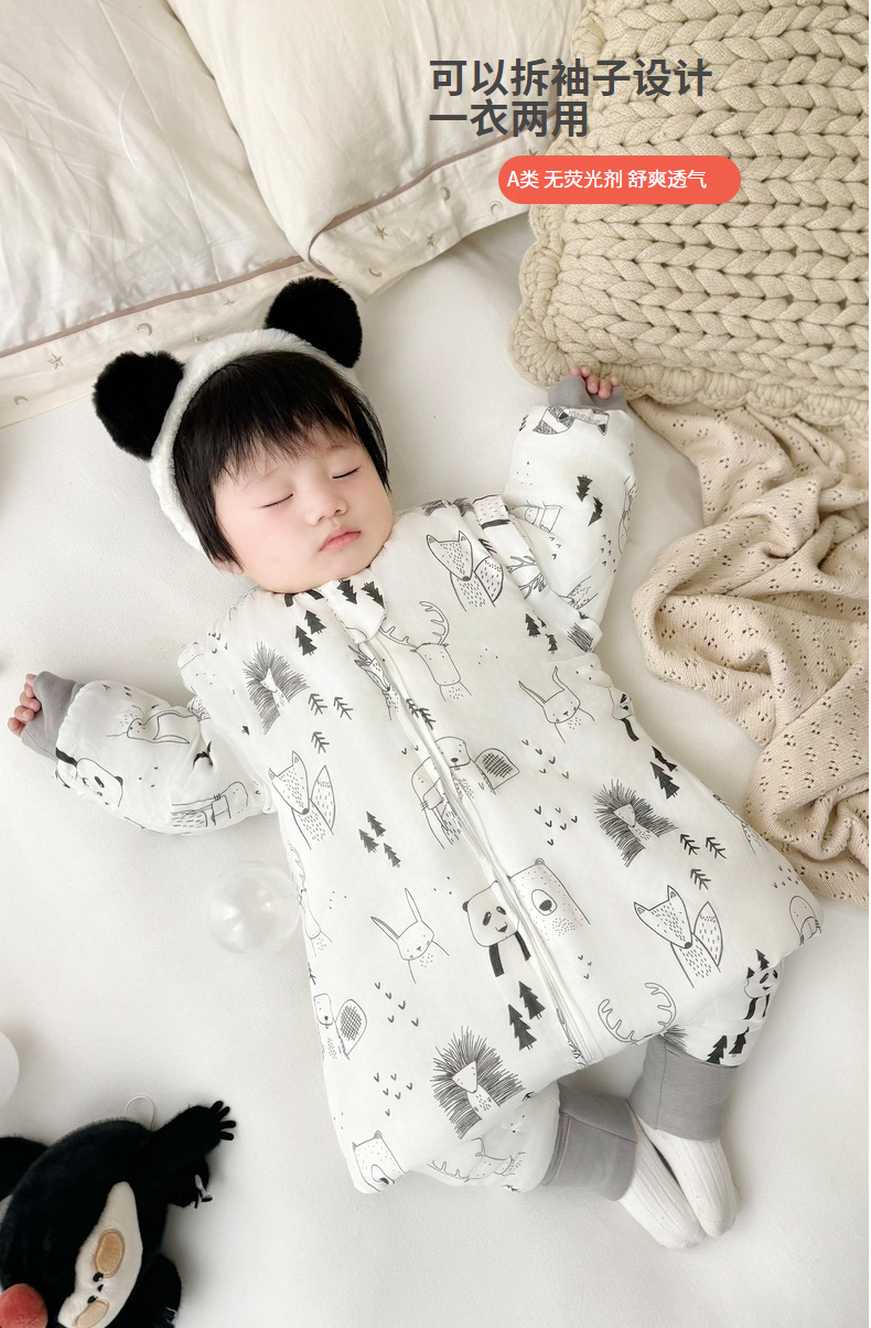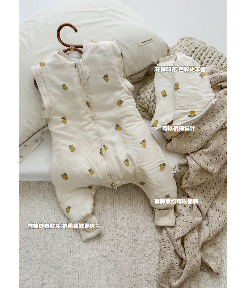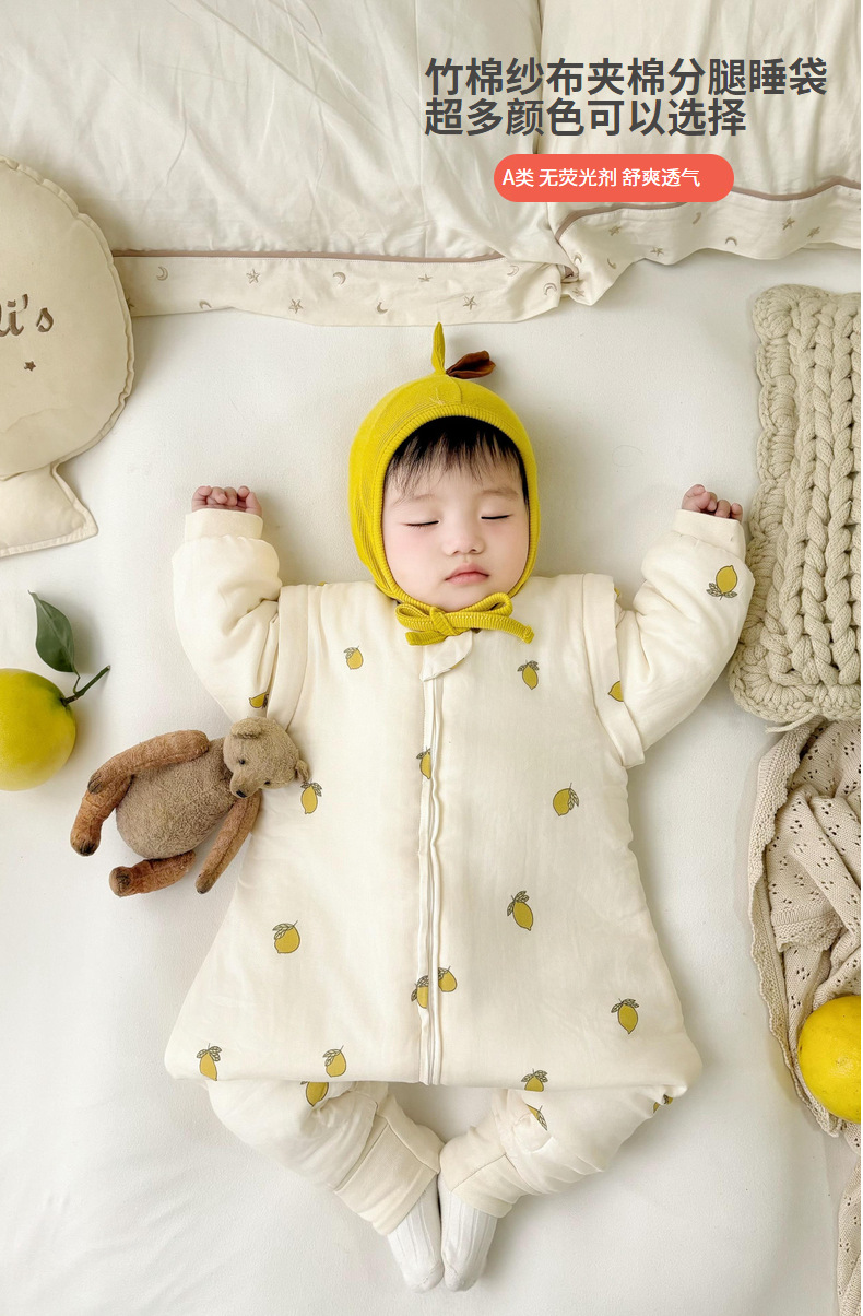 클리어런스 겨울 아기 슬리핑 백 어린이 대나무 면 분할 다리 슬리핑 백 코튼 킥 방지 거즈 스플릿 레그 슬리핑 백 면 슬리핑 백