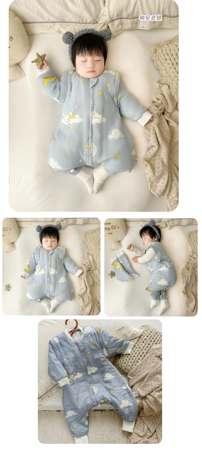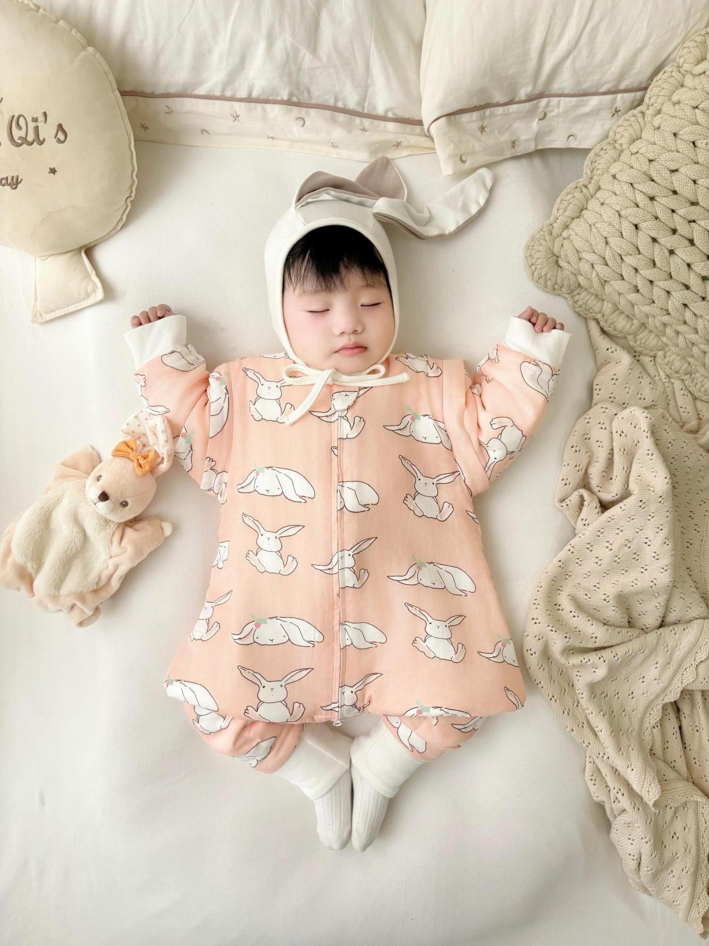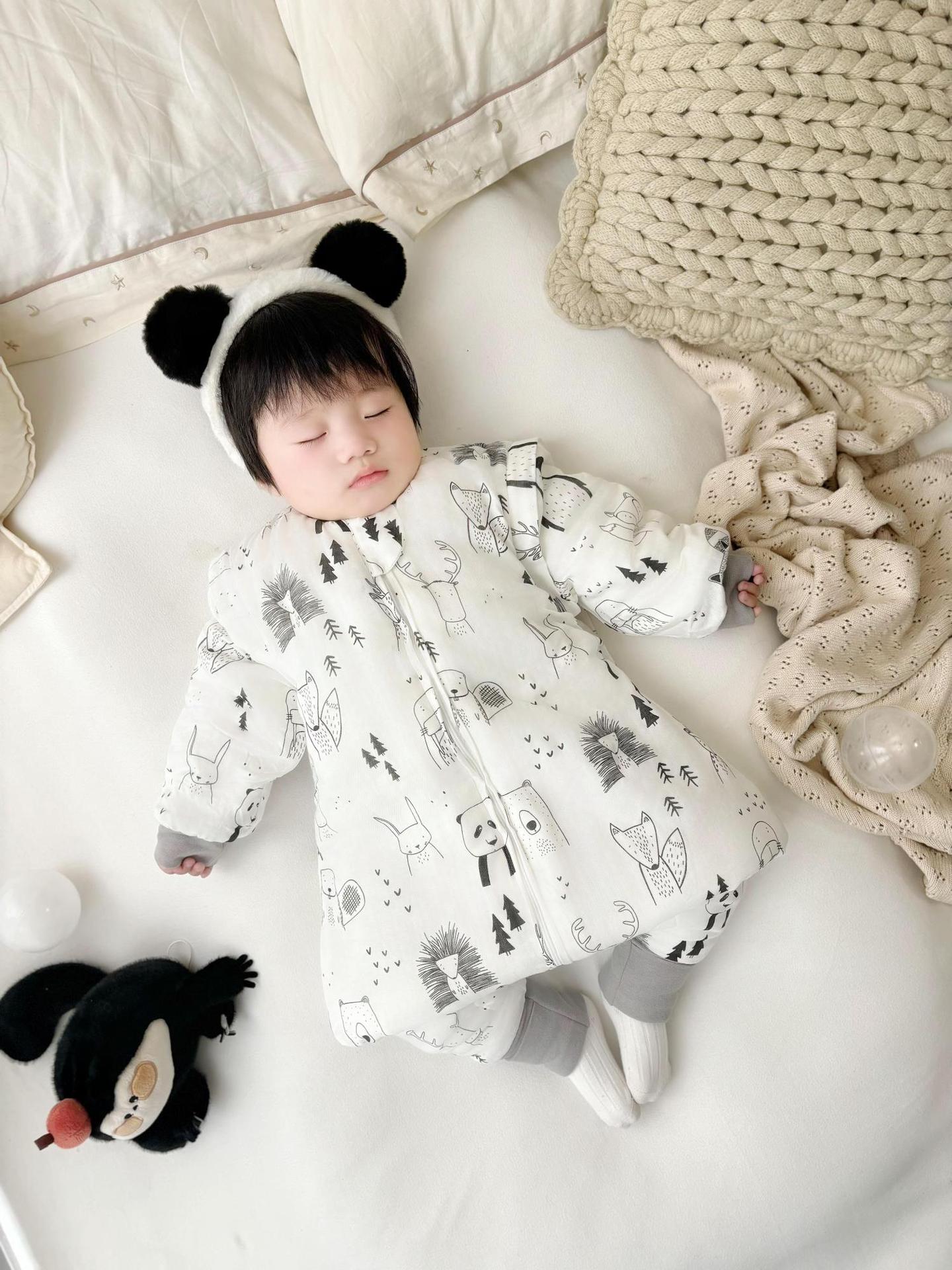 클리어런스 겨울 아기 슬리핑 백 어린이 대나무 면 분할 다리 슬리핑 백 코튼 킥 방지 거즈 스플릿 레그 슬리핑 백 면 슬리핑 백