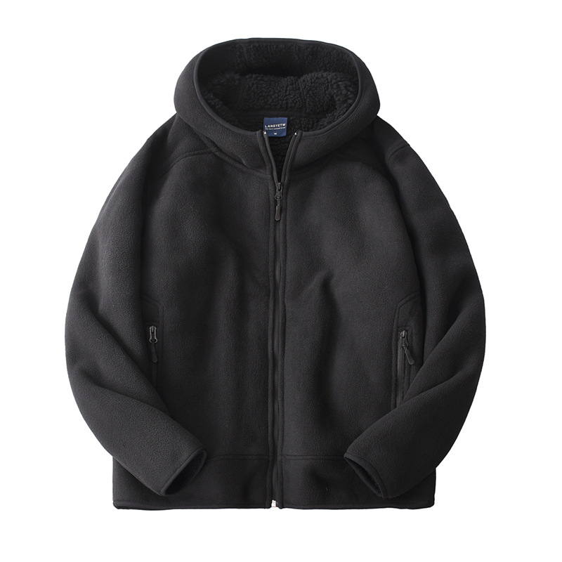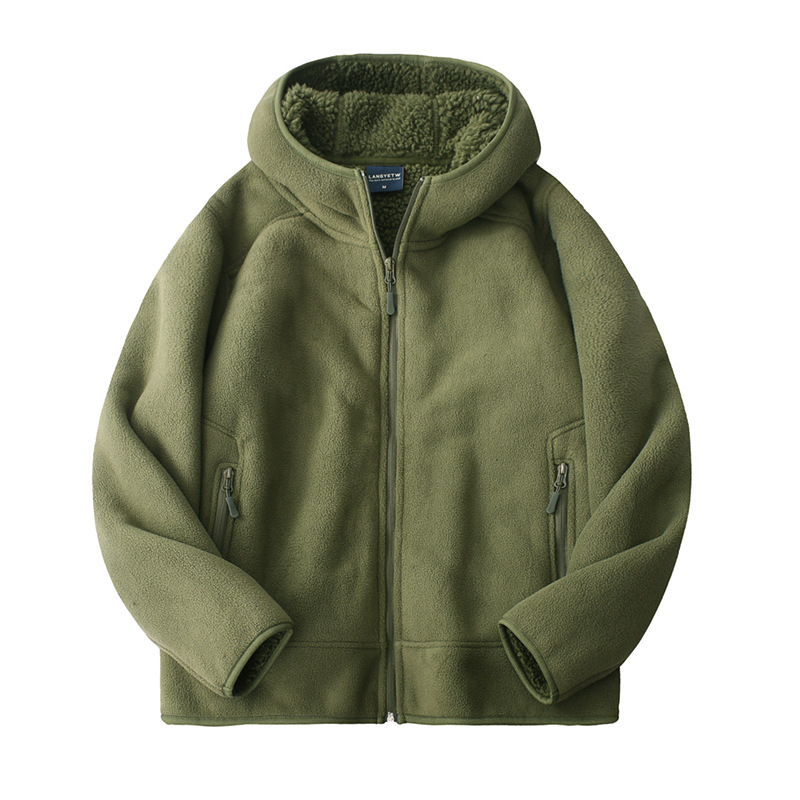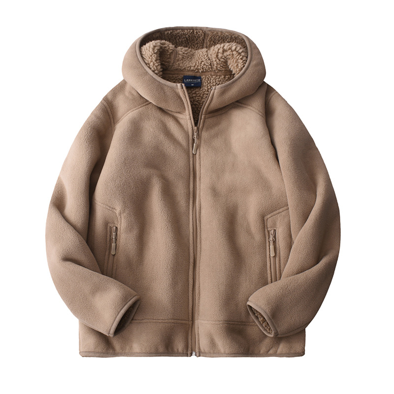 남성과 여성을위한 무거운 두꺼운 양털 지퍼 후드 스웨트 가을 및 겨울 따뜻한 코트 야외 캐주얼 양고기 양털 면화 옷스토어 가기