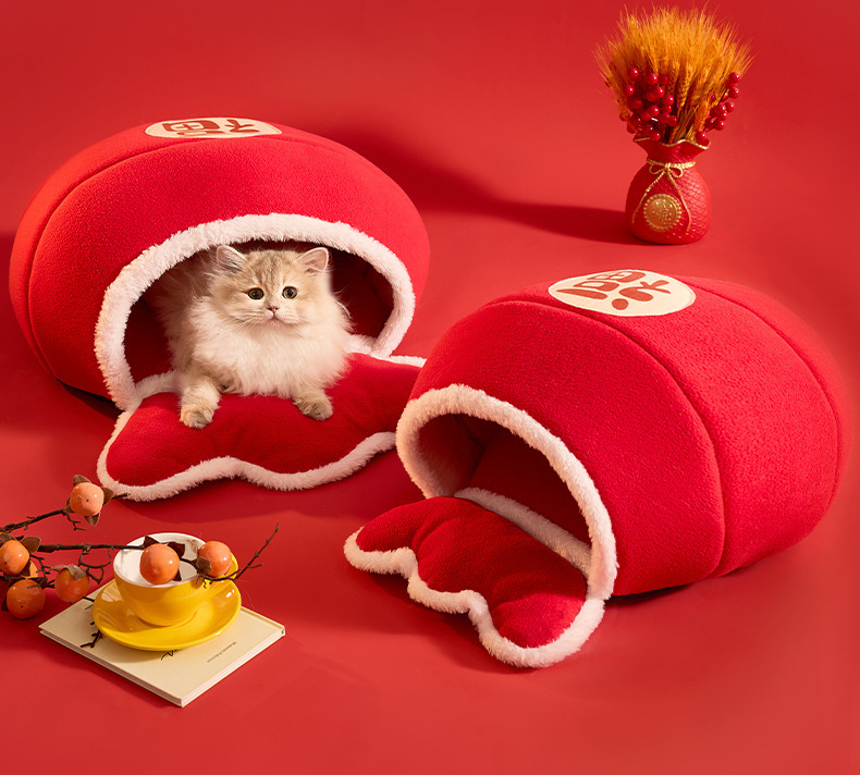 2024 가을과 겨울 고양이 개 따뜻한 국가 조수 새해 바람 스폰지 패딩 애완 동물 둥지 가방 모델링 도매