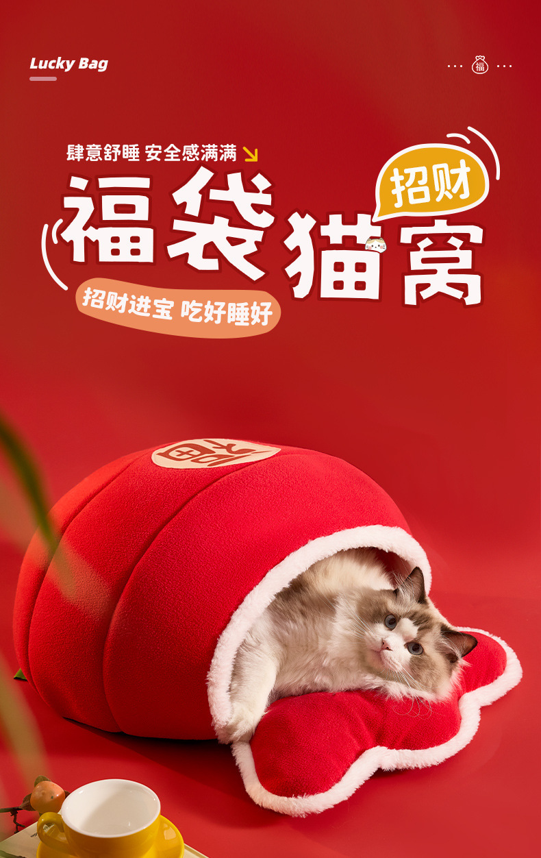 2024 가을과 겨울 고양이 개 따뜻한 국가 조수 새해 바람 스폰지 패딩 애완 동물 둥지 가방 모델링 도매스토어 가기