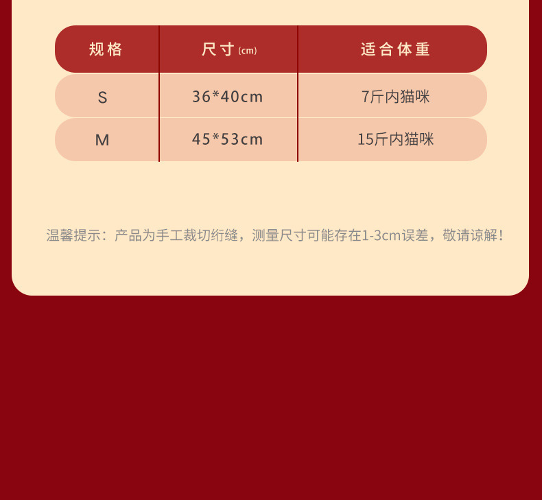 • S(36*40cm, 3.5kg세 미만의 고양이에게 적합)