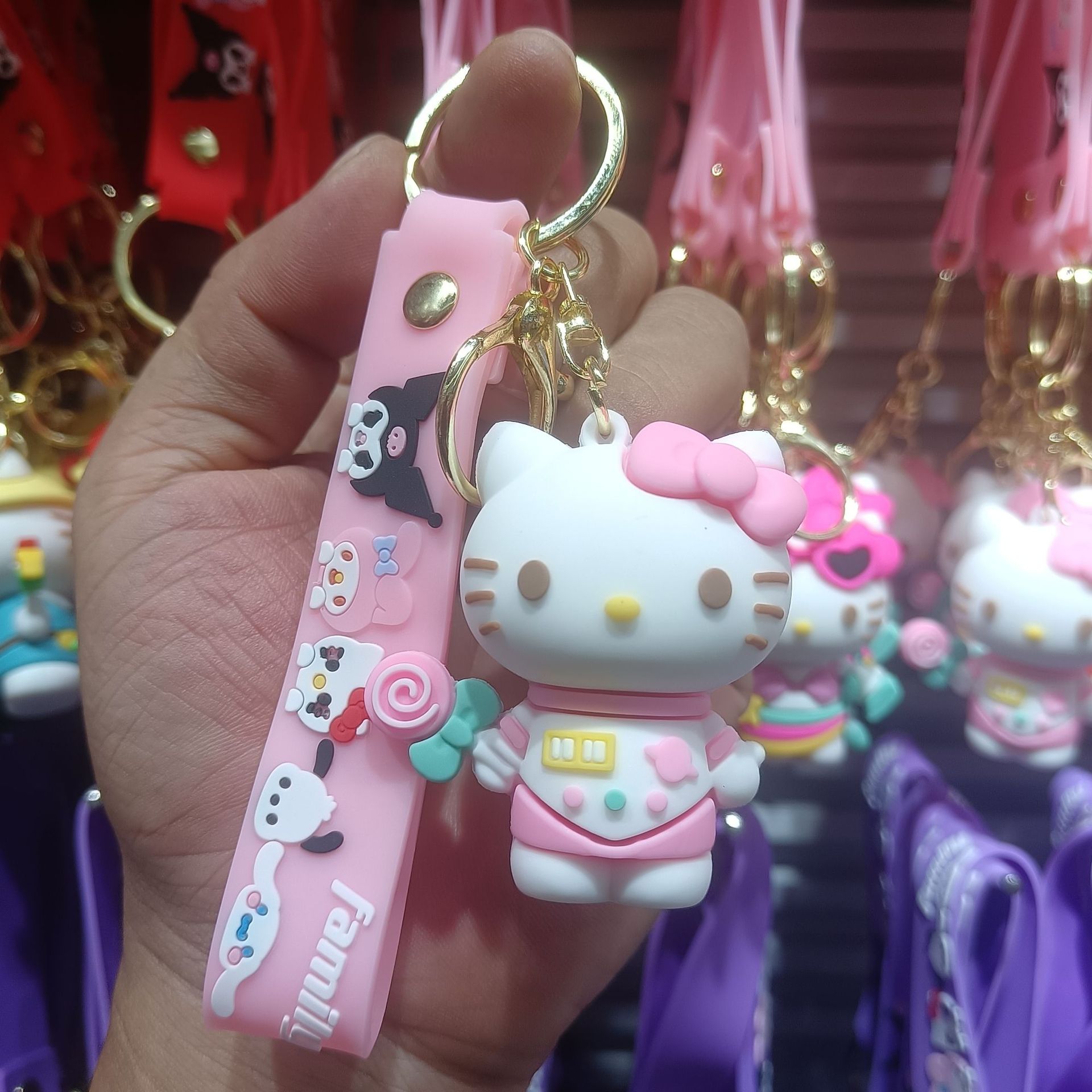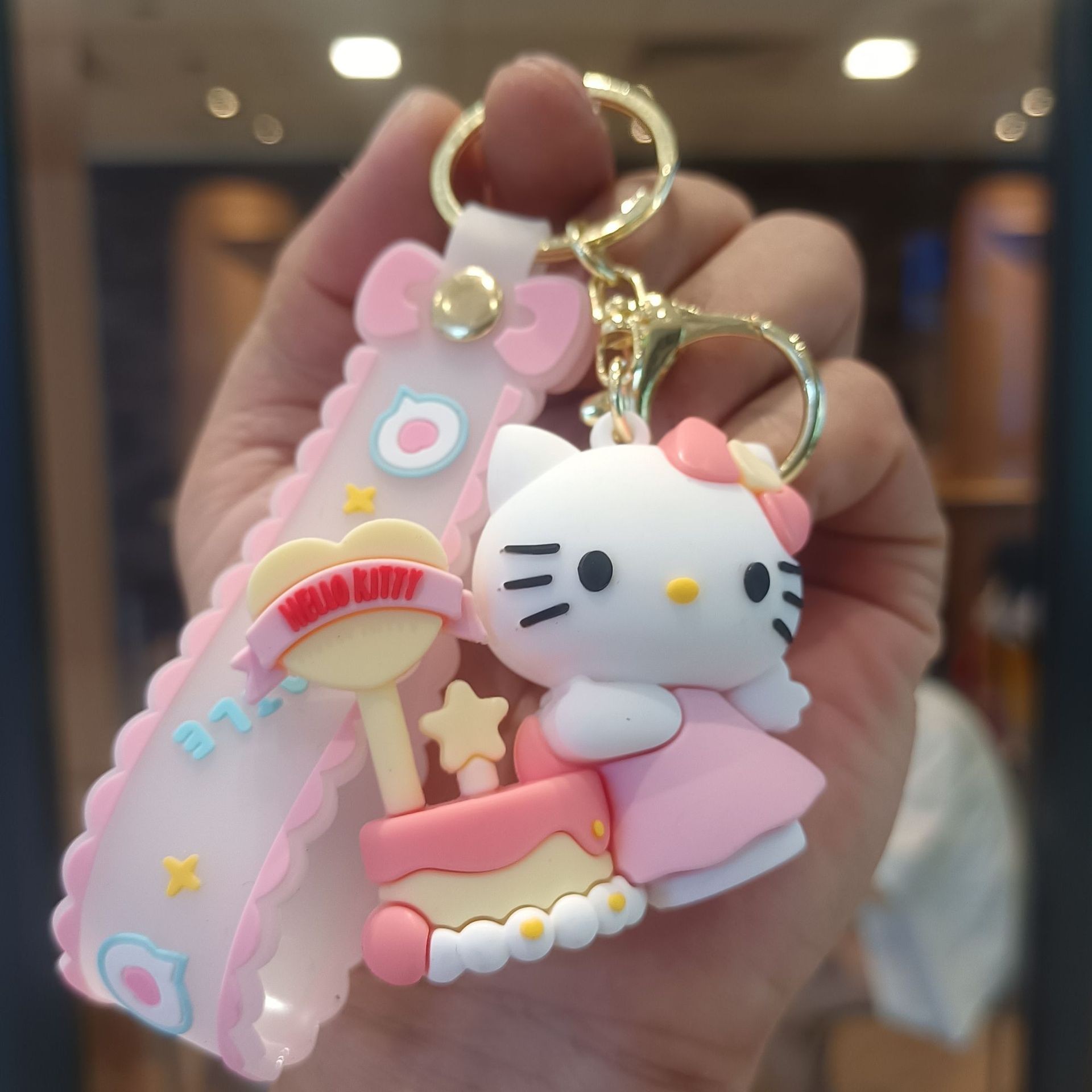 만화 귀여운 산리오 키 체인 kt 고양이 펜던트 인형 기계 인형 인형 절묘한 소녀 하트 열쇠 고리 반지