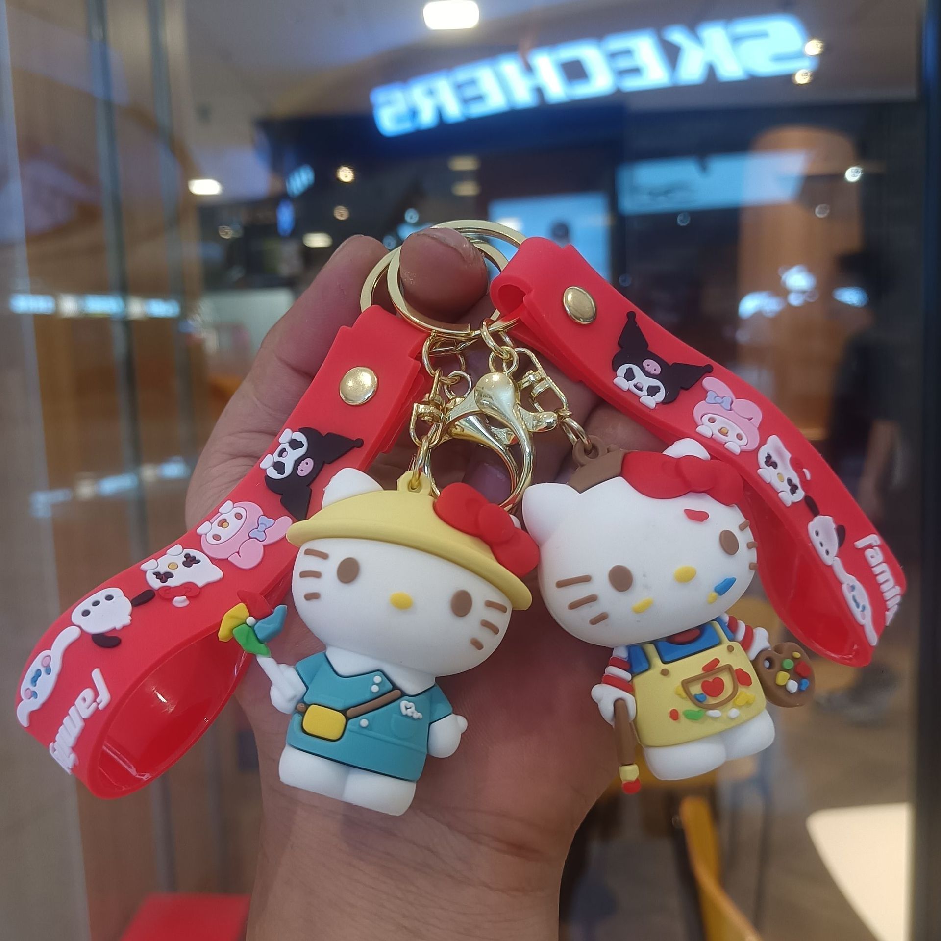 만화 귀여운 산리오 키 체인 kt 고양이 펜던트 인형 기계 인형 인형 절묘한 소녀 하트 열쇠 고리 반지스토어 가기