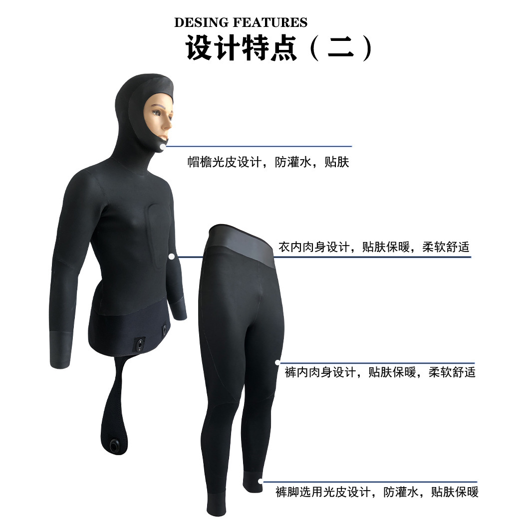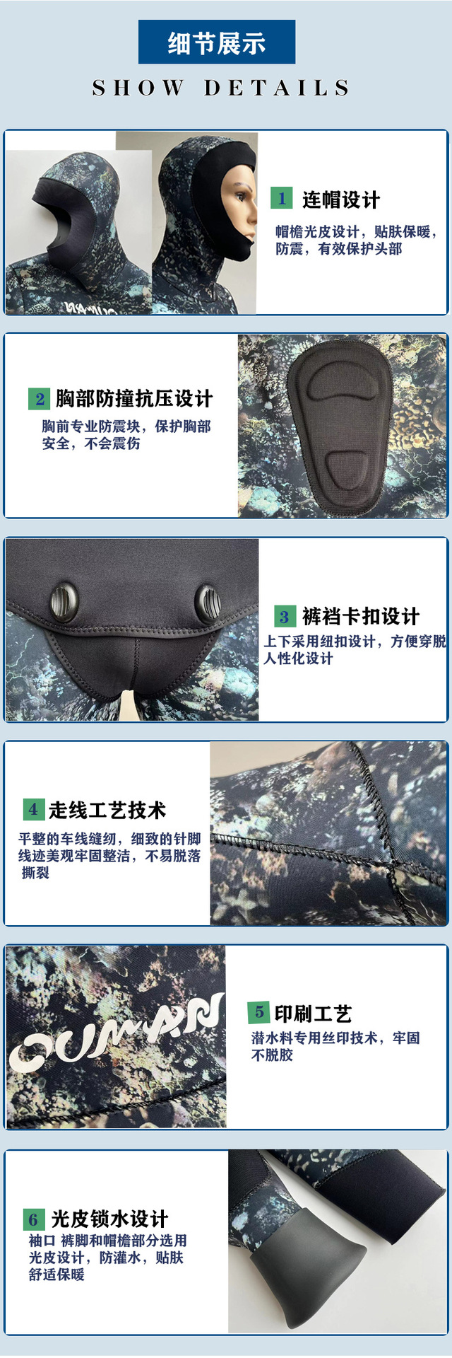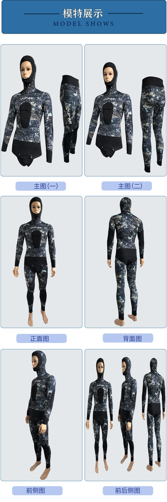 네오프렌 다이빙 슈트 5MM 위장 무늬 투피스 세트 후드 방한 보온 두꺼운 다이빙복스토어 가기