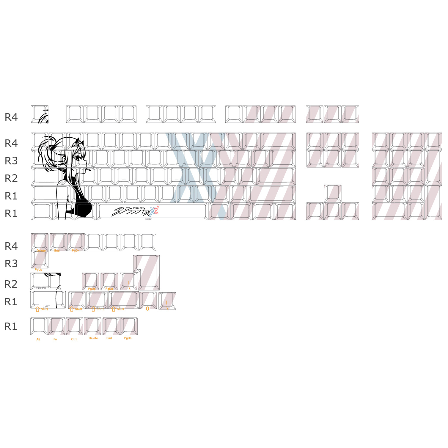 适配键盘配列:61/68/75/84/87/98/104/108等(左移方向键请联系客服了解是否适配)